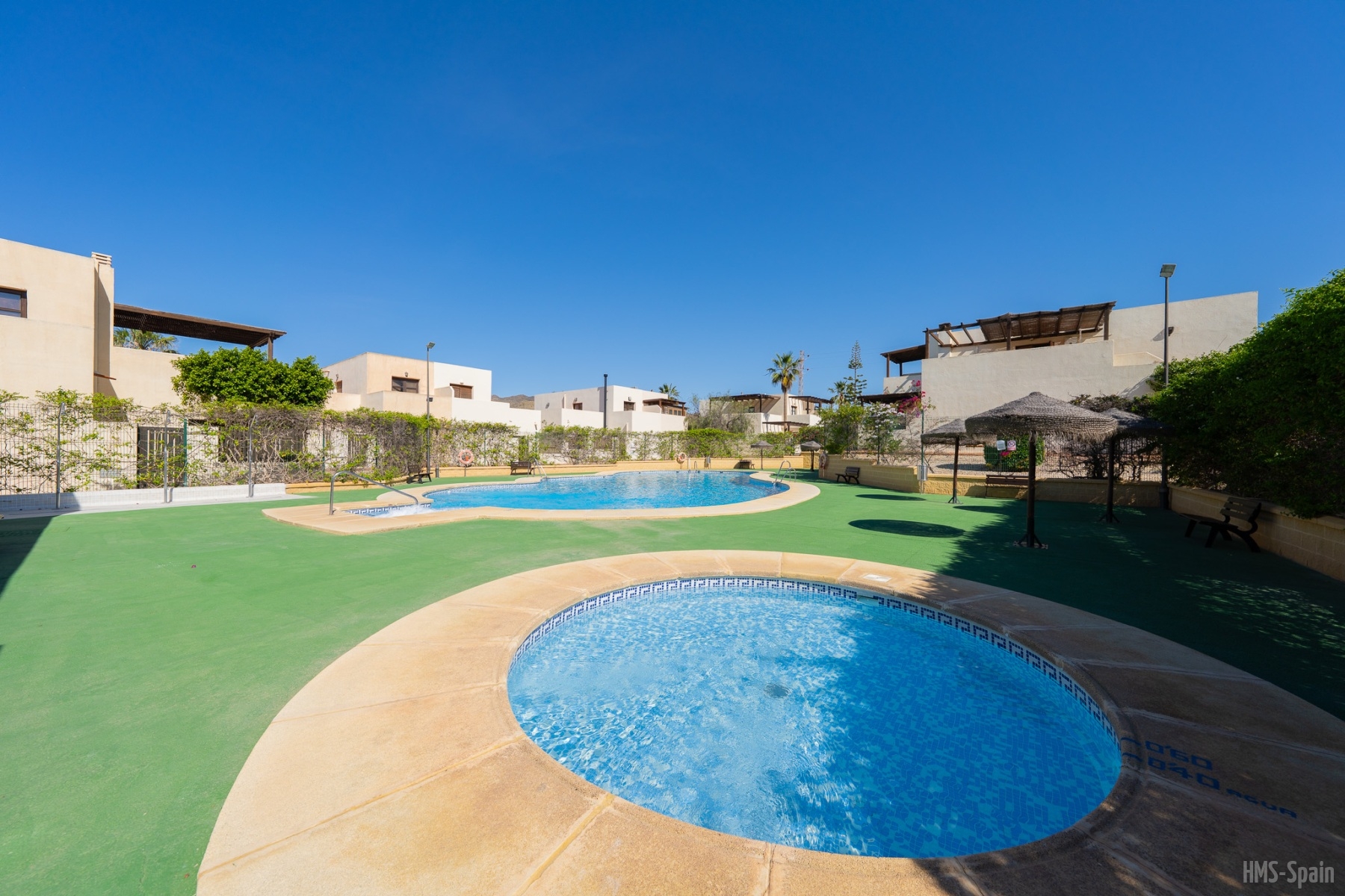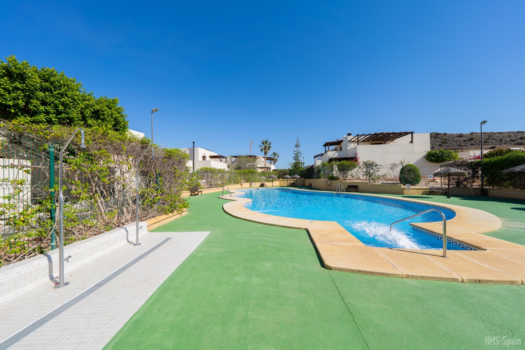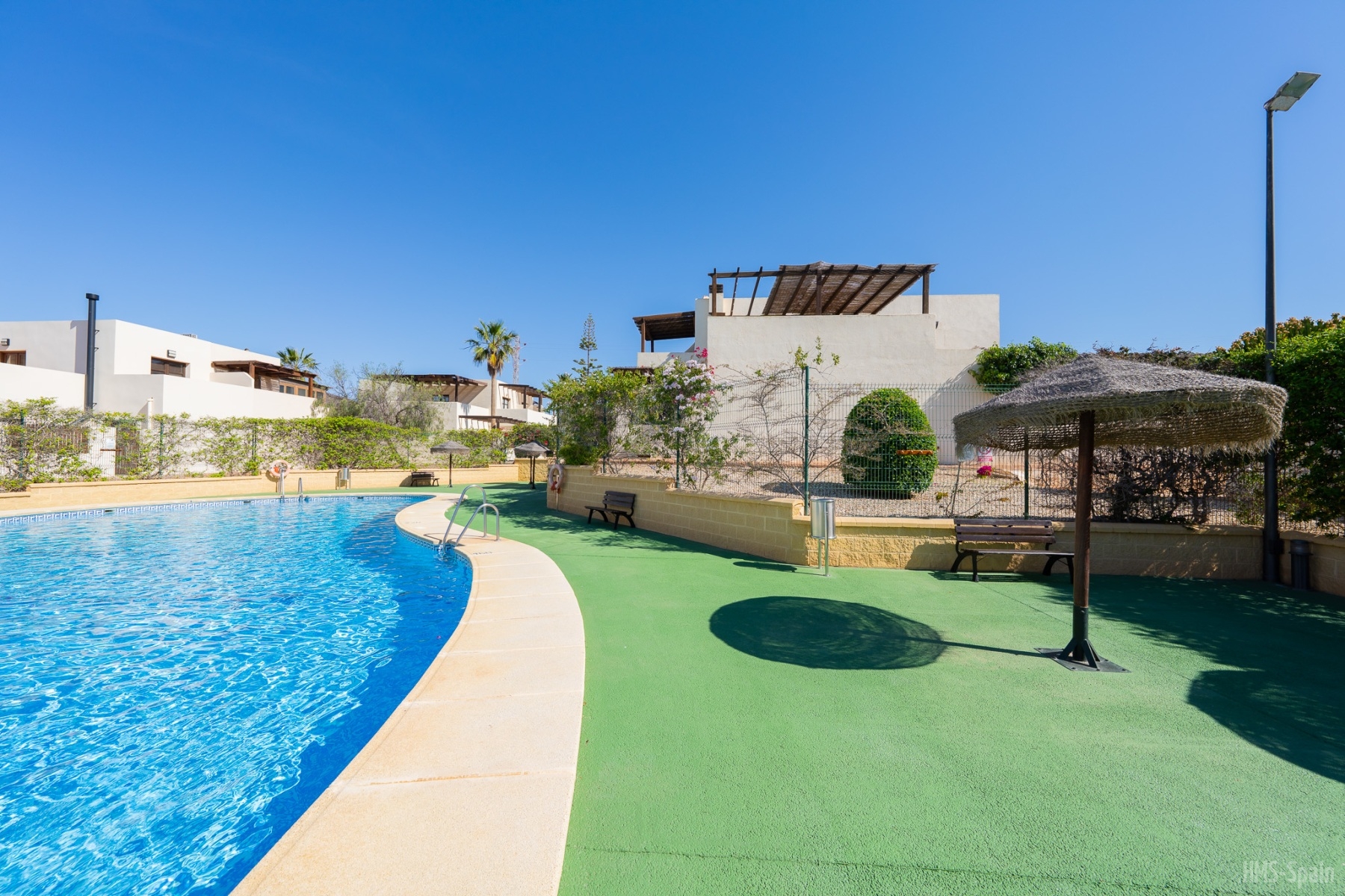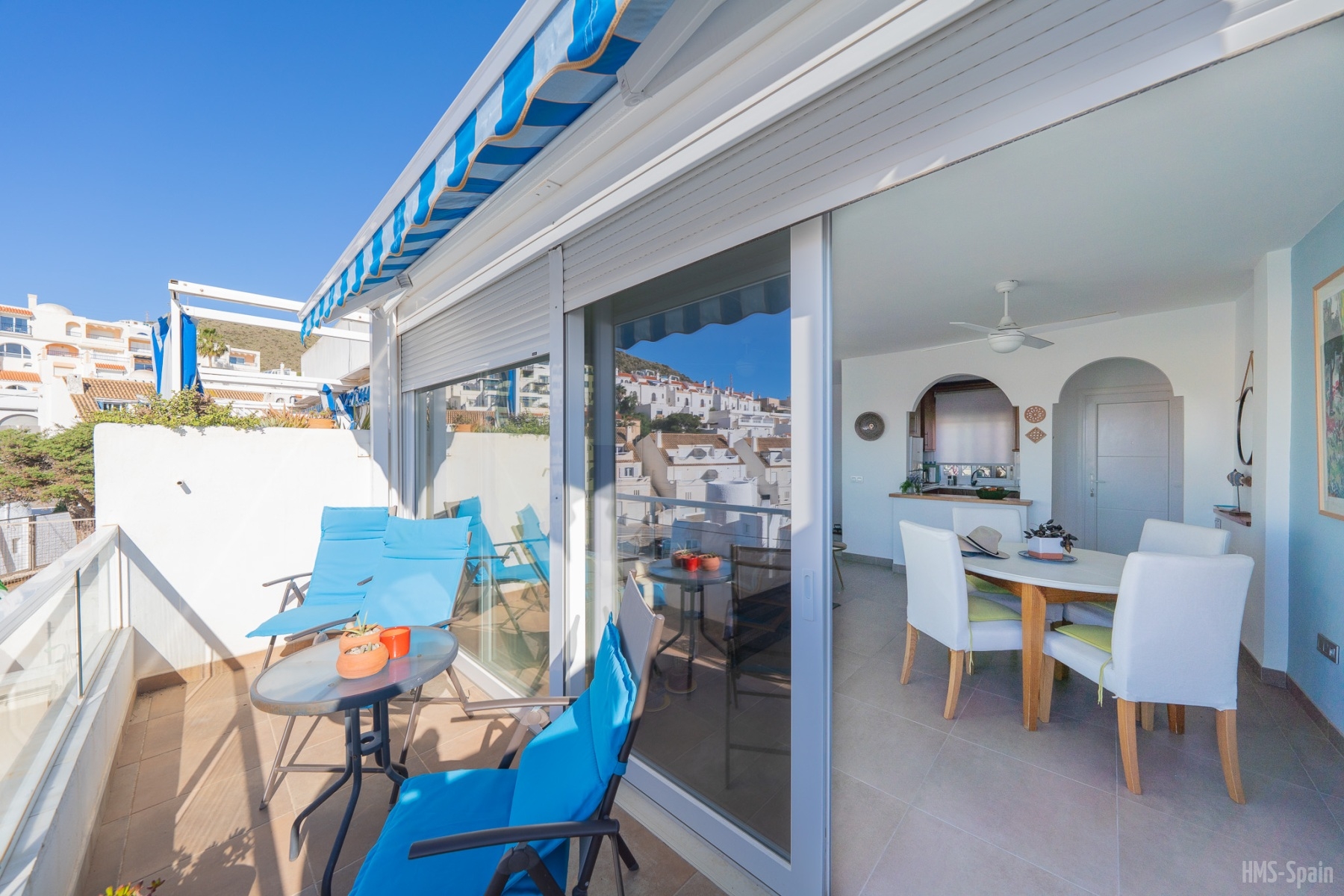 El apartamento se encuentra en una urbanización con piscina panorámica con vistas al mar y bajada directa. A 10 min del pueblo, a 2 minutos de la playa de la calilla y a 20 andando de la espectacular playa de los genovés.