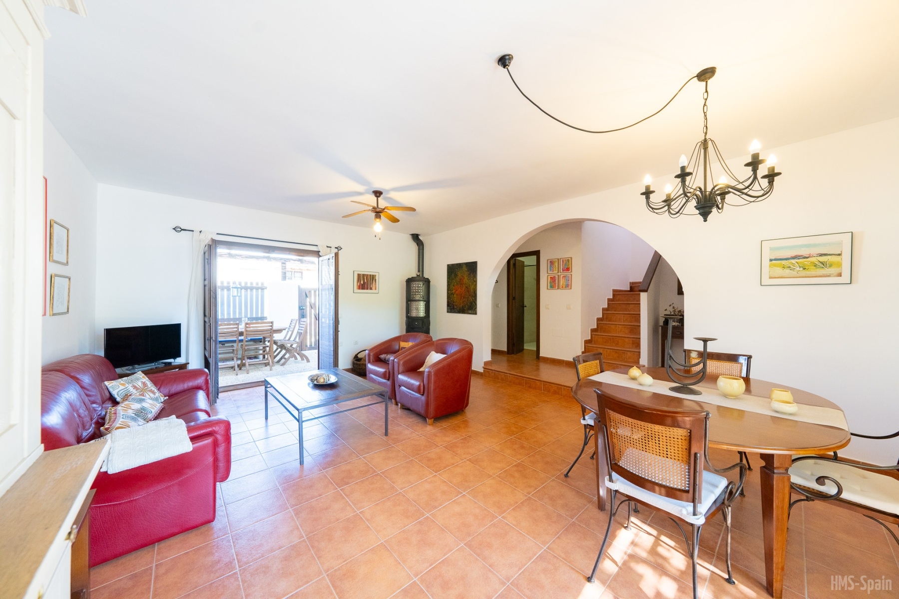 Preciosa casa de una planta con unas maravillosas vistas a la Bahía de San José que podrán disfrutar desde su terraza. Tiene 3 habitaciones, con una1 cama de 150cm, 1 cama de 135 cm. y 2 camas de 105 cmts.