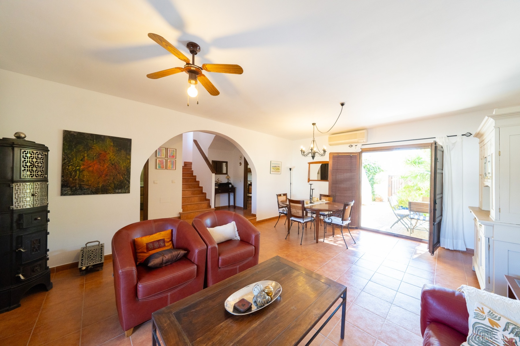 Bonita casa en san Jose con capacidad para 8 personas. Tiene tres dormitorios, cocina totalmente equipada con horno y lavadora, dos baños, aire acondicionada en toda la casa con bomba de calor. Salon-comedor con TV. Ubicado cerca de la playa y del centro del pueblo de San Jose