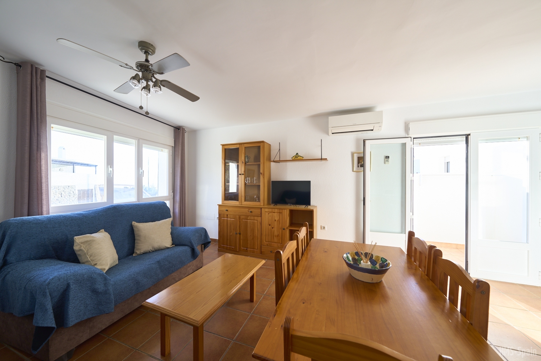 Casa muy cerca de la playa en San José, dispone de 2 dormitorios, 1 baño, cocina totalmente equipada y salón comedor. Dispone de aire acondicionado en el salón y en los dormitorio. También tiene ventiladores de techo. A menos de 5 metros de la playa.