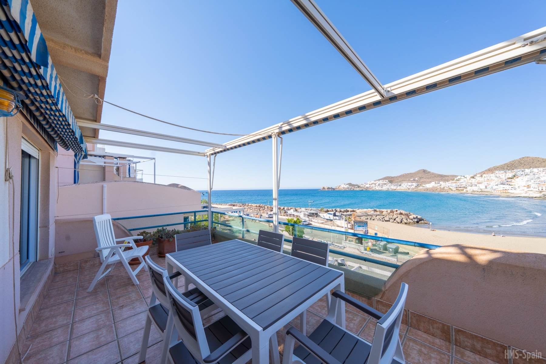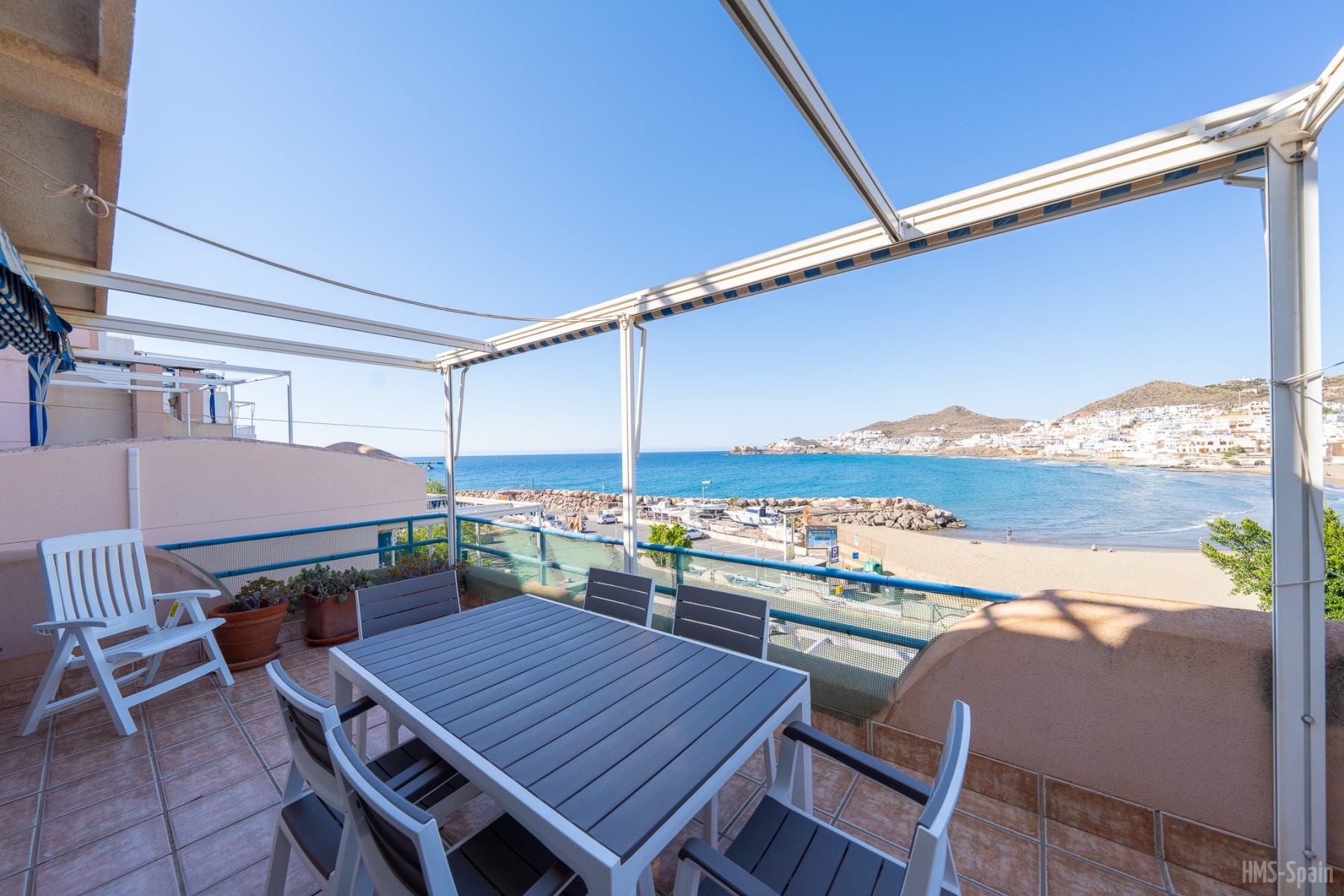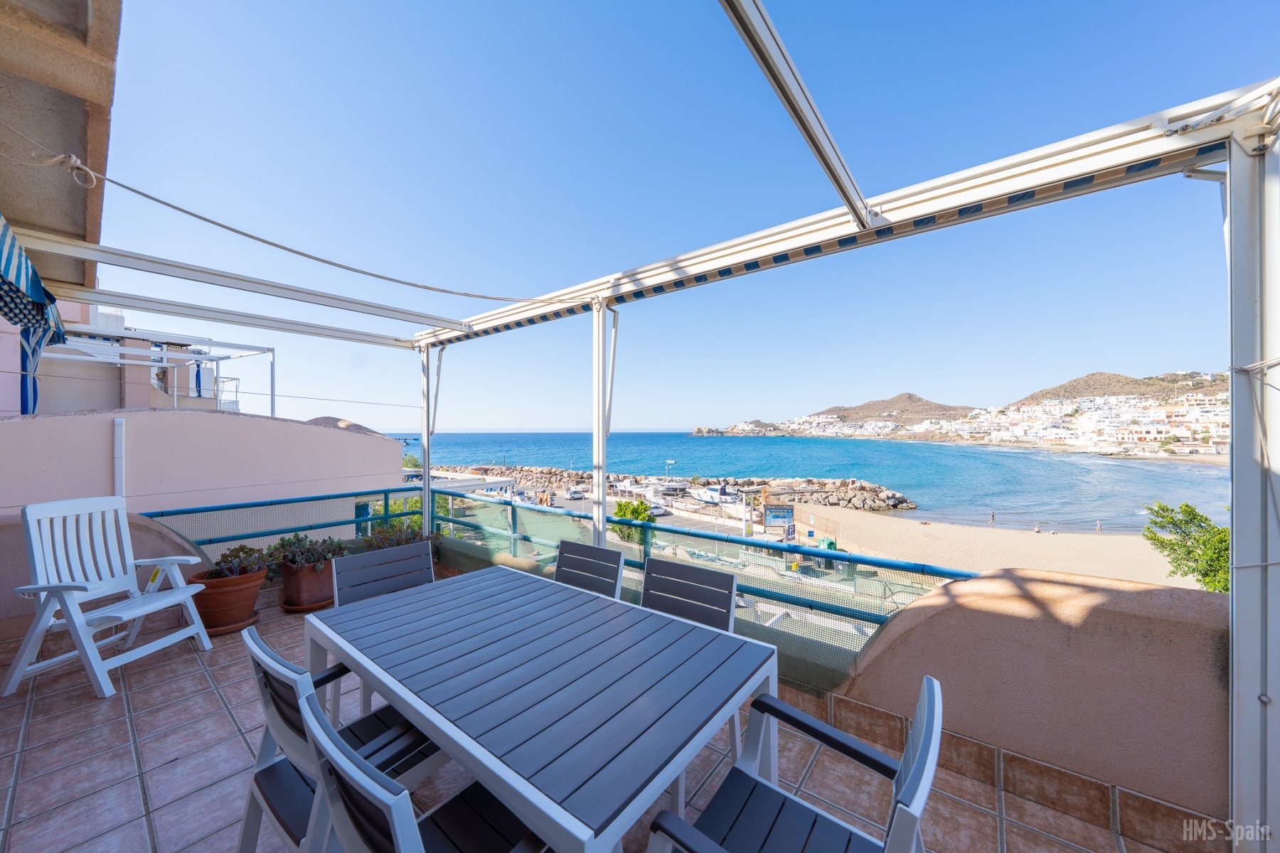 Apartamento ubicado en el parque natural de Cabo de Gata, en primera linea de playa. Con vistas espectaculares. Dispone de una piscina comunitaria sobre las rocas del mar, bajada privada al mar, la playa más próxima esta a escasos 5 minutos a pie.
