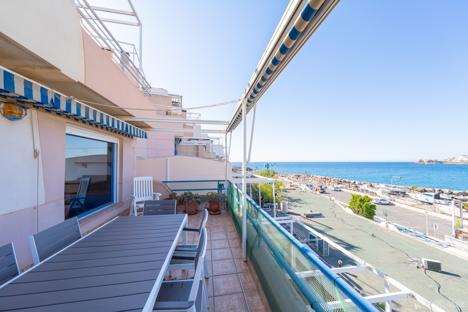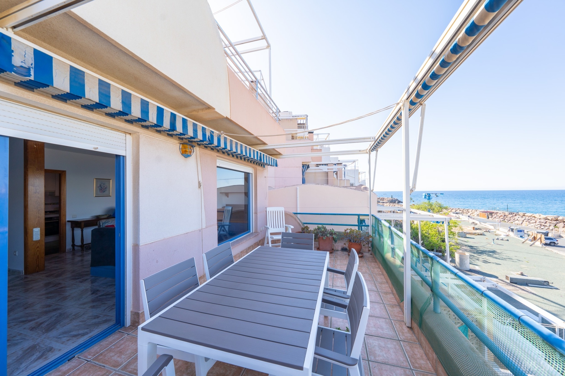 Amplia terraza en donde poder disfrutar de una comida familiar con vistas al mar