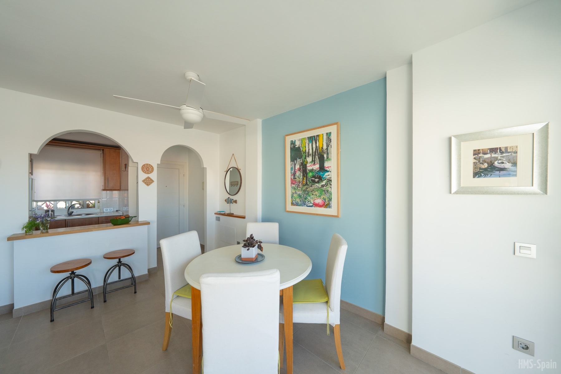 Precioso apartamento de planta baja con 2 dormitorios a un paso de la playa central de San José. Dispone de cocina totalmente equipada con microondas, horno, cafetera y lavadora. Ventiladores de techo en el salón y en los dormitorios.