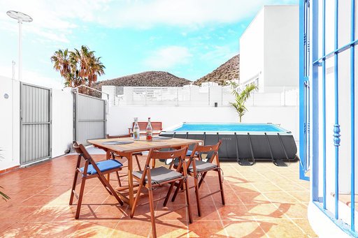 Alquiler Vacacional en San José, en pleno Parque Natural de Cabo de Gata. Disfruta de la Naturaleza en un entorno único, multitud de actividades de aventura a tu alcance. La mejor opción para familias y grupos de amigos, capacidad de hasta 7 personas, duplex totalmente equipado para alquiler vacacional con estancia mínima de 4 noches.
