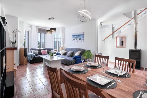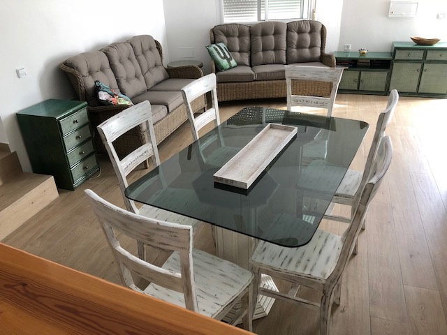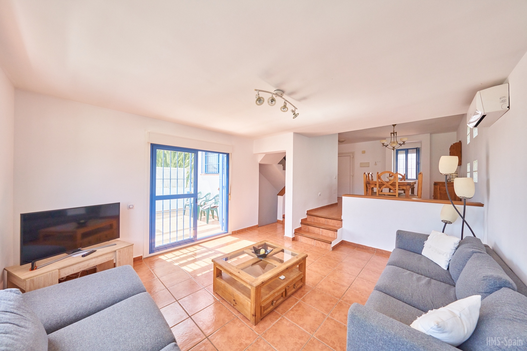 Alquiler de espacioso y cómodo duplex en la Urbanización Cortijos del Sotillo, tres dormitorios, dos baños, cocina completa, terraza con mesa, sillas y barbacoa, aire acondicionado en salón y dormitorios, plaza de aparcamiento y piscina comunitaria. Ideal para familias.