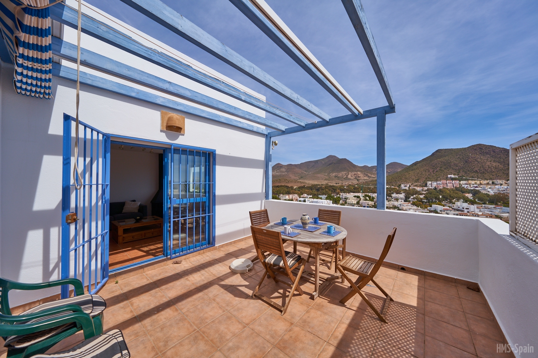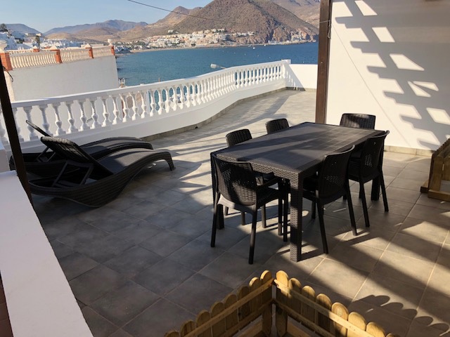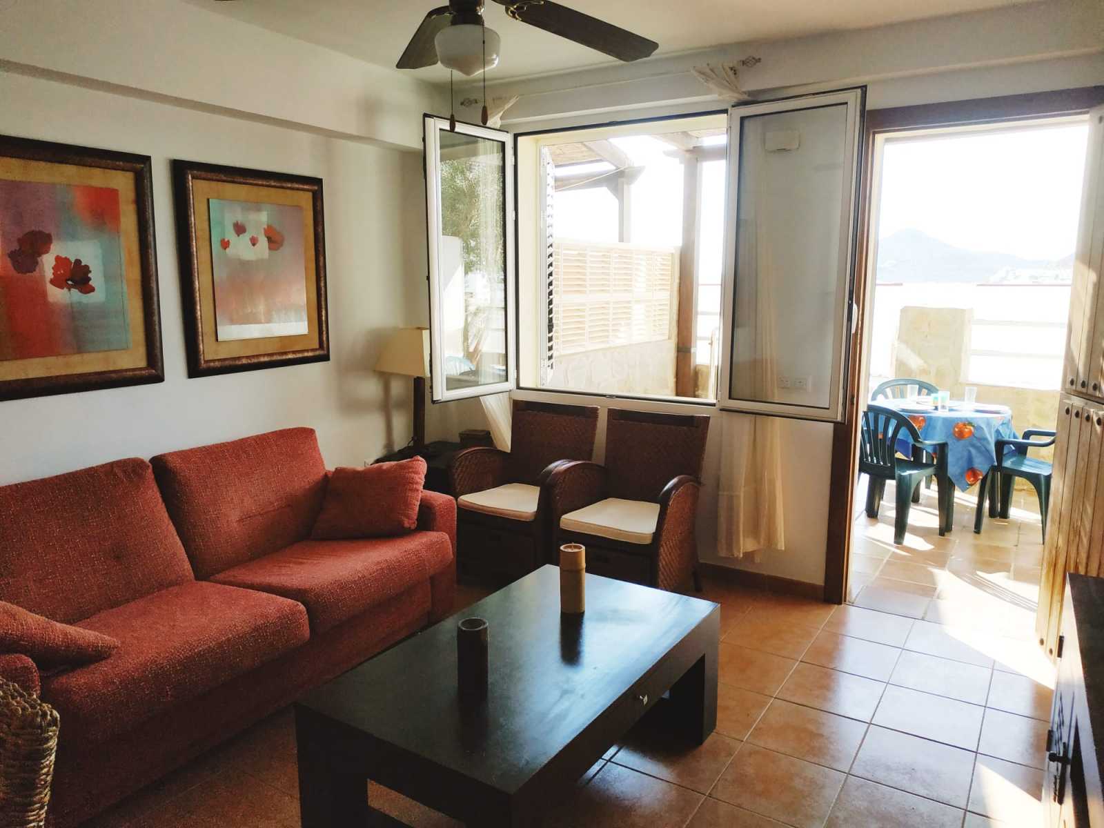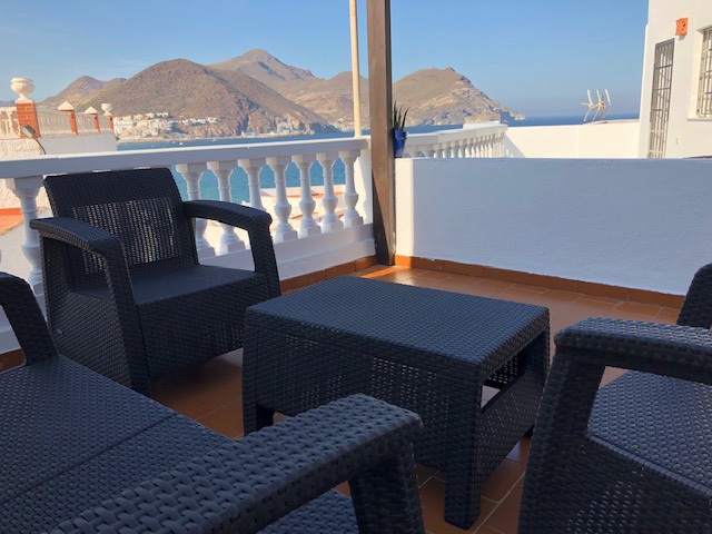 Alquiler de apartamento Duplex de dos dormitorios y un baño, muy cerca de la playa y del centro, con una estupenda terraza con unas impresionantes vistas a la bahía de San josé, la casa está completa de menaje y pequeños electrodomésticos, lavadora. Dispone de sábanas y toallas de casa.