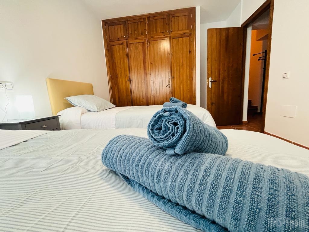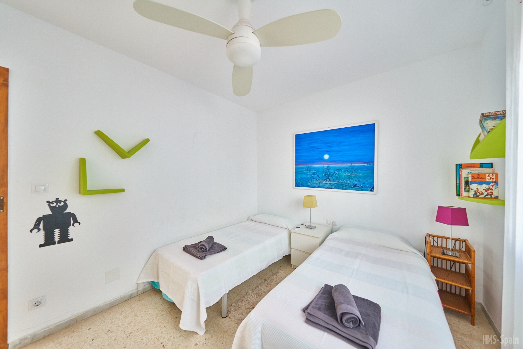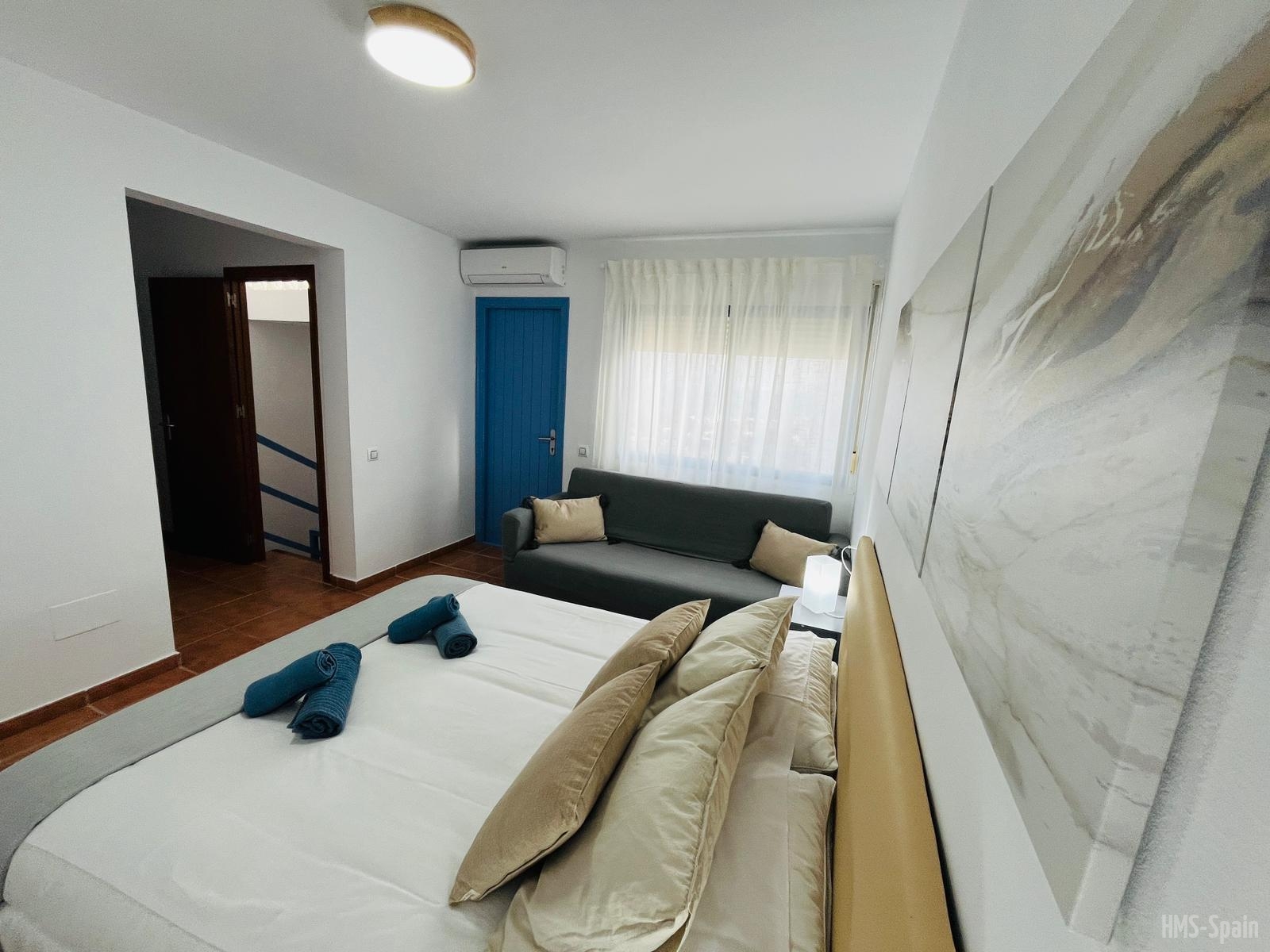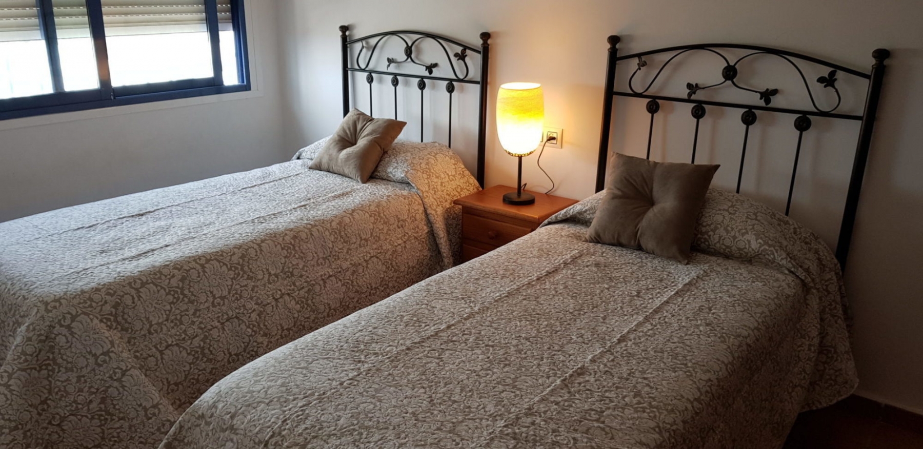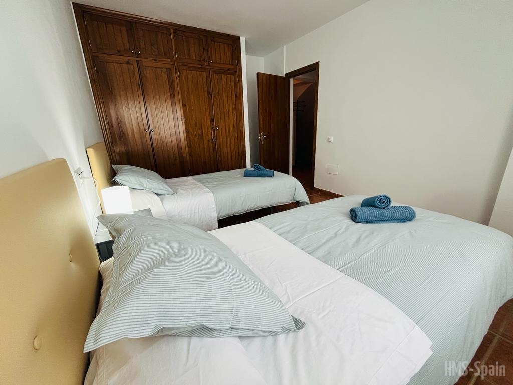 Duplex situado en la calle Las Rosas 14, dispone de cuatro dormitorios, uno con una cama de 135 cm, dos con dos camas de 90 cm cada uno y un cuarto dormitorio con una cama de 90 cm, salón-comedor, cocina completamente equipada de menaje y pequeño elcectrodomésticos, terraza con vistas al mar, aire acondicionado en salón y dormitorios. WiFi Gratis. Dispone de sábanas y toallas de casa.