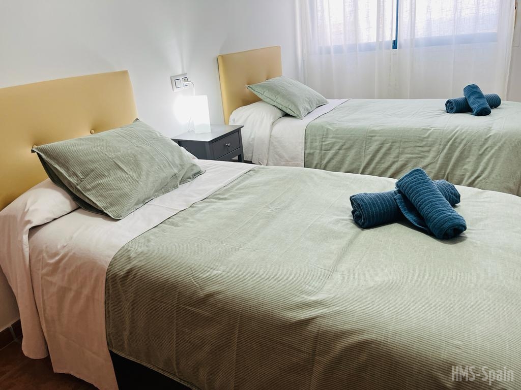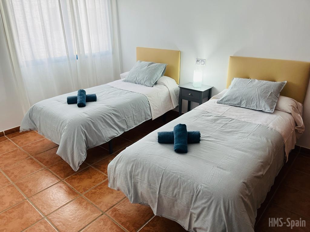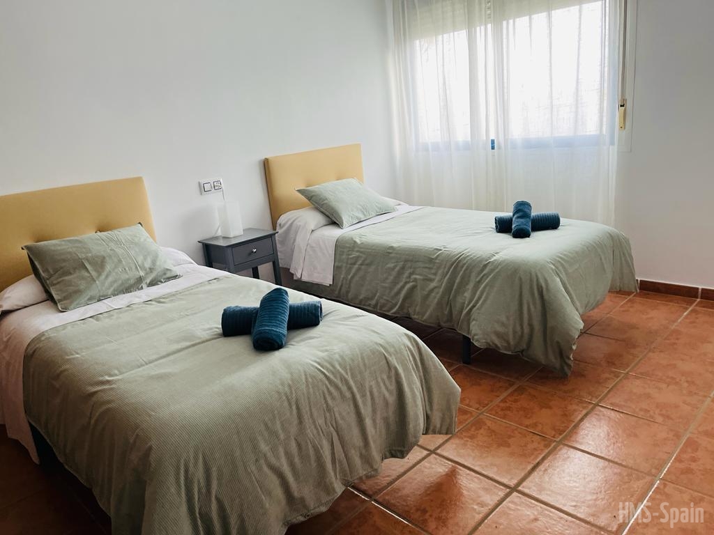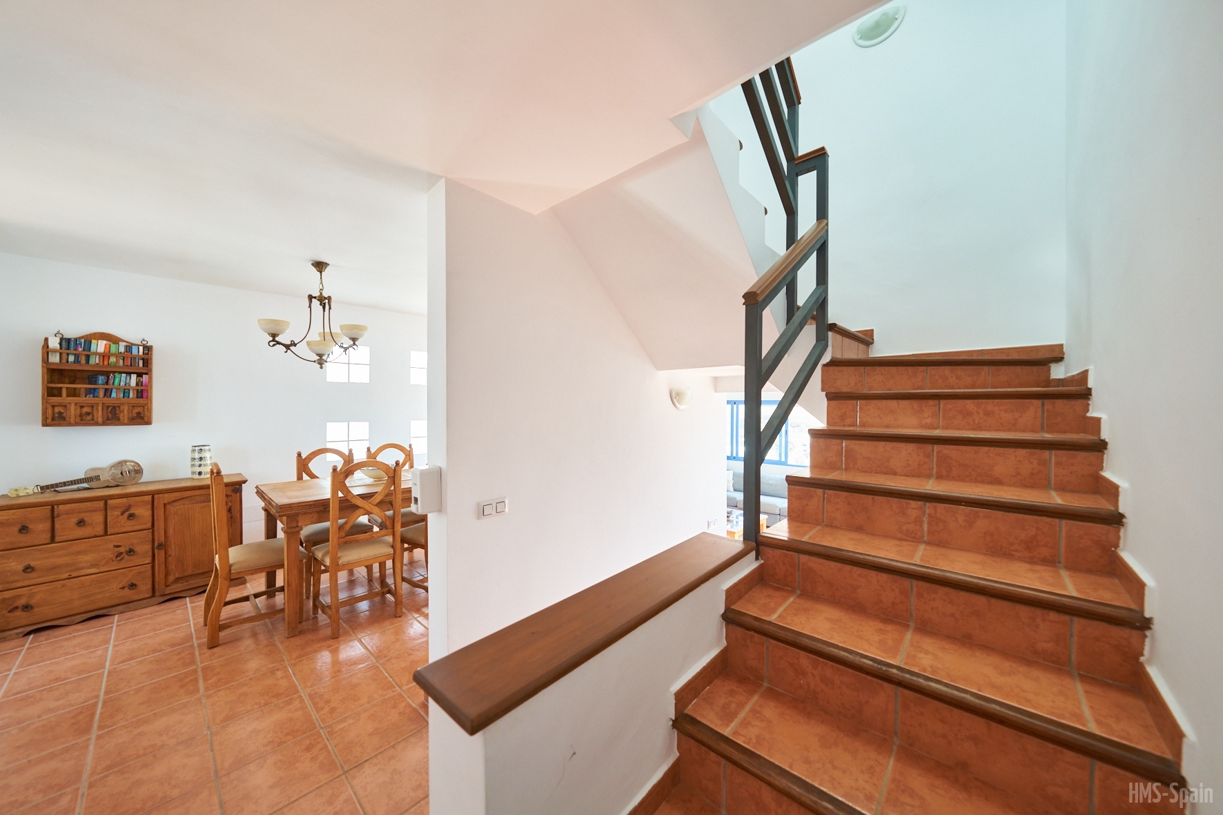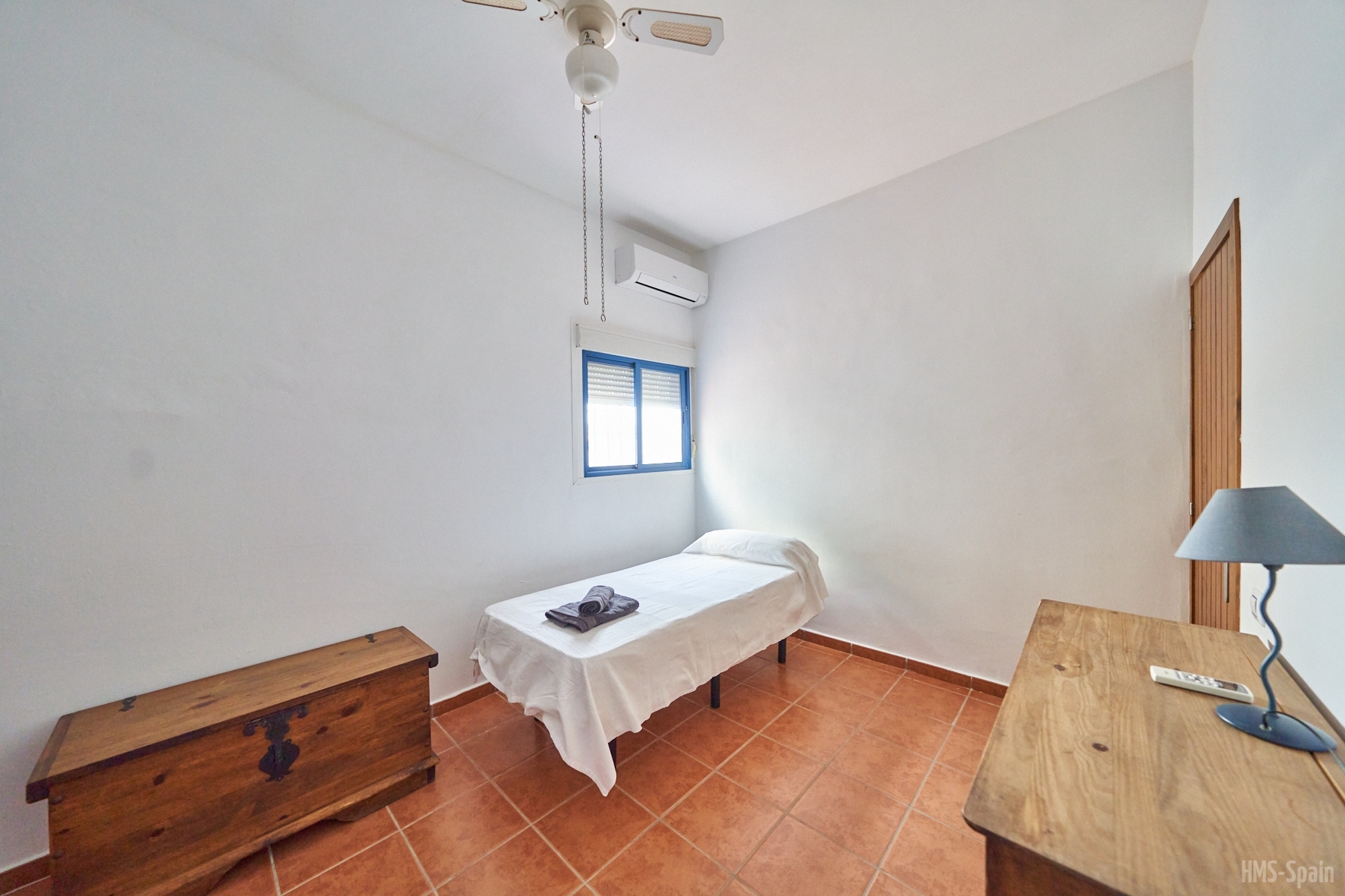 Duplex situado en la calle Las Rosas 14, dispone de cuatro dormitorios, uno con una cama de 135 cm, dos con dos camas de 90 cm cada uno y un cuarto dormitorio con una cama de 90 cm, salón-comedor, cocina completamente equipada de menaje y pequeño elcectrodomésticos, terraza con vistas al mar, aire acondicionado en salón y dormitorios. WiFi Gratis. Dispone de sábanas y toallas de casa.