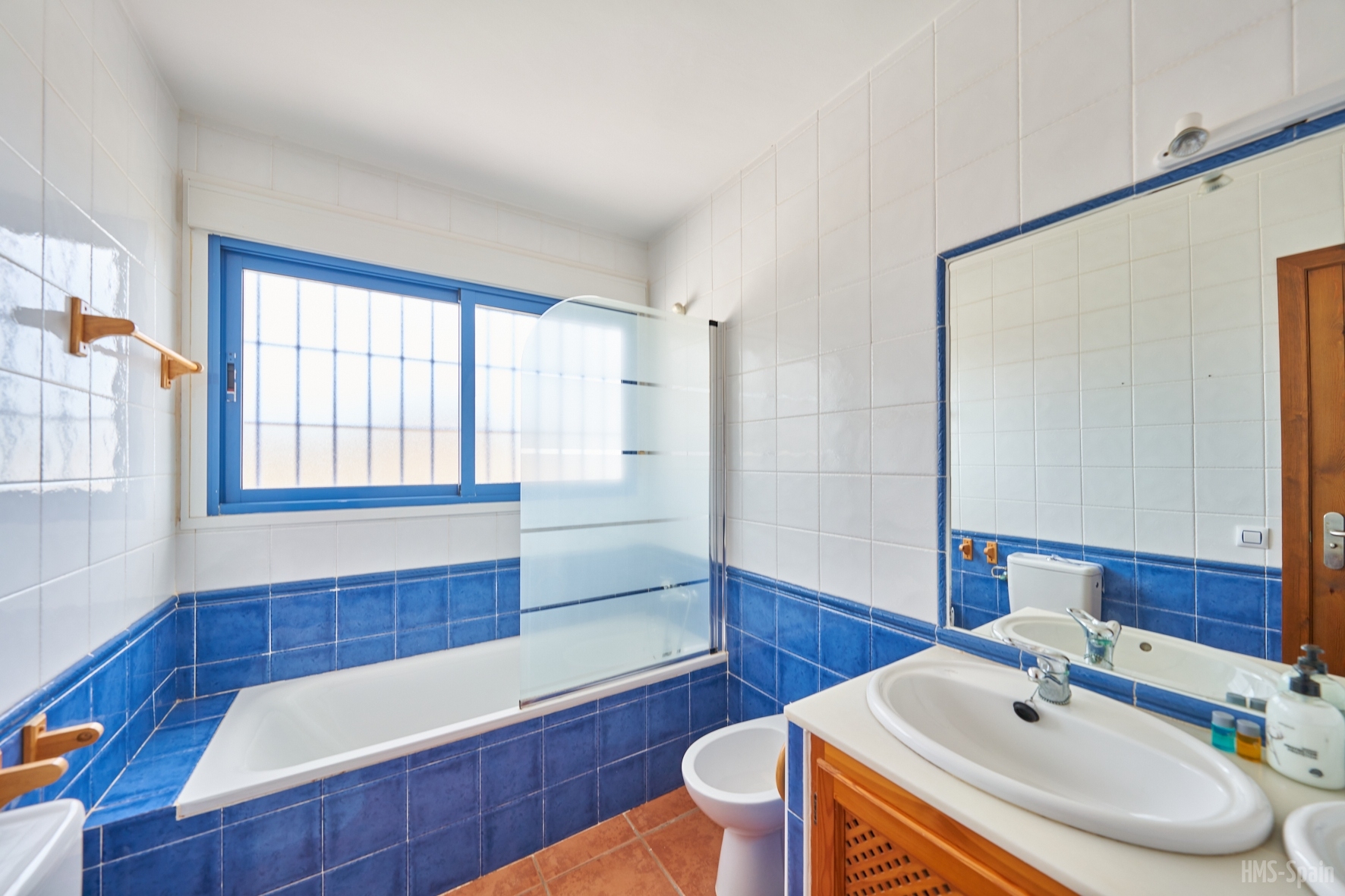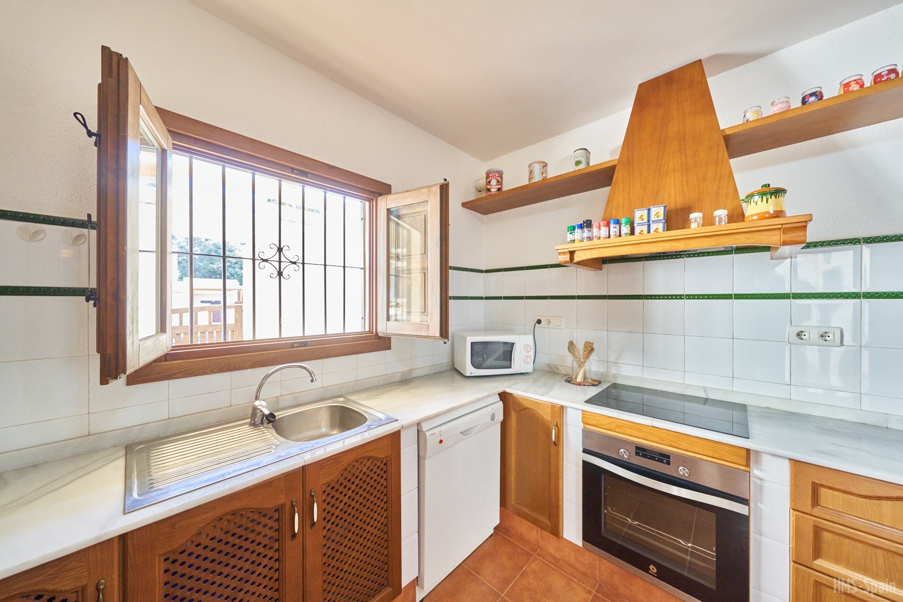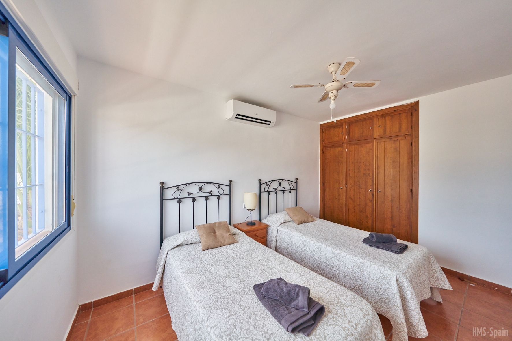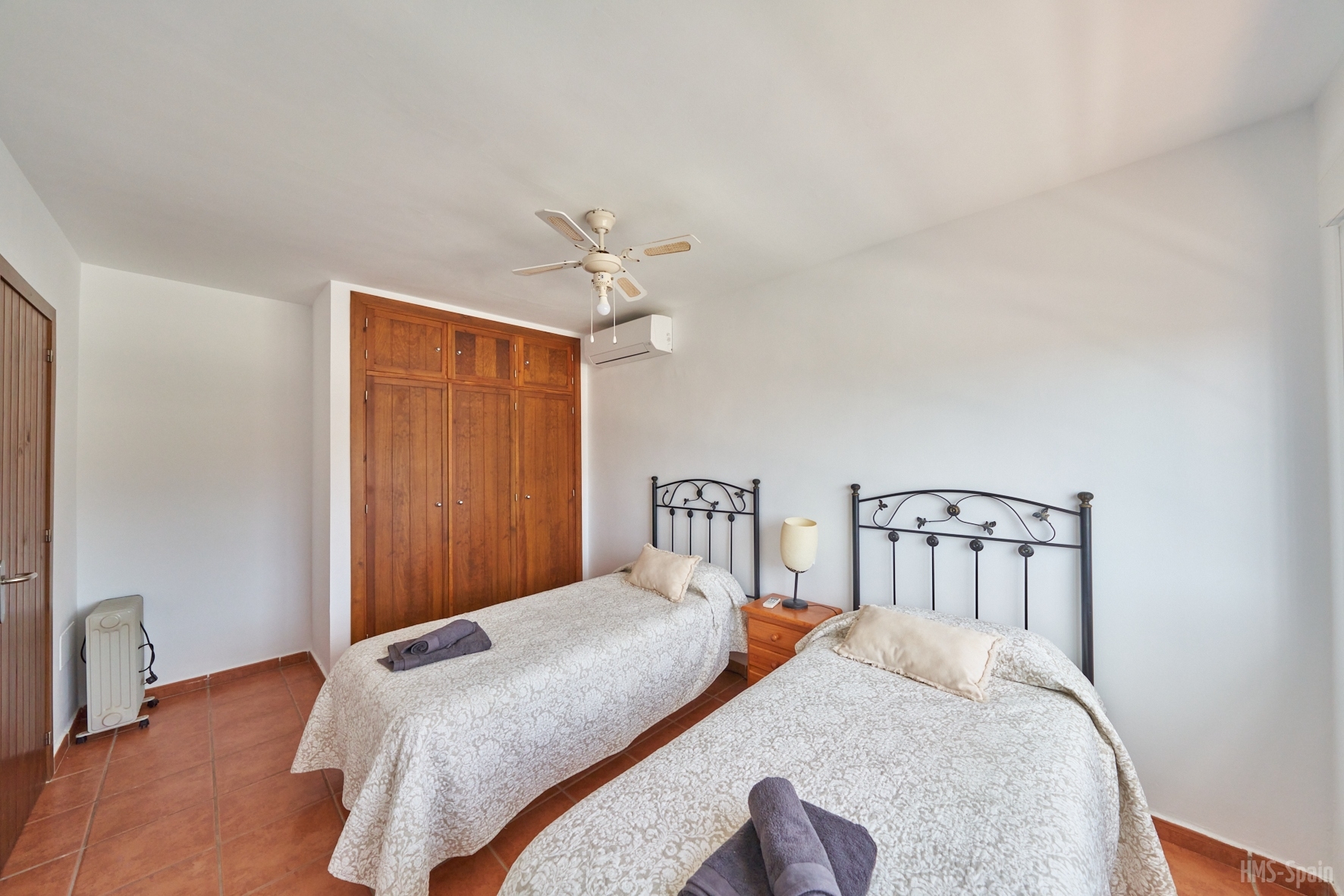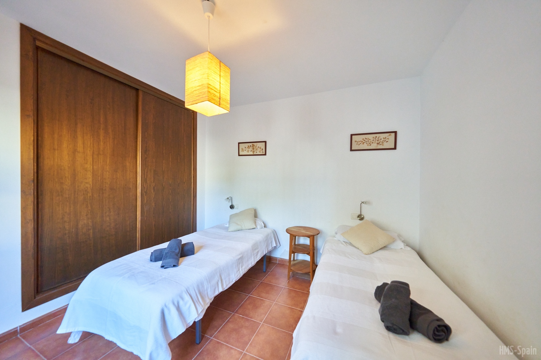 Distribuida en dos plantas, situada en una zona tranquila, dispone de una planta baja con salón-comedor y smart tv, cocina con barra americana y totalmente equipada, un primer dormitorio con litera doble de 90 cm, un segundo dormitorio con 2 camas de 90 cm en cama-nido, un baño completo. La segunda planta dispone de un dormitorio con cama de 150 con aseo, acceso a las terrazas y vistas al mar.