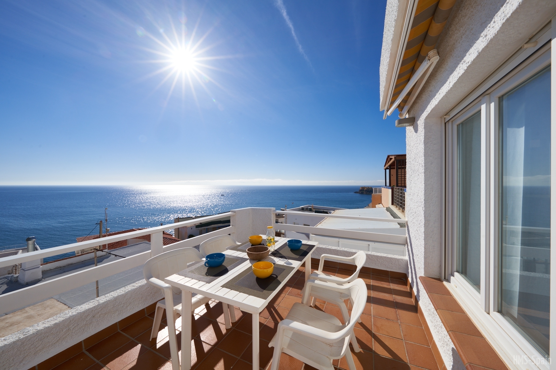 Duplex de cuatro dormitorios y vistas al mar, aire acondicionado y WiFi Gratis, Terraza con vistas al mar, alquiler vacacional con capacidad para 7 personas.