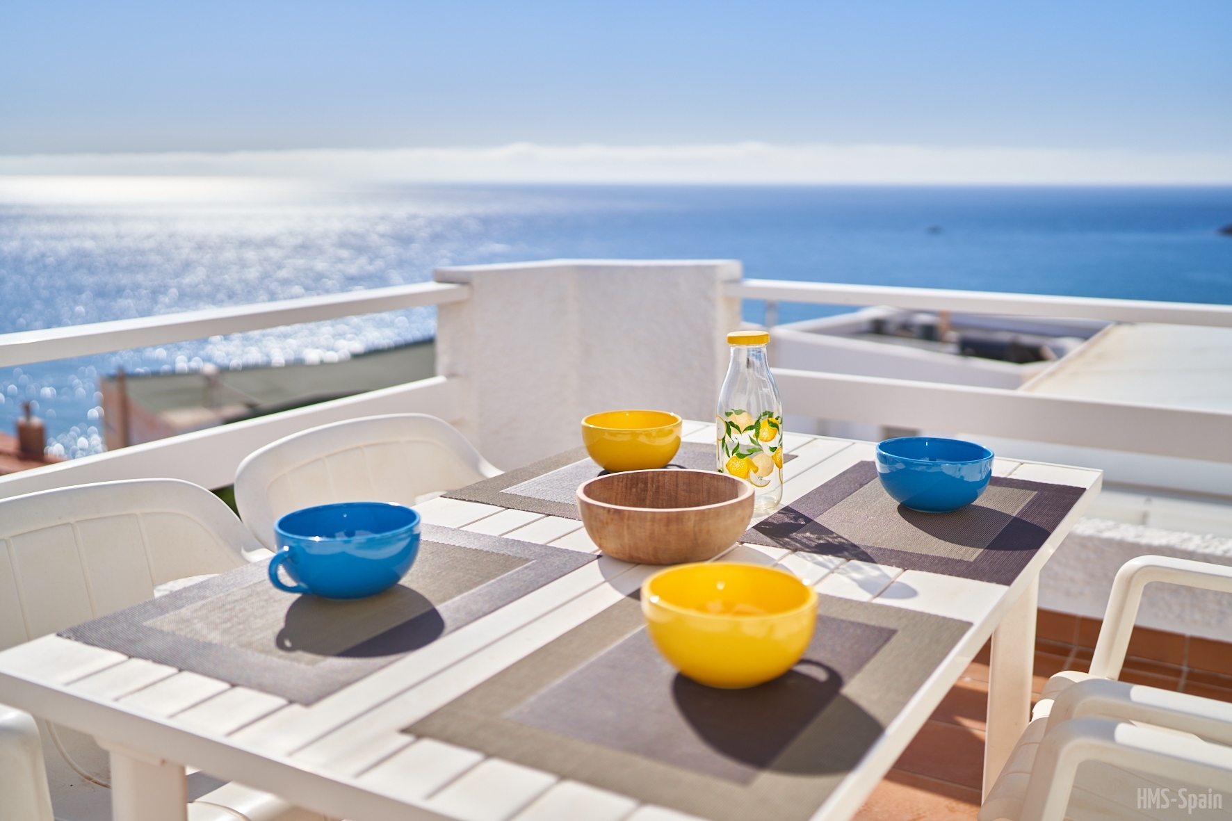 Terraza chill out con vistas al mar y una segunda terraza con comedor, el apartamento dispone de dos dormitorios , un baño con amplia ducha, Casa Casergyo está totalmente equipado para alquiler vacacional, con estancia mínima de 4 noches.