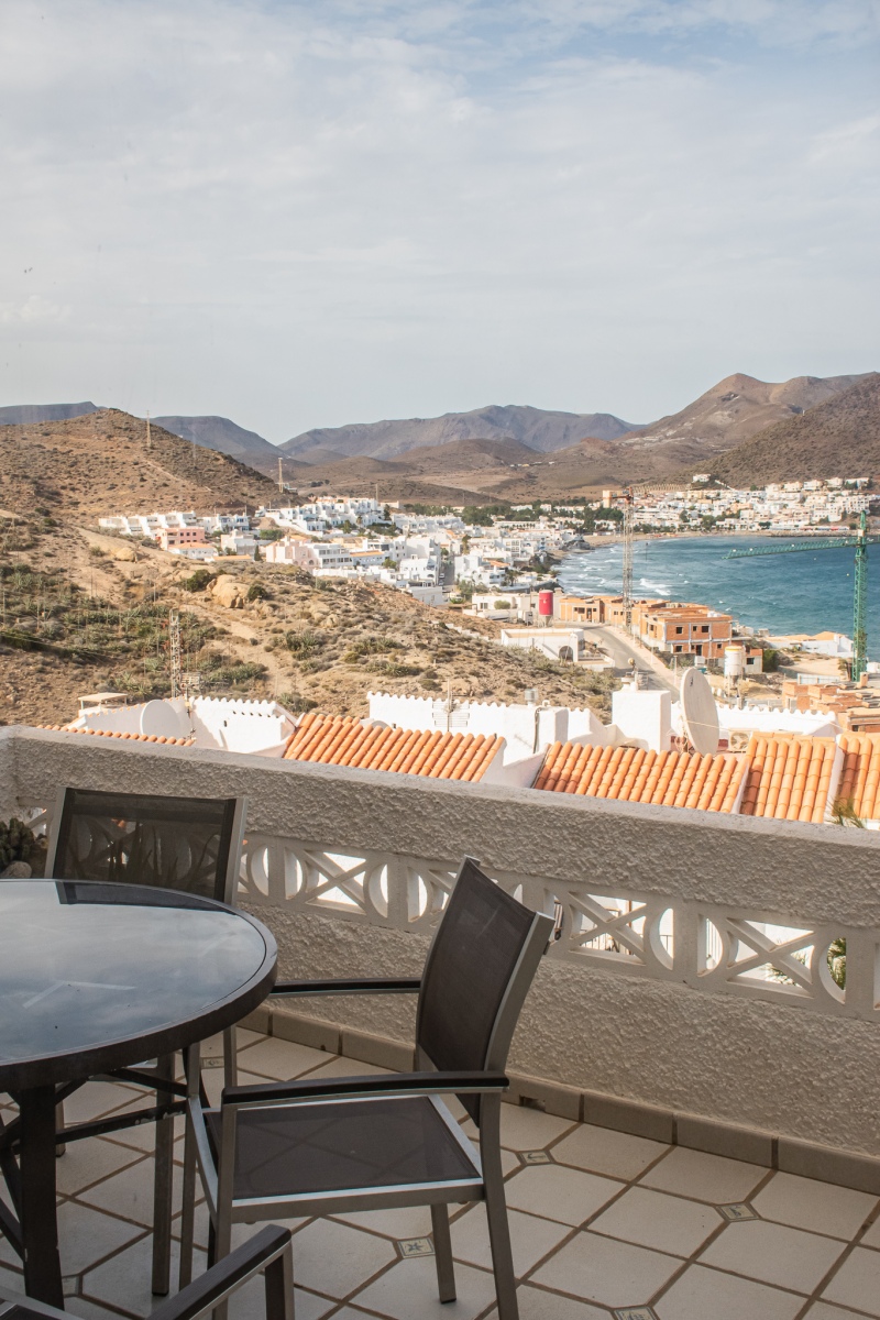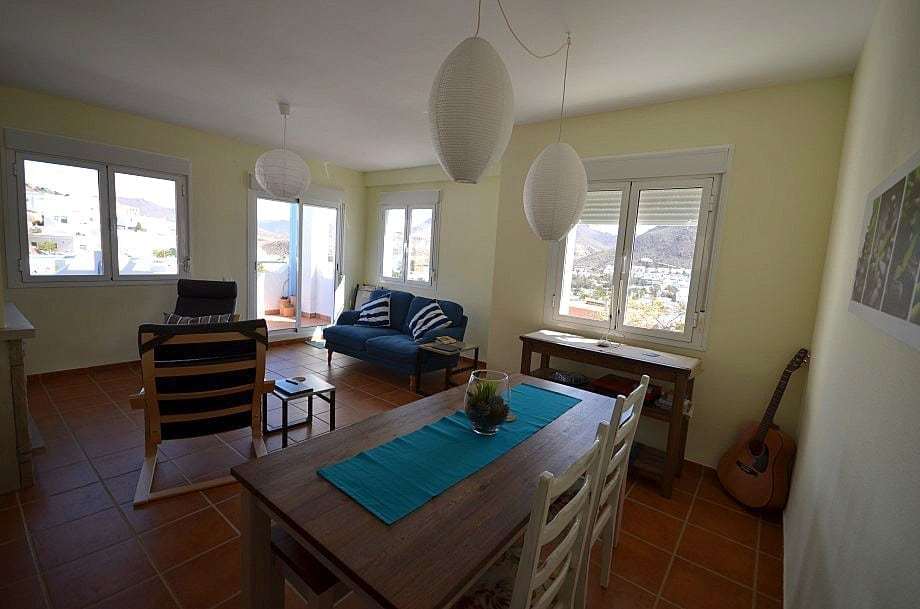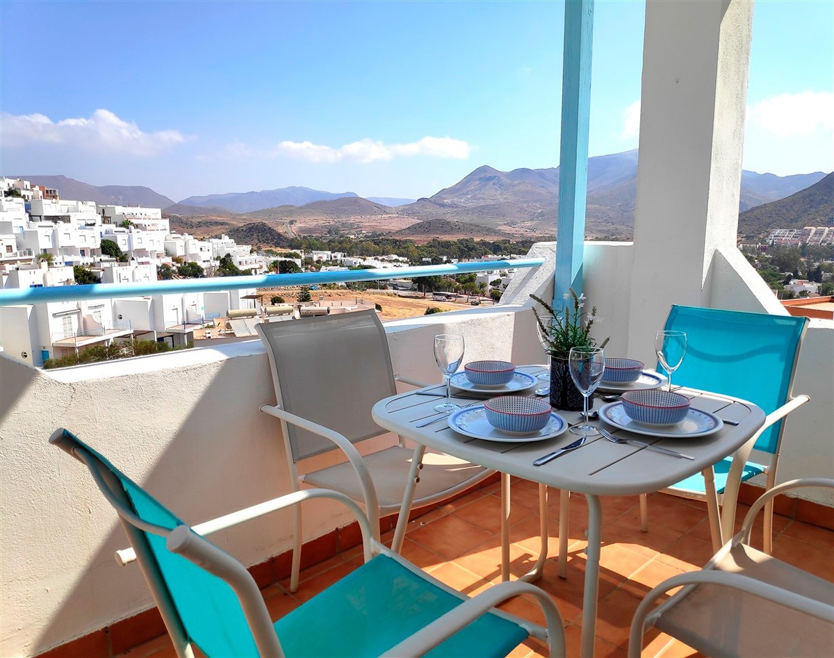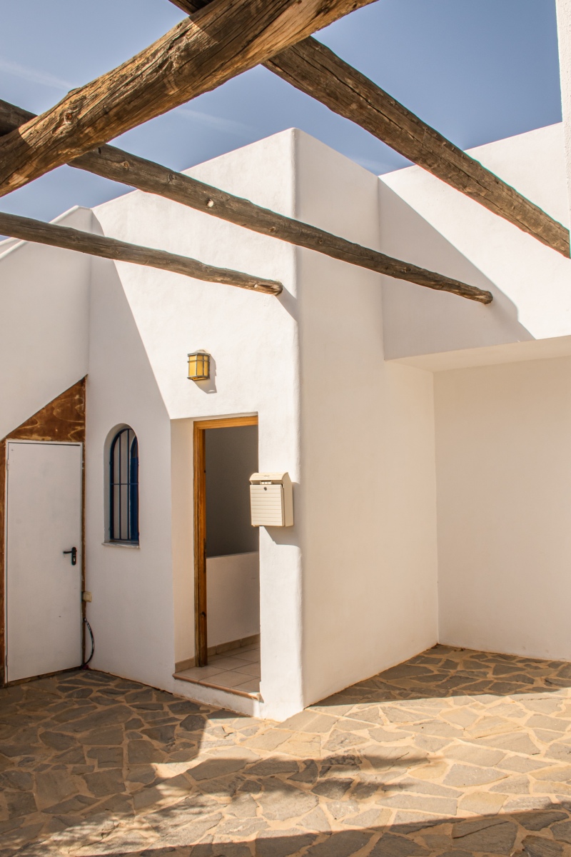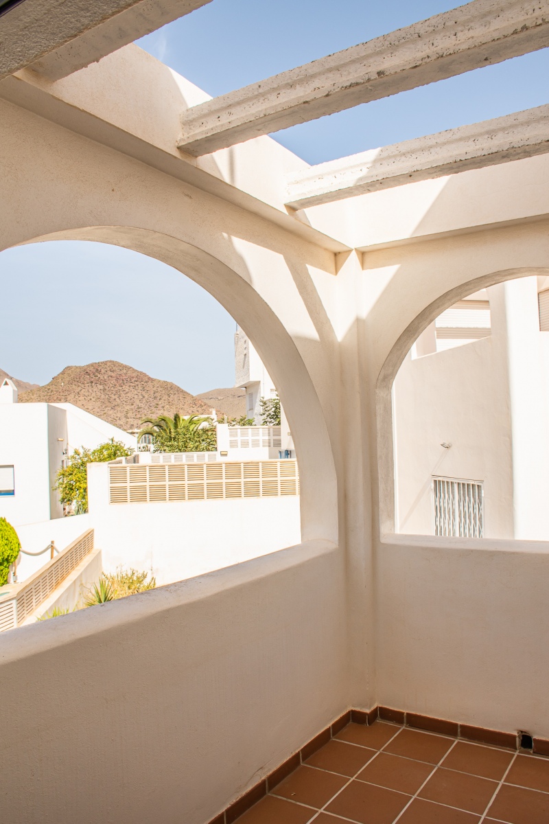 Duplex semi adosado. Consta de dos plantas, tres dormitorios, dos cuartos de baño y cocina. Terraza y solarium. Situado en el camino de las playas de Mónsul y Genoveses con vistas al Cerro del Fraile y Loma Pelada, al pueblo de San José y al mar. A cinco minutos andando del pueblo y la playa.