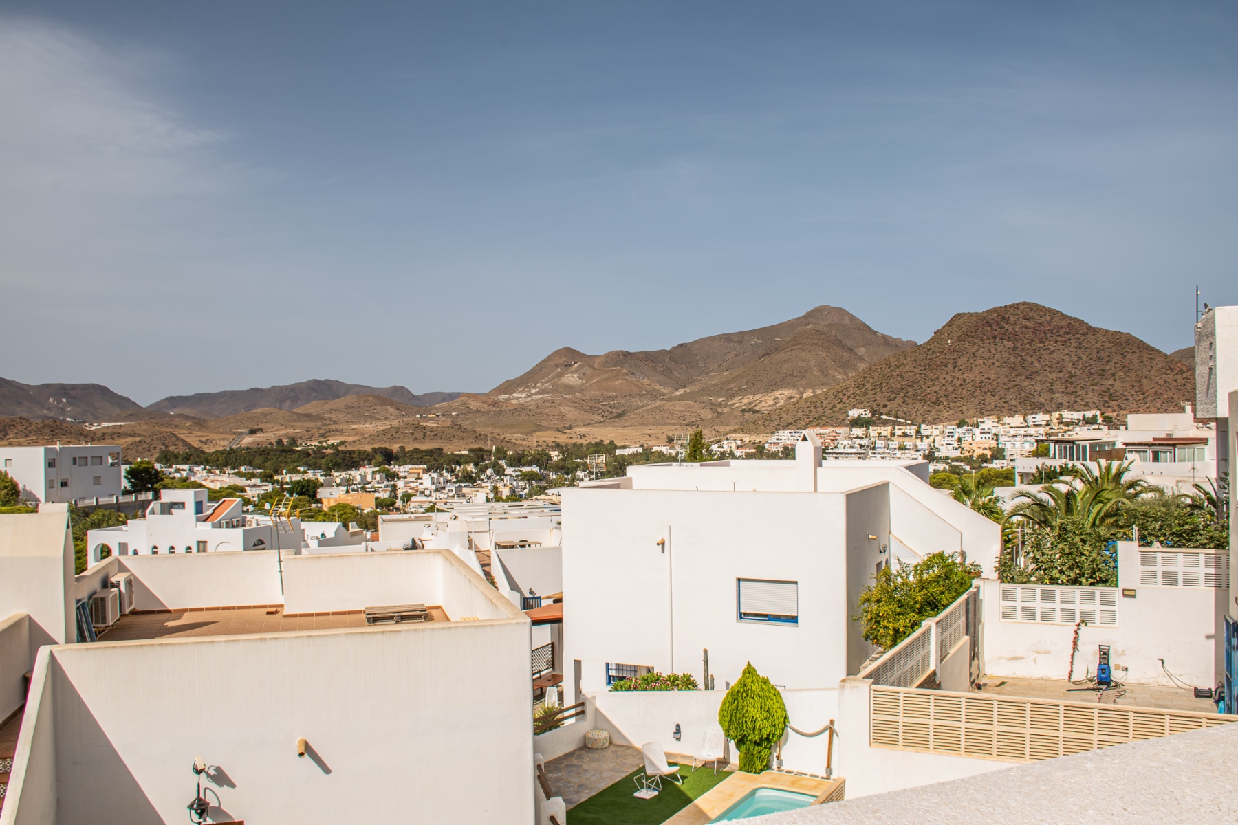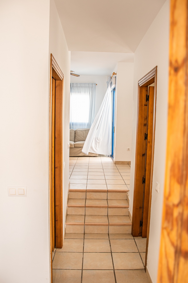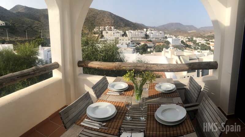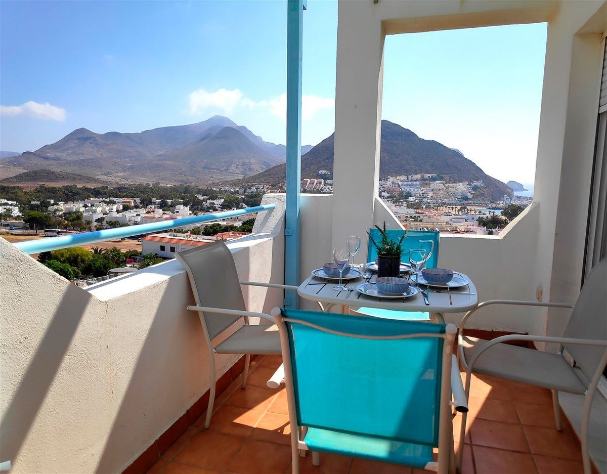Duplex semi adosado. Consta de dos plantas, tres dormitorios, dos cuartos de baño y cocina. Terraza y solarium. Situado en el camino de las playas de Mónsul y Genoveses con vistas al Cerro del Fraile y Loma Pelada, al pueblo de San José y al mar. A cinco minutos andando del pueblo y la playa.