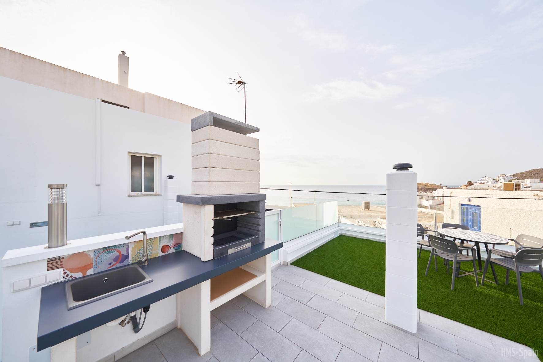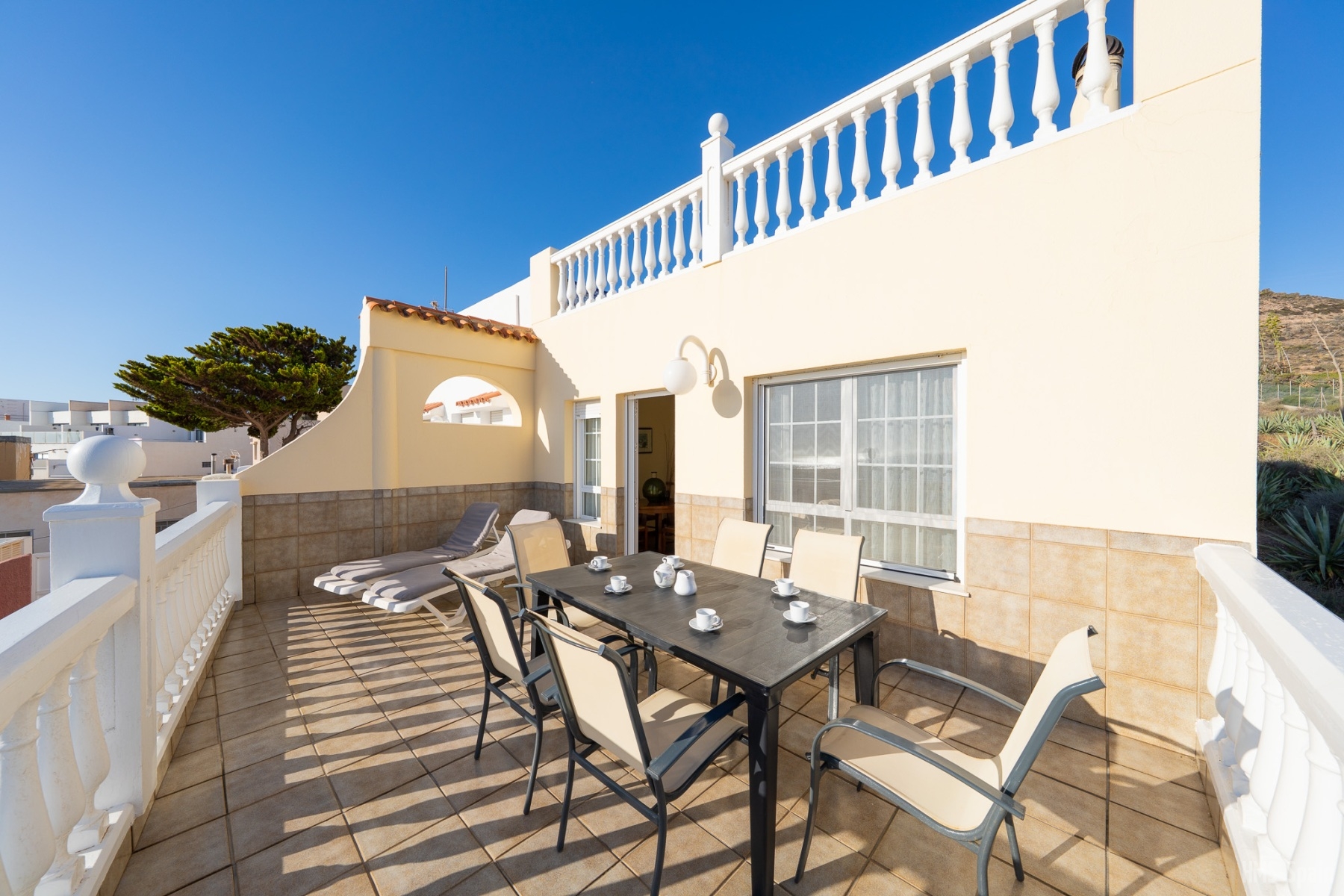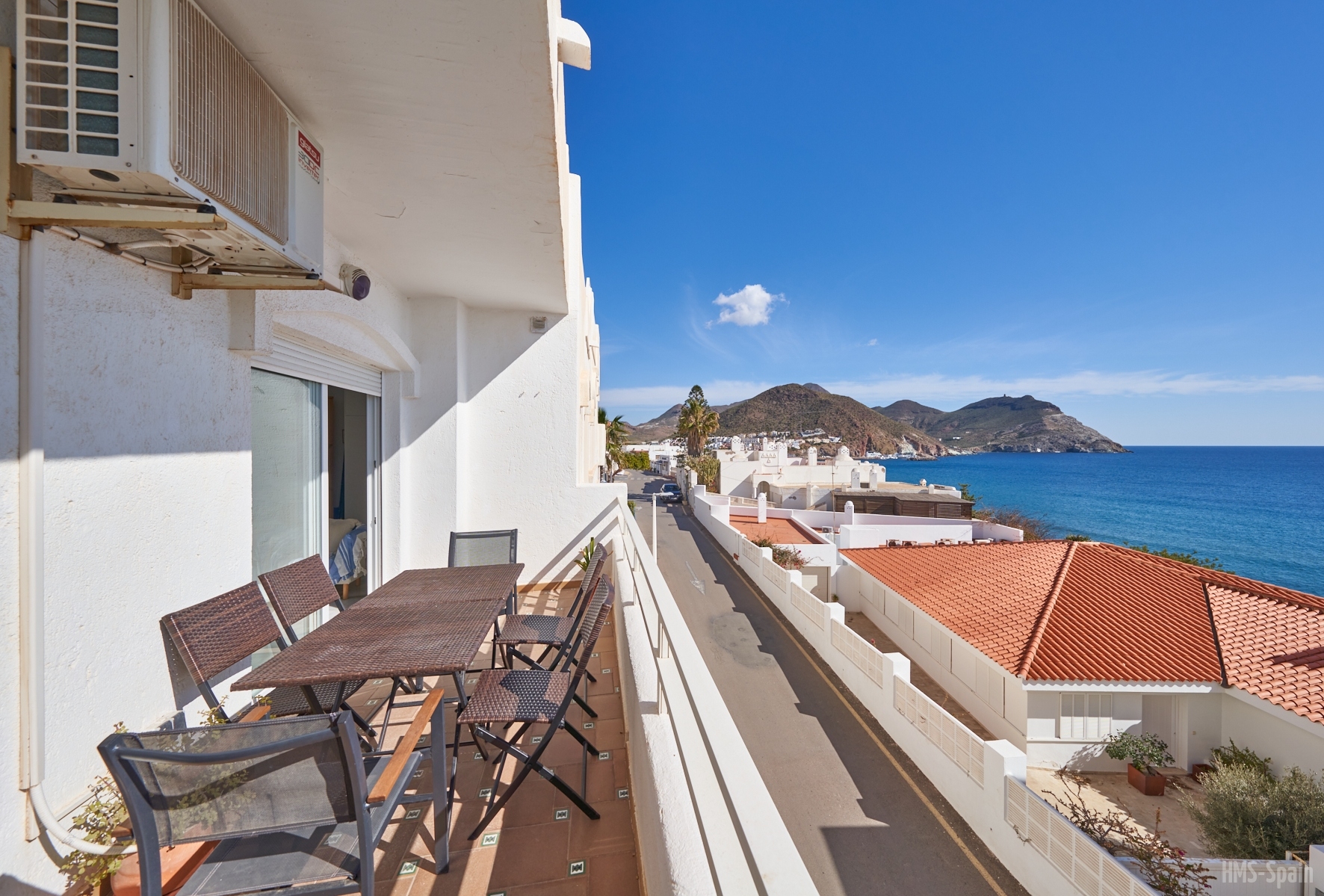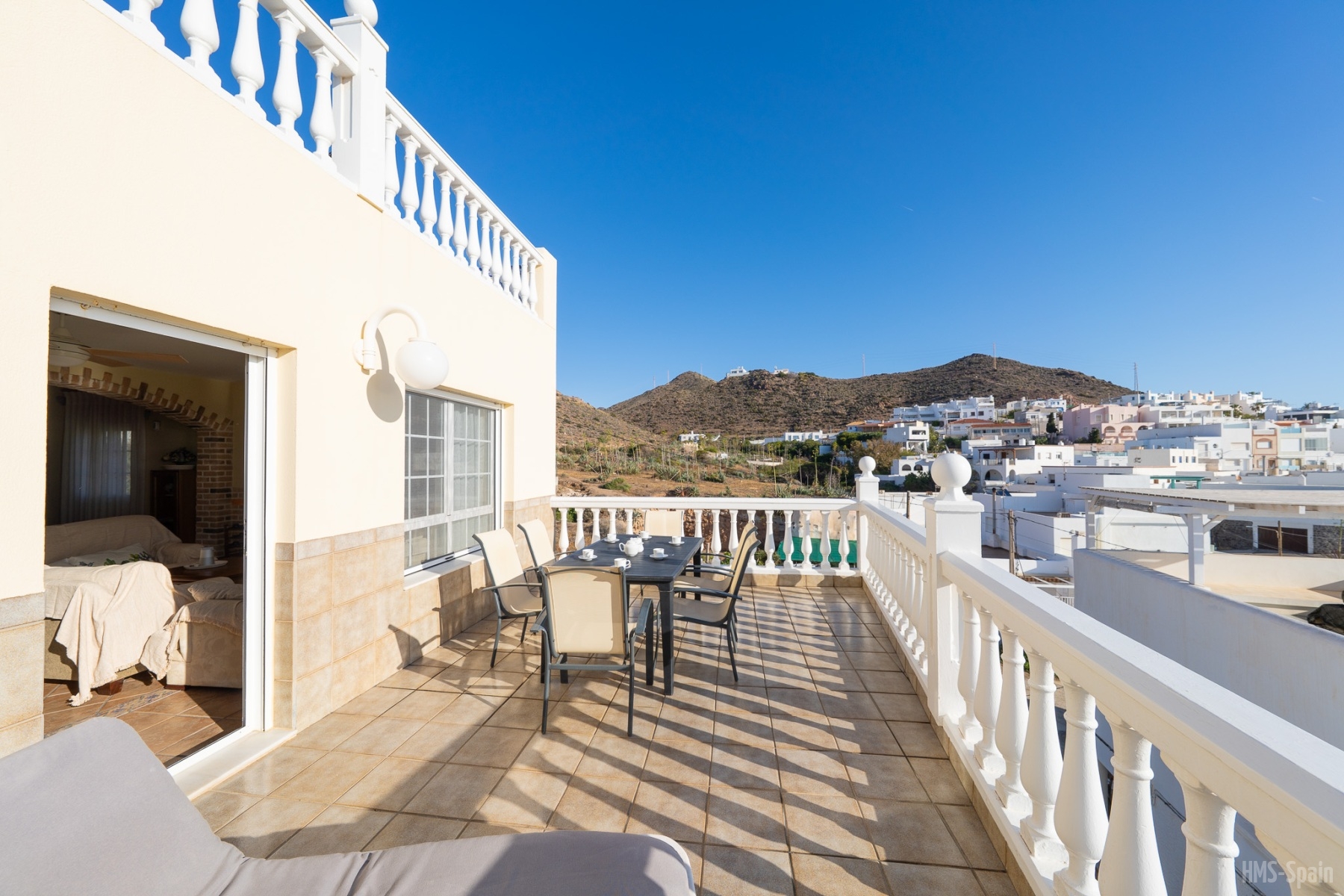 Duplex semi adosado. Consta de dos plantas, tres dormitorios, dos cuartos de baño y cocina. Terraza y solarium. Situado en el camino de las playas de Mónsul y Genoveses con vistas al Cerro del Fraile y Loma Pelada, al pueblo de San José y al mar. A cinco minutos andando del pueblo y la playa.