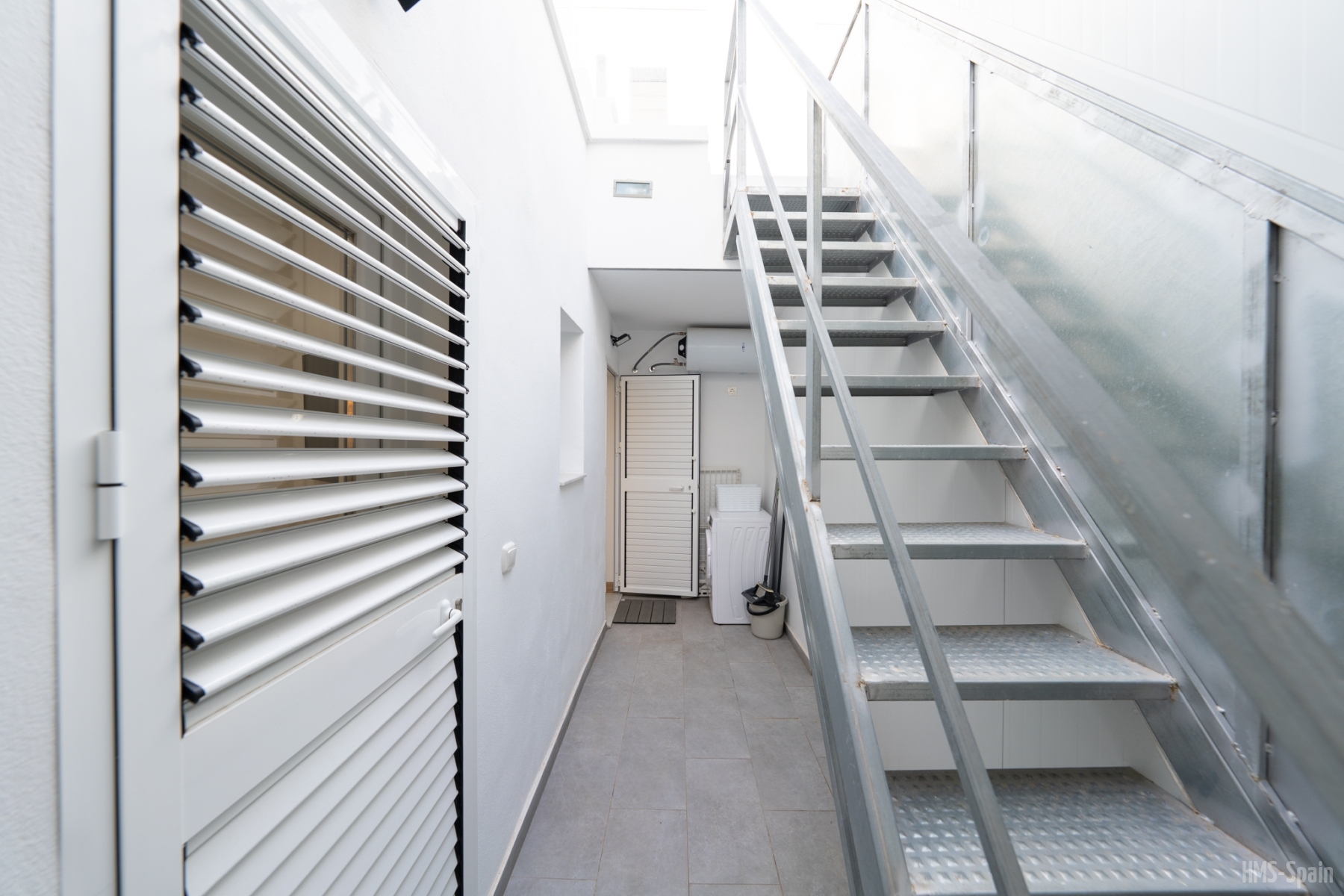 En la parte exterior hay un cuarto de lavadora.