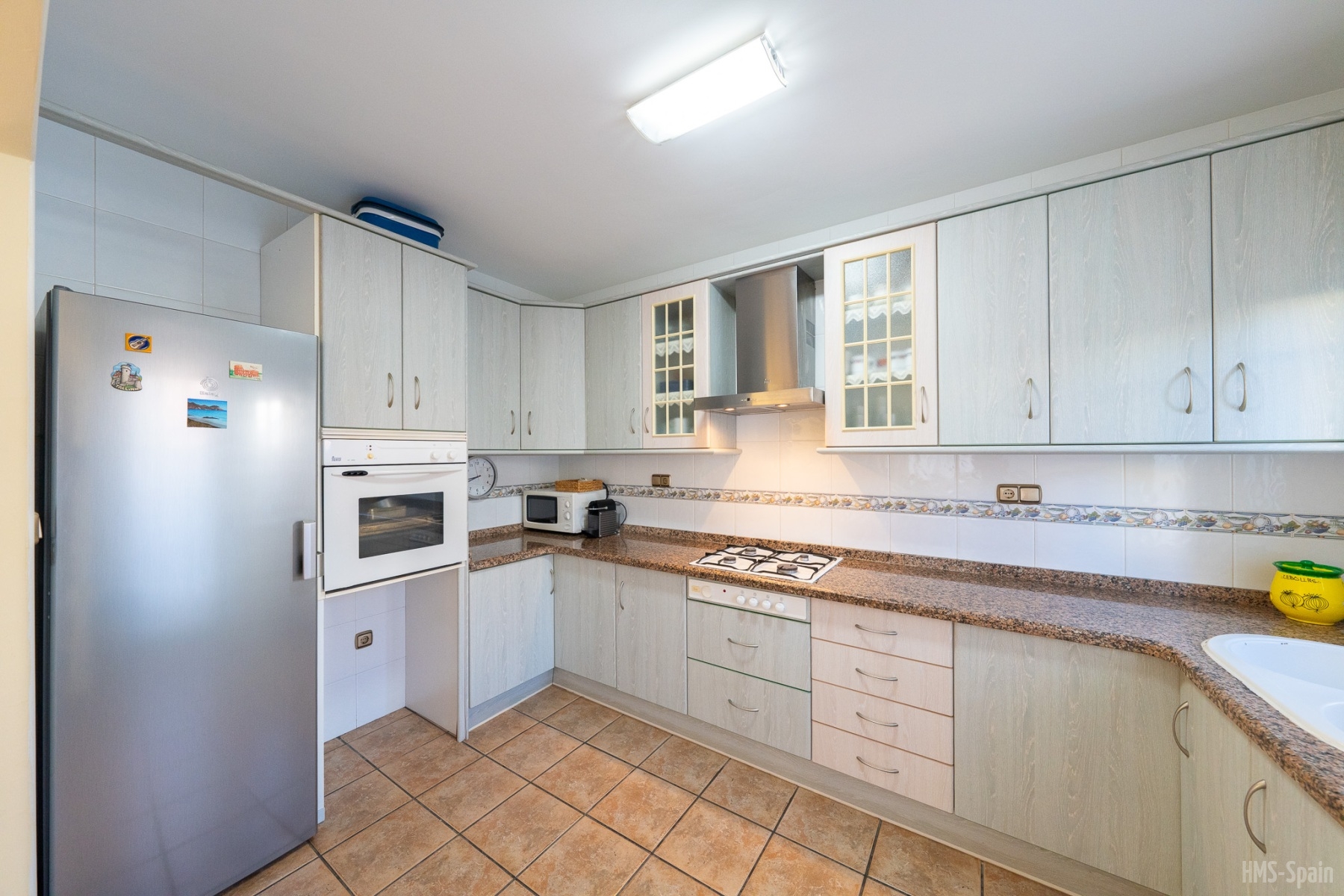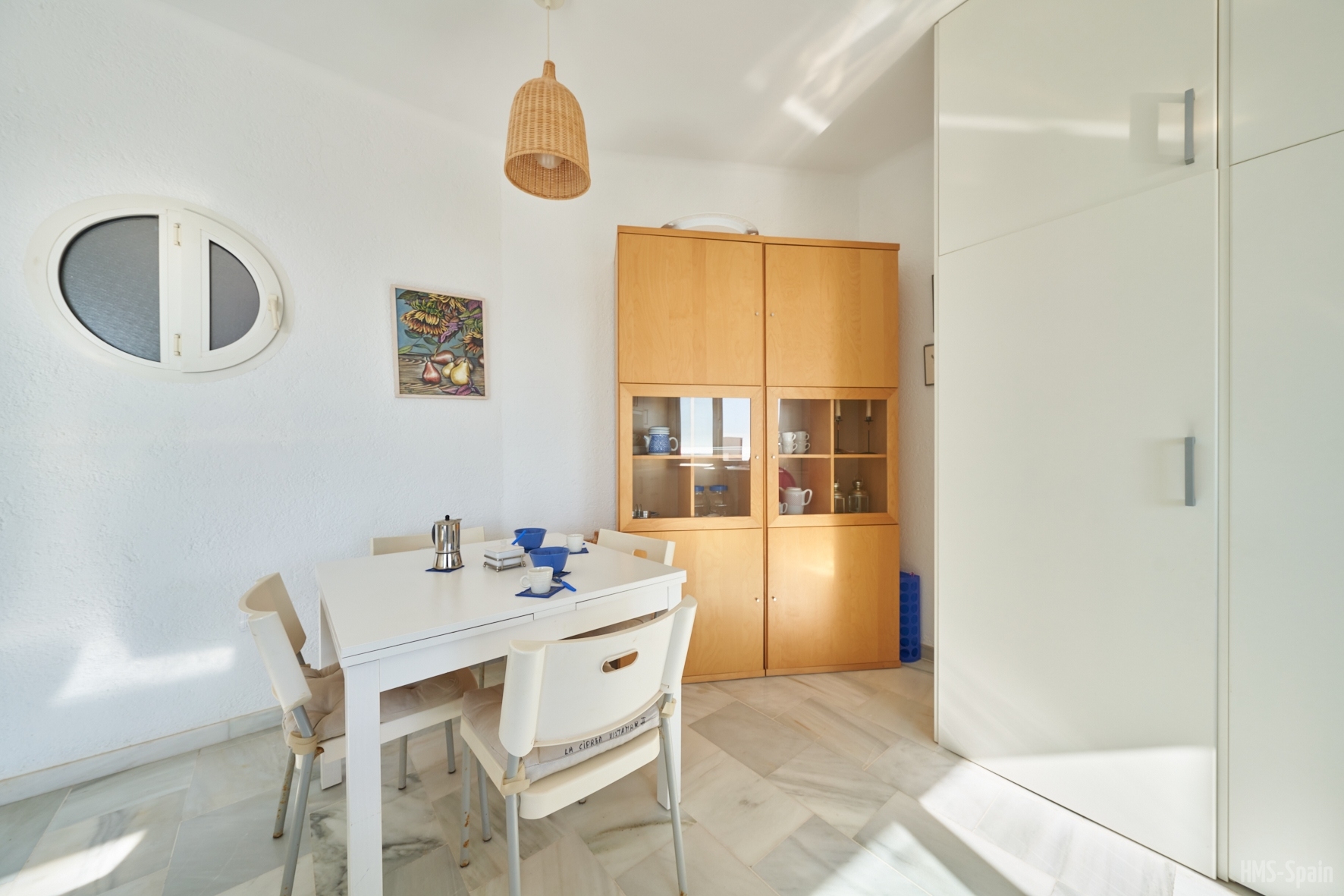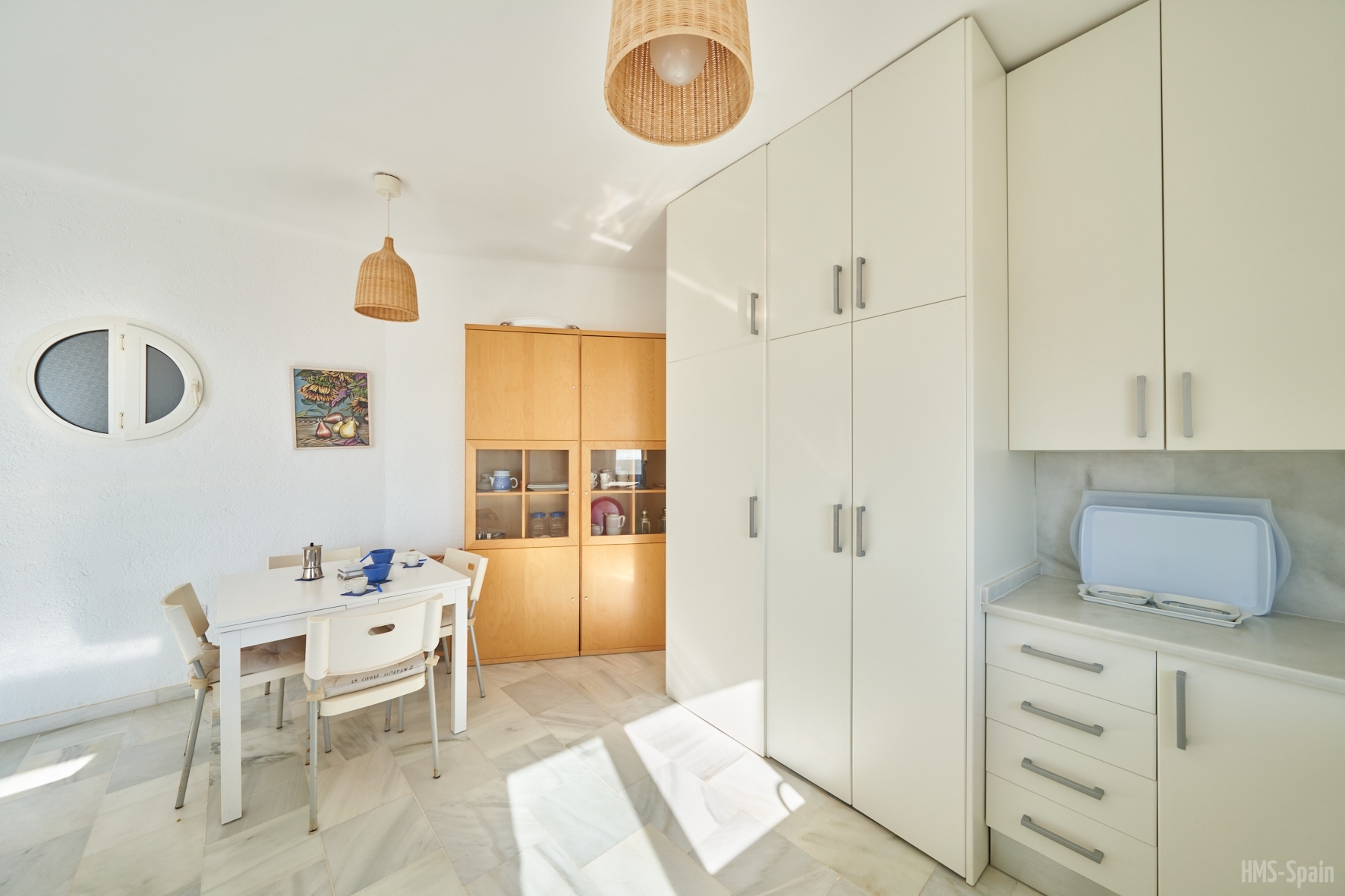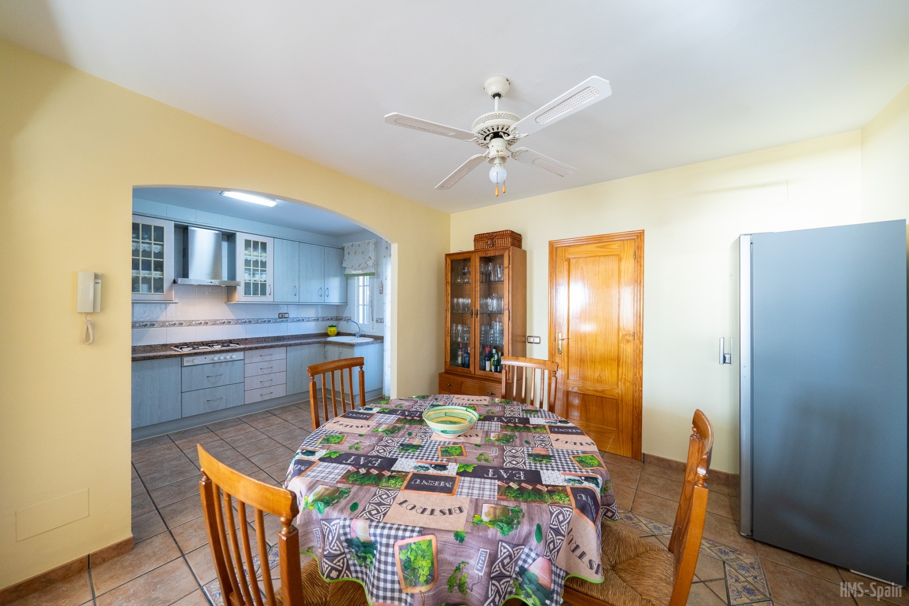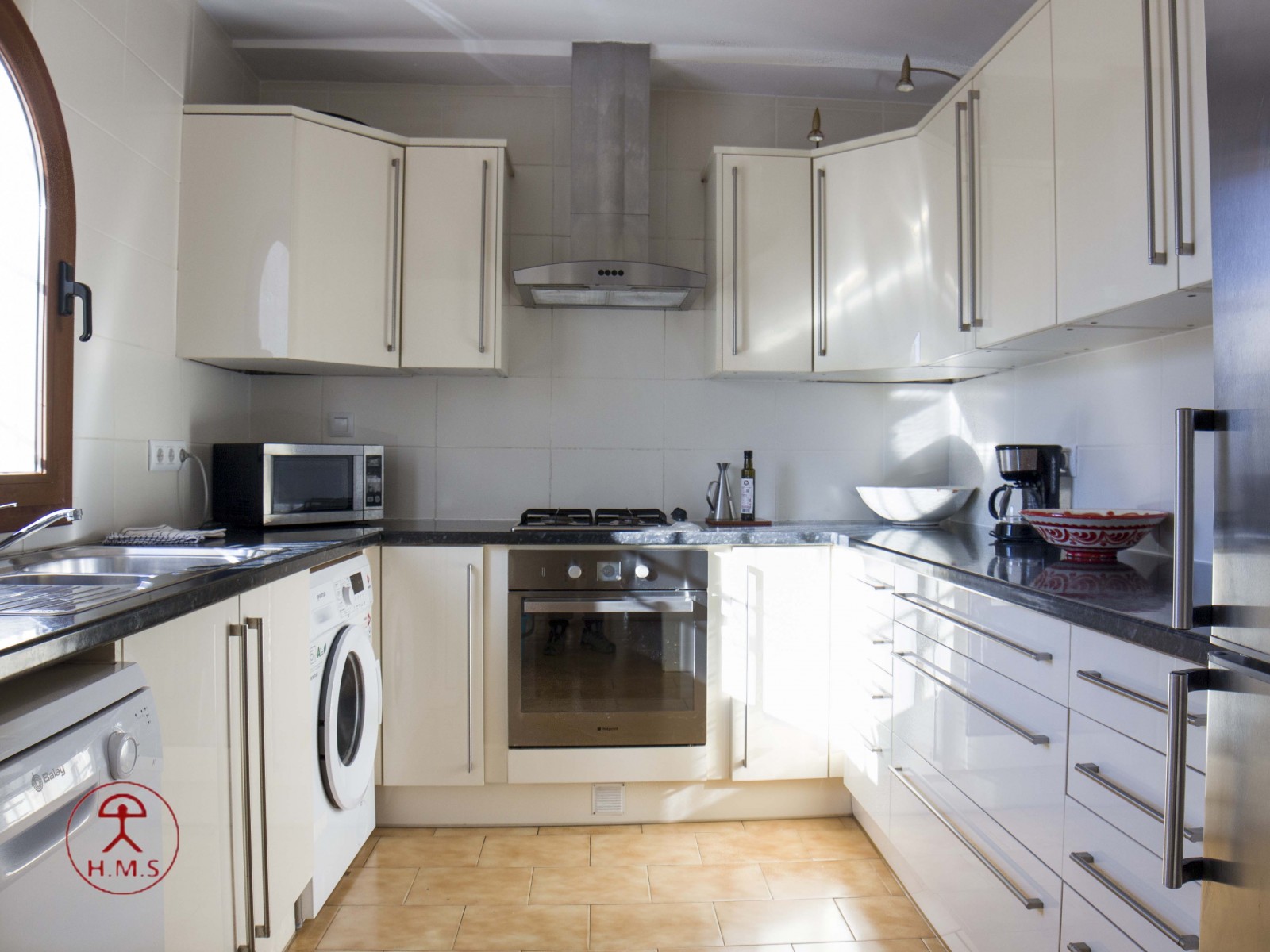 La casa dispone de sabanas y toallas de casa, no de playa, la terraza tiene mesas y sillas, la cocina esta completa de menaje y pequeño electrodomestico, frigo, lavadora,lavavajillas, horno, cafetera, microondas, batidora, plancha y tabla de planchar. Es una casa ideal ya que esta ubicada en una zona tranquila y muy cercana a la playa y al centro, por su orientacion no es calurosa ademas las vistas a la bahia son espectaculares. La piscina es comunitaria asi como la barbacoa. La casa tiene WiFi Gratis. Aire acondiconado en salón y dormitorios.