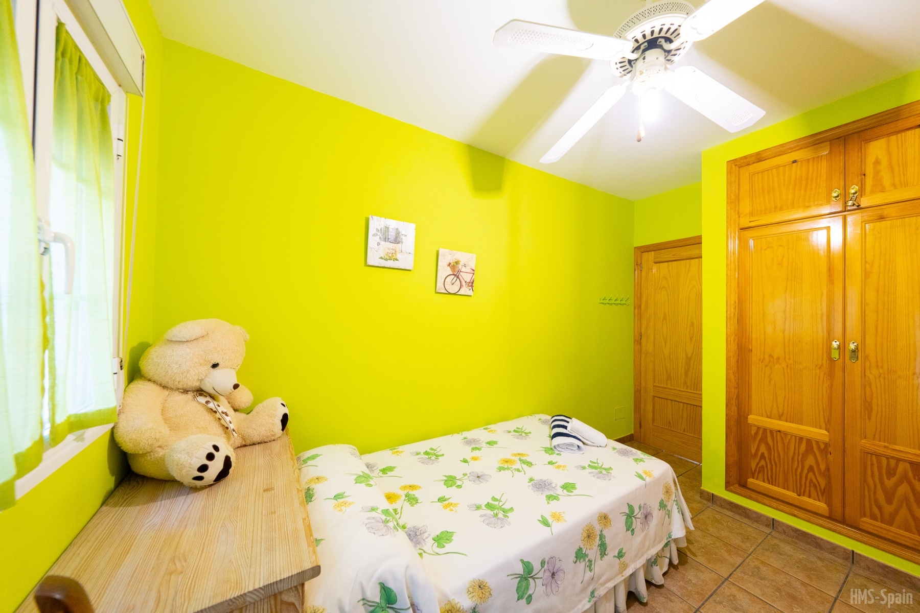Tiene tres dormitorios y Aire Acondicionado y esta situado muy cerca del centro pero en completa tranquilidad.