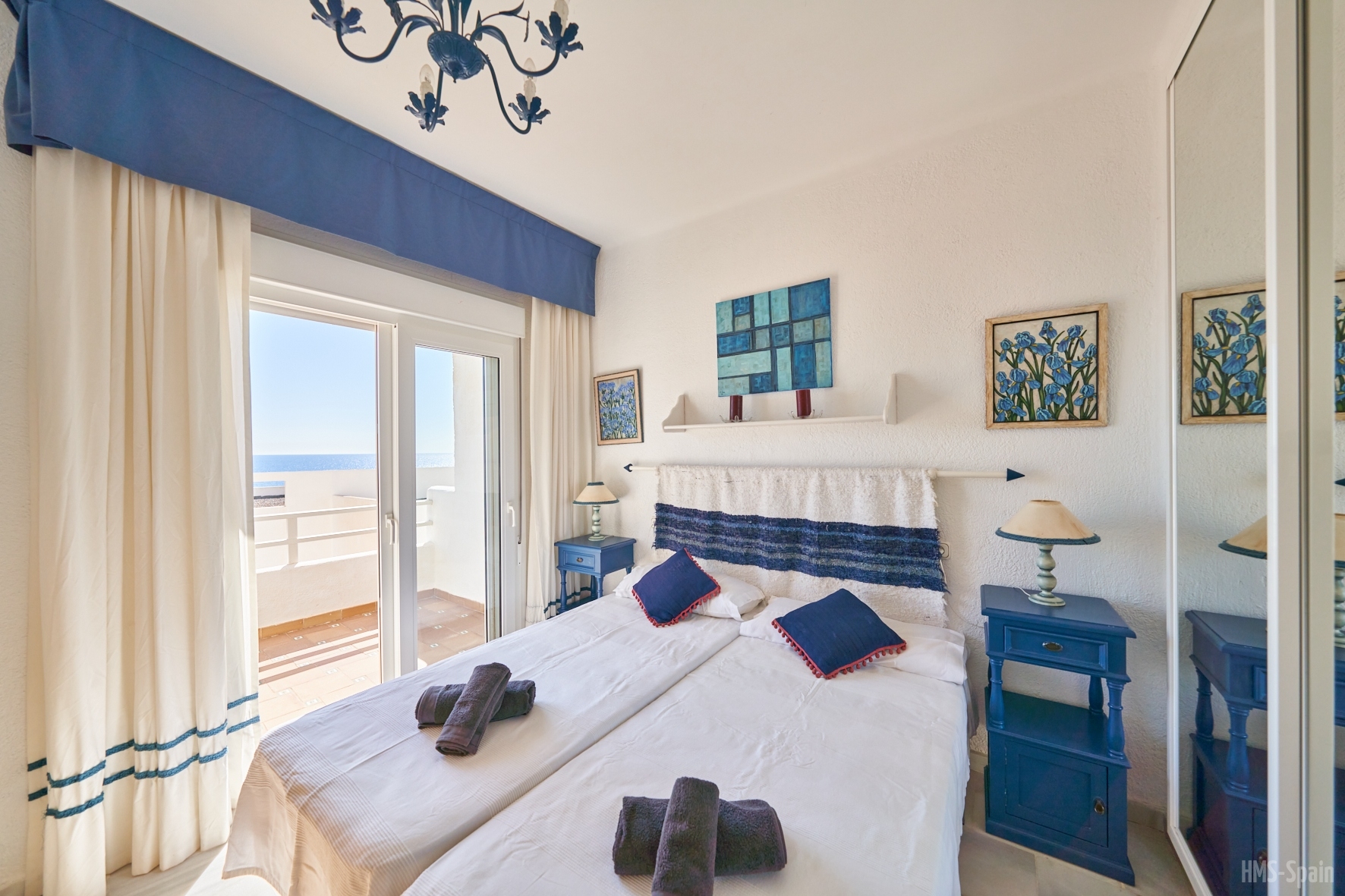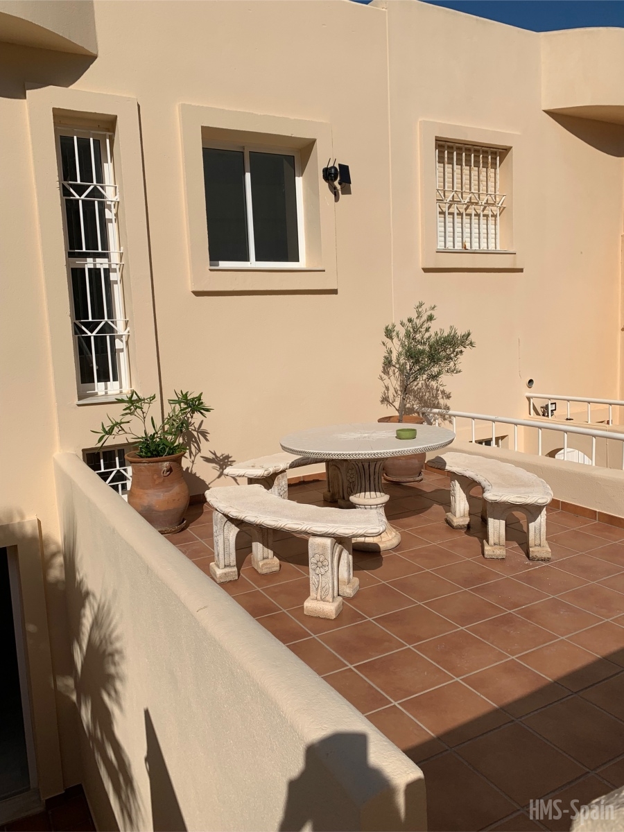 Duplex de dos dormitorios y dos baños, vistas al mar y piscina comunitaria, muy cerca de la playa y a menos de 5 minutos del centro del pueblo.