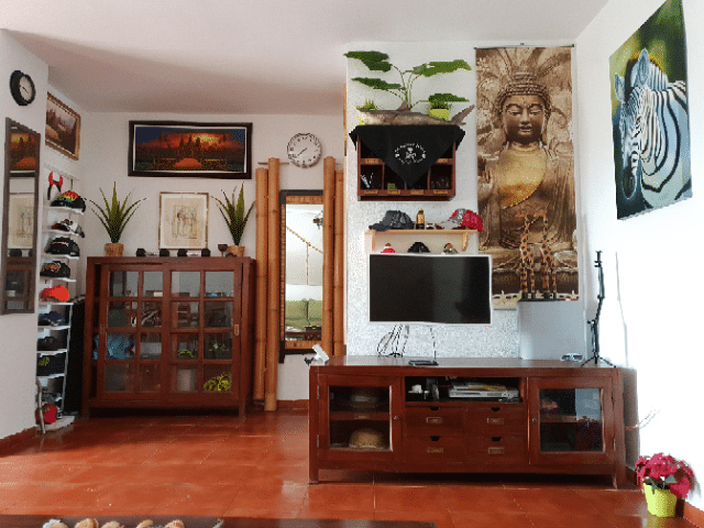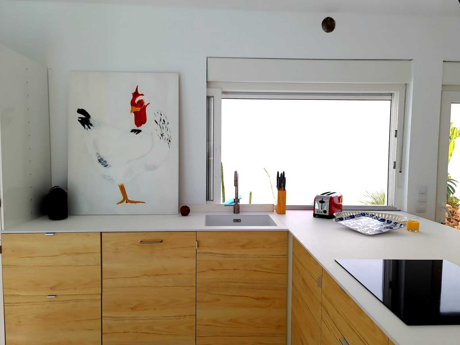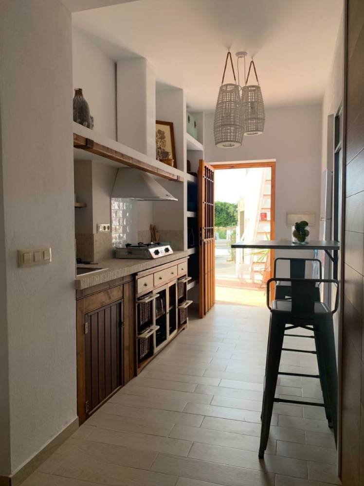 Cuenta con un amplio salón con su Smart TV, ventiladores de techo en todas las habitaciones incluida la cocina y aire acondicionado en las habitaciones. Conexión WiFi, y piscina privada.