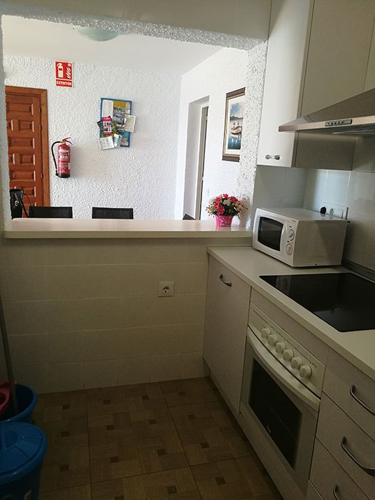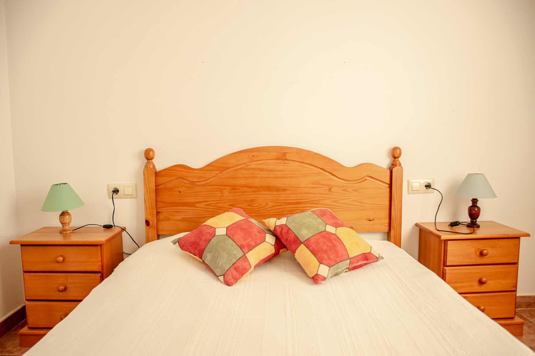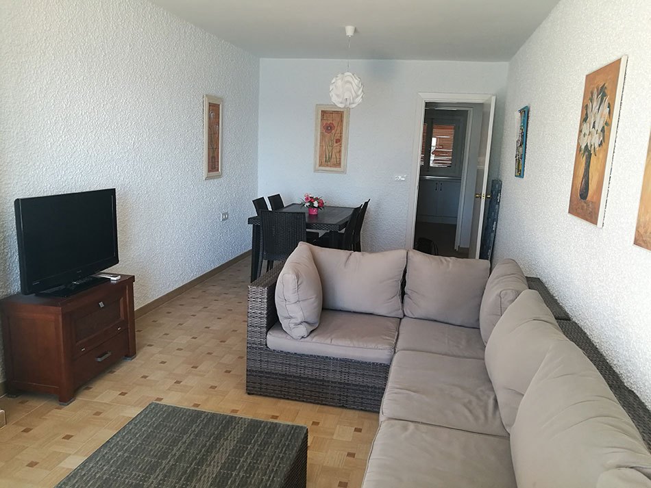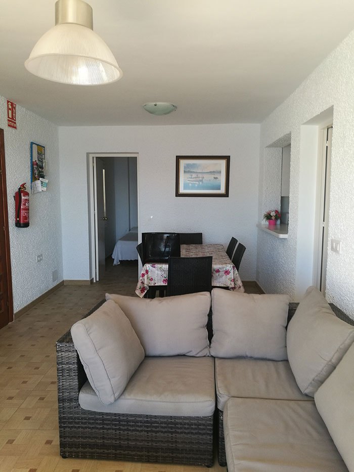 Dispone de un dormitorio con cama de matrimonio y sofá-cama en el salón, comedor, cocina totalmente equipada y un baño con plato de ducha. Aire acondicionado en el salón y ventilador en el salón y el dormitorio. Apartamento equipado con todo lo necesario para disfrutar de unas fantásticas vaciones sin necesidad de coger el coche.