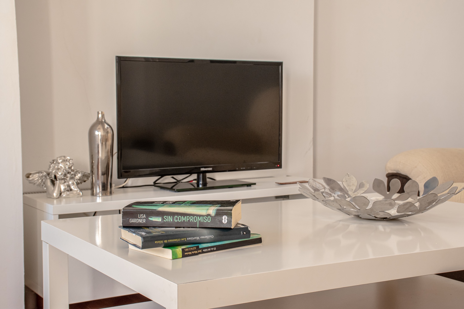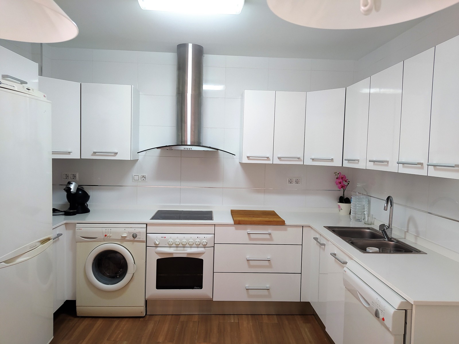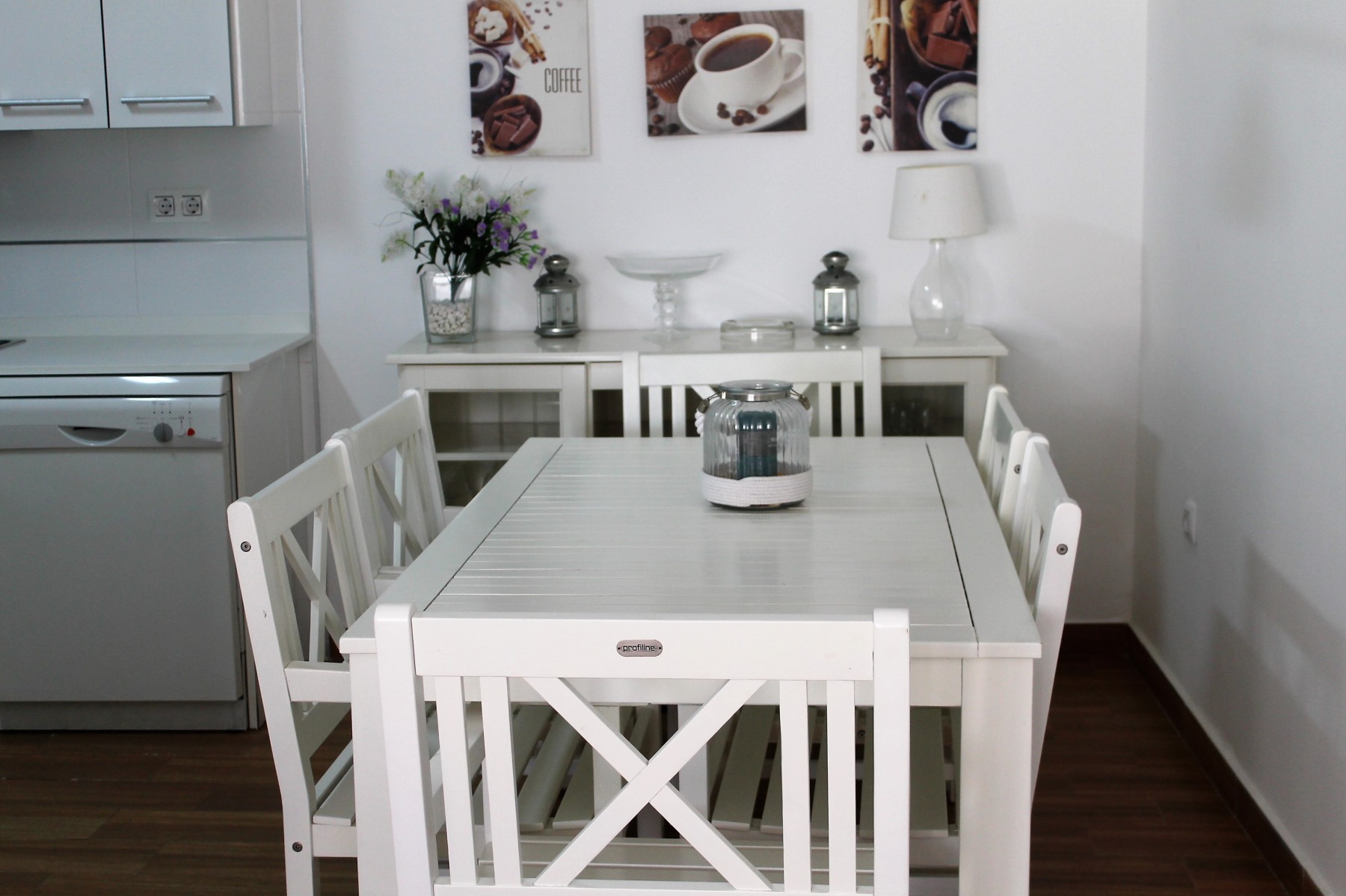 Dispone de un dormitorio con cama de matrimonio y sofá-cama en el salón, comedor, cocina totalmente equipada y un baño con plato de ducha. Aire acondicionado en el salón y ventilador en el salón y el dormitorio. Apartamento equipado con todo lo necesario para disfrutar de unas fantásticas vaciones sin necesidad de coger el coche.