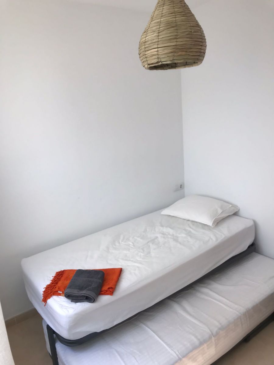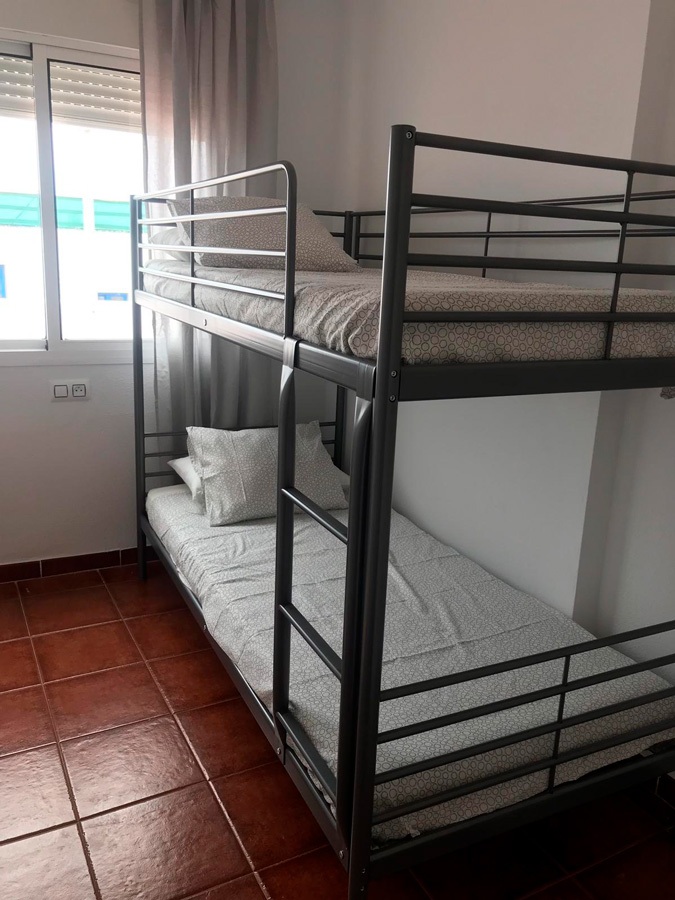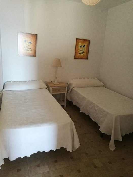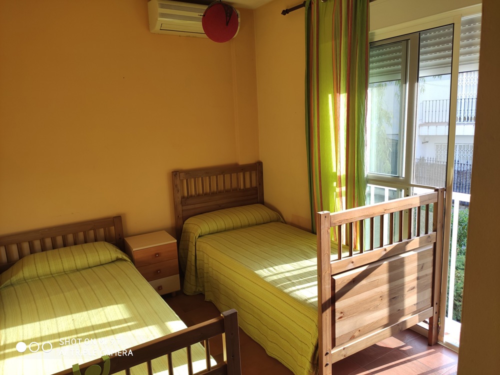 Dispone de dos dormitorios, uno de ellos con cama de matrimonio y otro con dos camas de 90cm salón-comedor, cocina y un baño. Aire acondicionado en el salón.