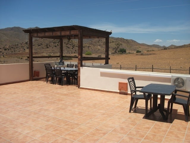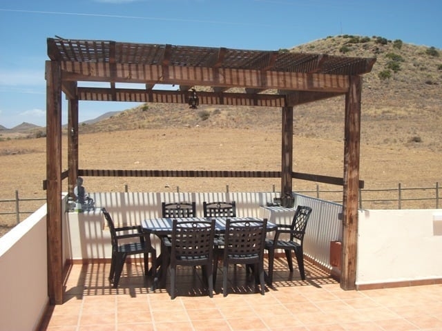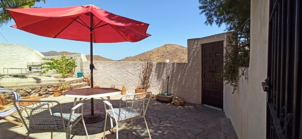 Casita tranquila con piscina en zona rural, escenario de varios rodajes de spaguetti western, donde pasará unos días de relax en un entorno muy tranquilo. Dispone de un dormitorio con cama doble y un sofá cama en el salón, ideal para una pareja con dos niños o 3 adultos. Dispone de Aire Acondicionado en el salón.