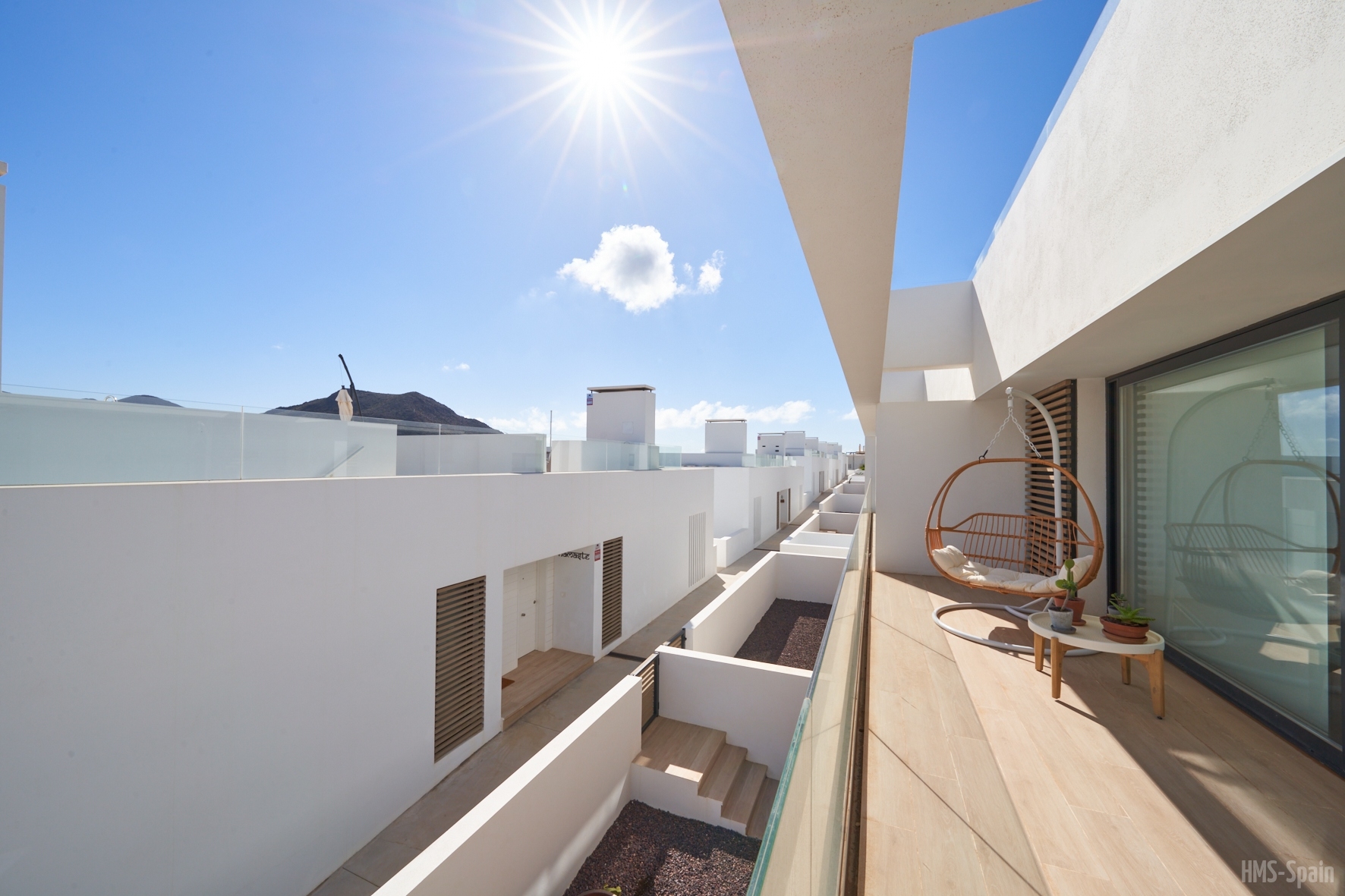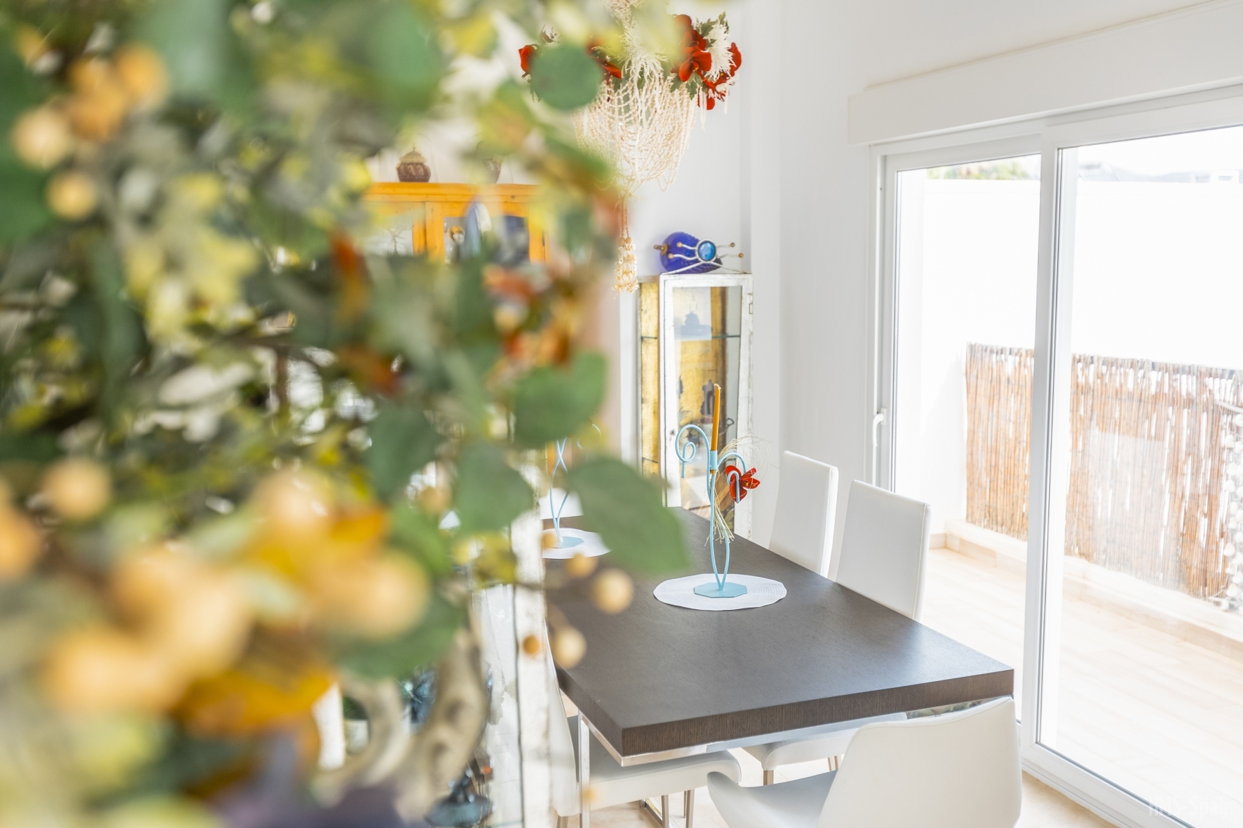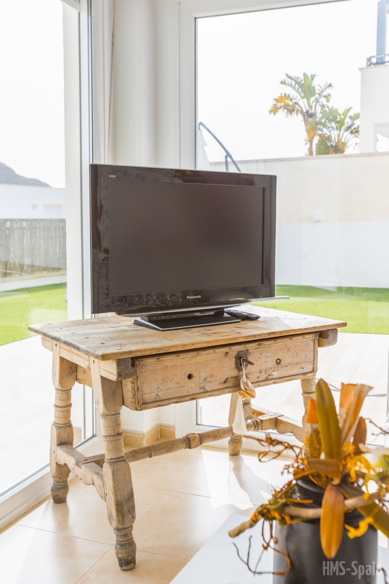 Preciosa casa muy equipada de obra nueva ubicada en una zona tranquila de San José ideal para pasar unas vacaciones en familia. 3 dormitorios, 2 baños y un aseo, plaza de garaje, jardÃn, terraza y solárium con barbacoa. Urbanización con piscina y zonas comunitarias.