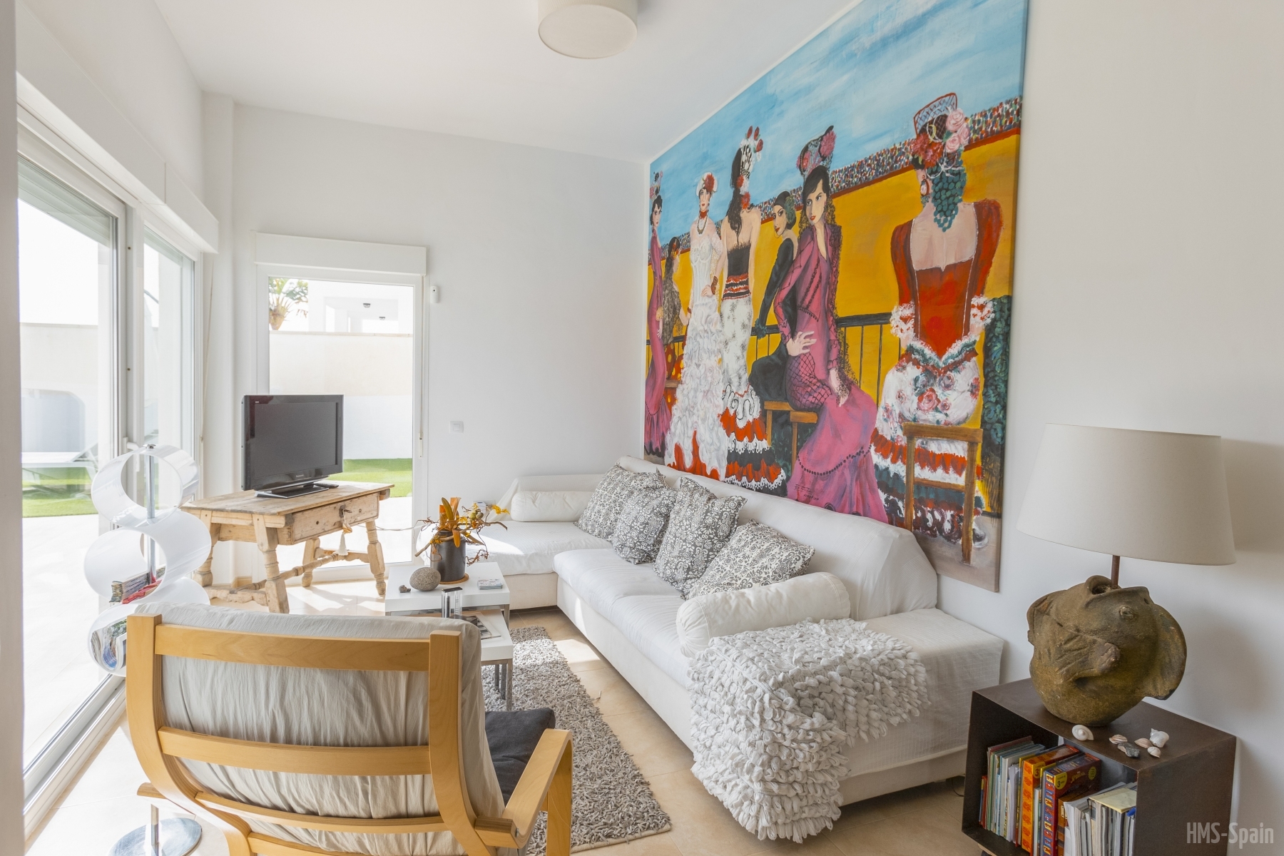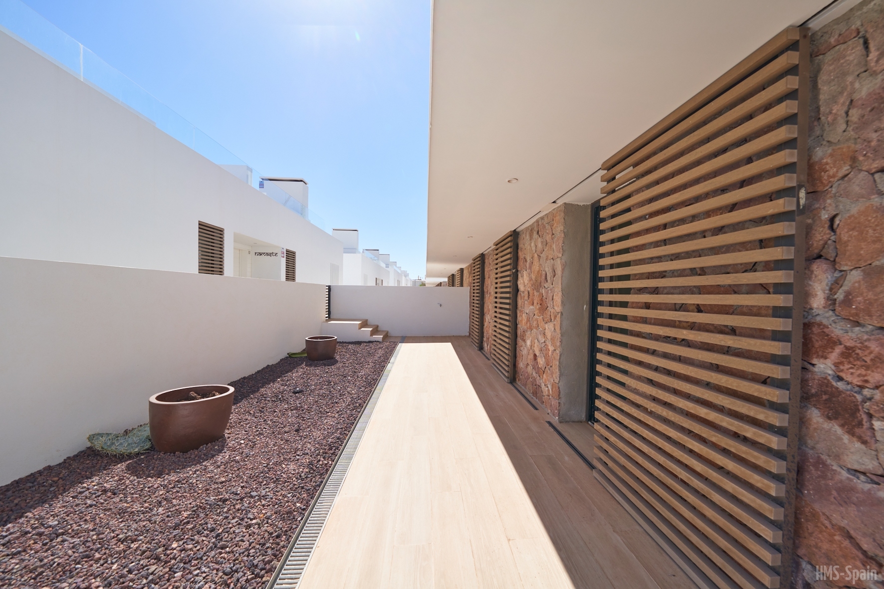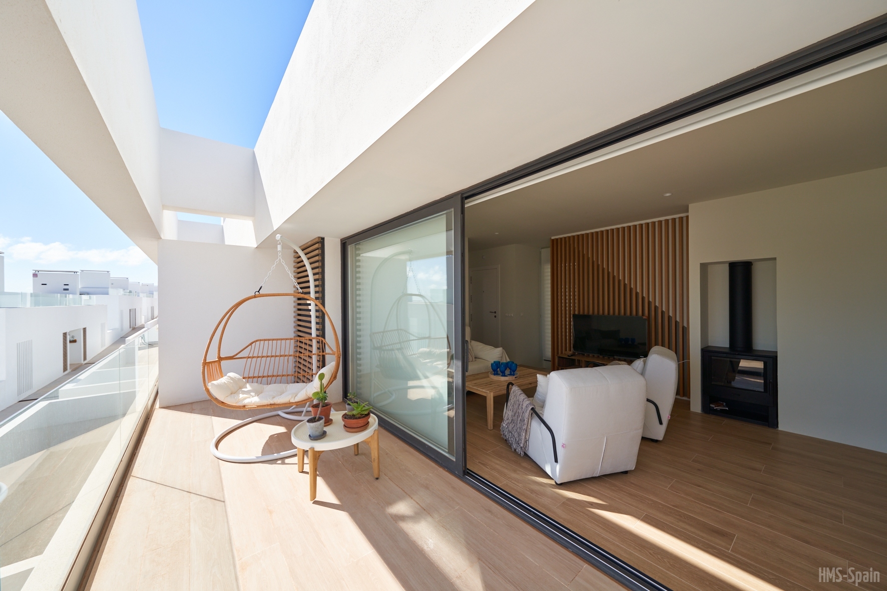 Preciosa casa muy equipada de obra nueva ubicada en una zona tranquila de San José ideal para pasar unas vacaciones en familia. 3 dormitorios, 2 baños y un aseo, plaza de garaje, jardÃn, terraza y solárium con barbacoa. Urbanización con piscina y zonas comunitarias.