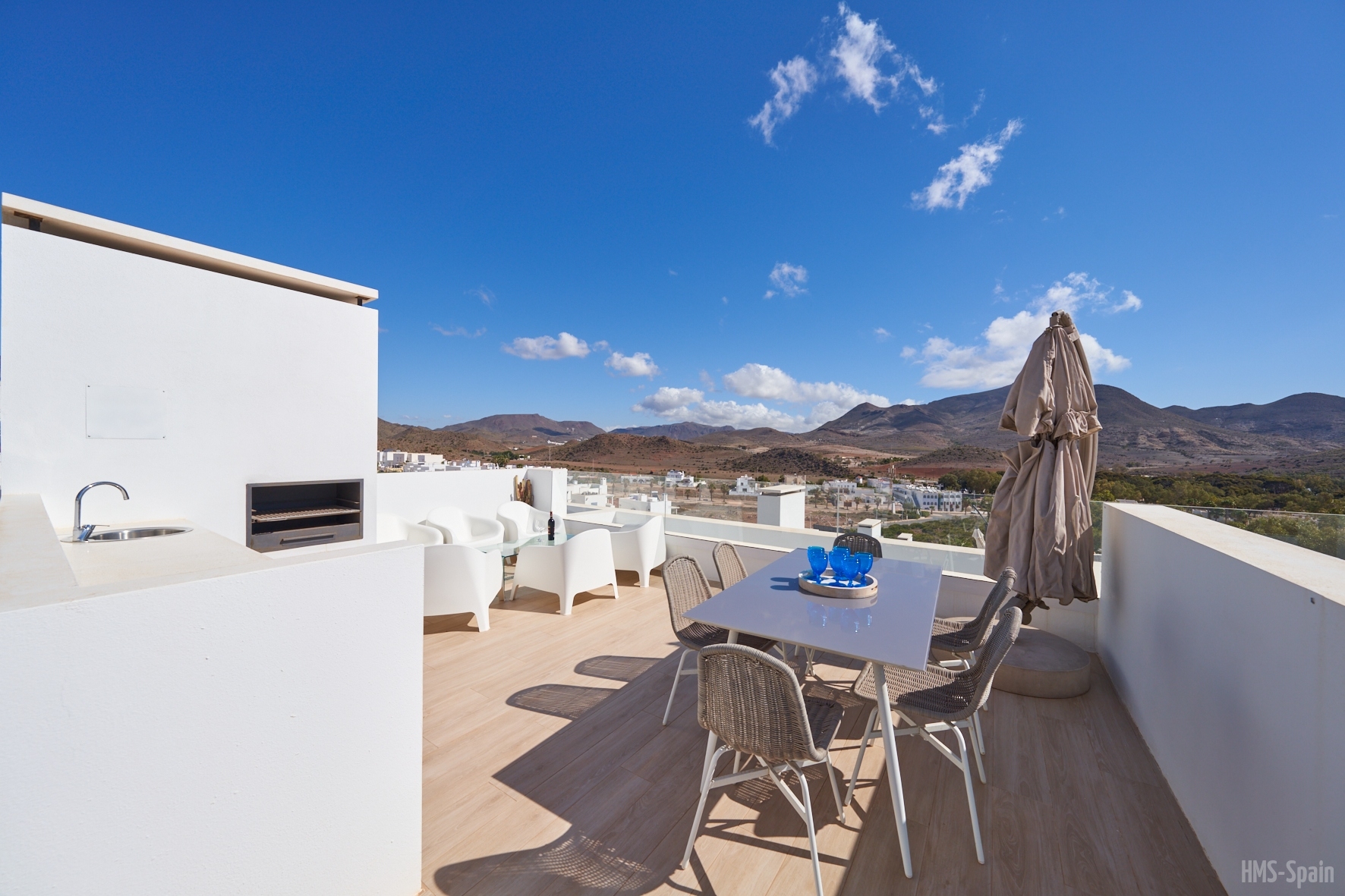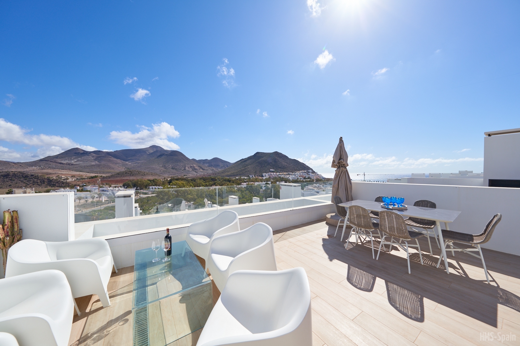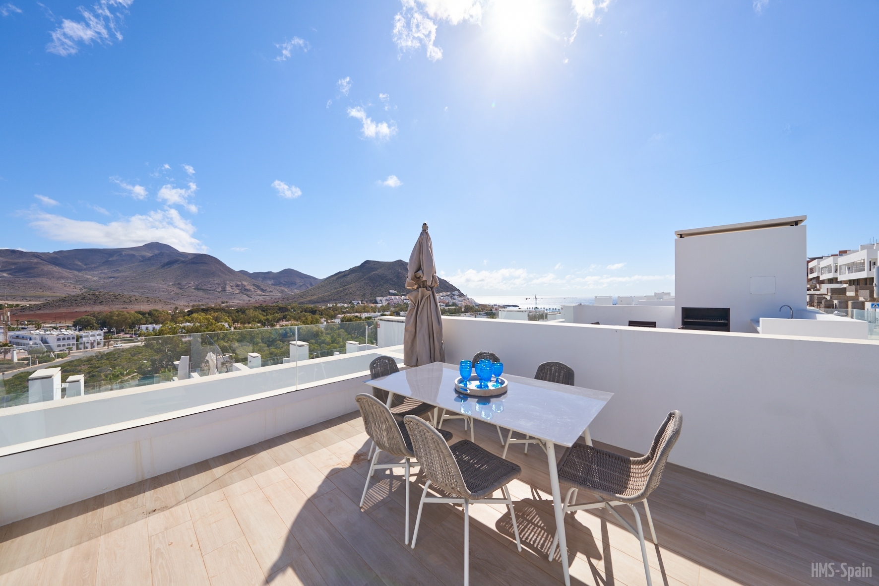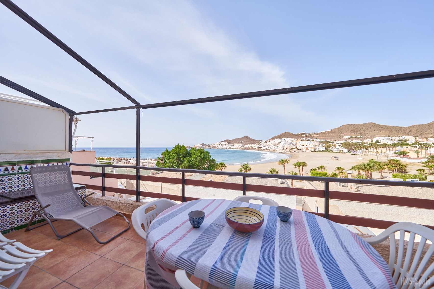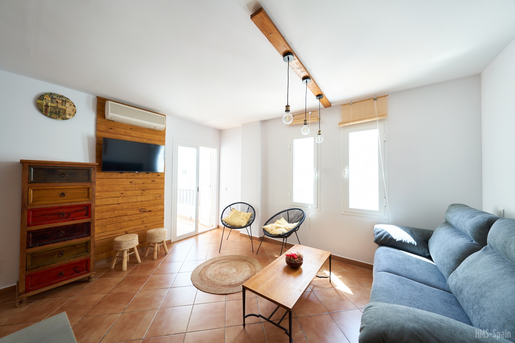 Amplio dúplex con dos dormitorios y dos baños en San José. Dispone de cocina totalmente equipada, Aire Acondicionado en salón y terraza. Muy cerca de la entrada a las playas de Los Genoveses y Mónsul y a 5 minutos a pie del centro del pueblo. Ideal para pasar unas agradables vacaciones en familia.