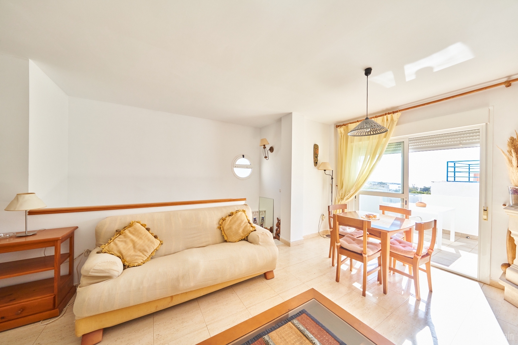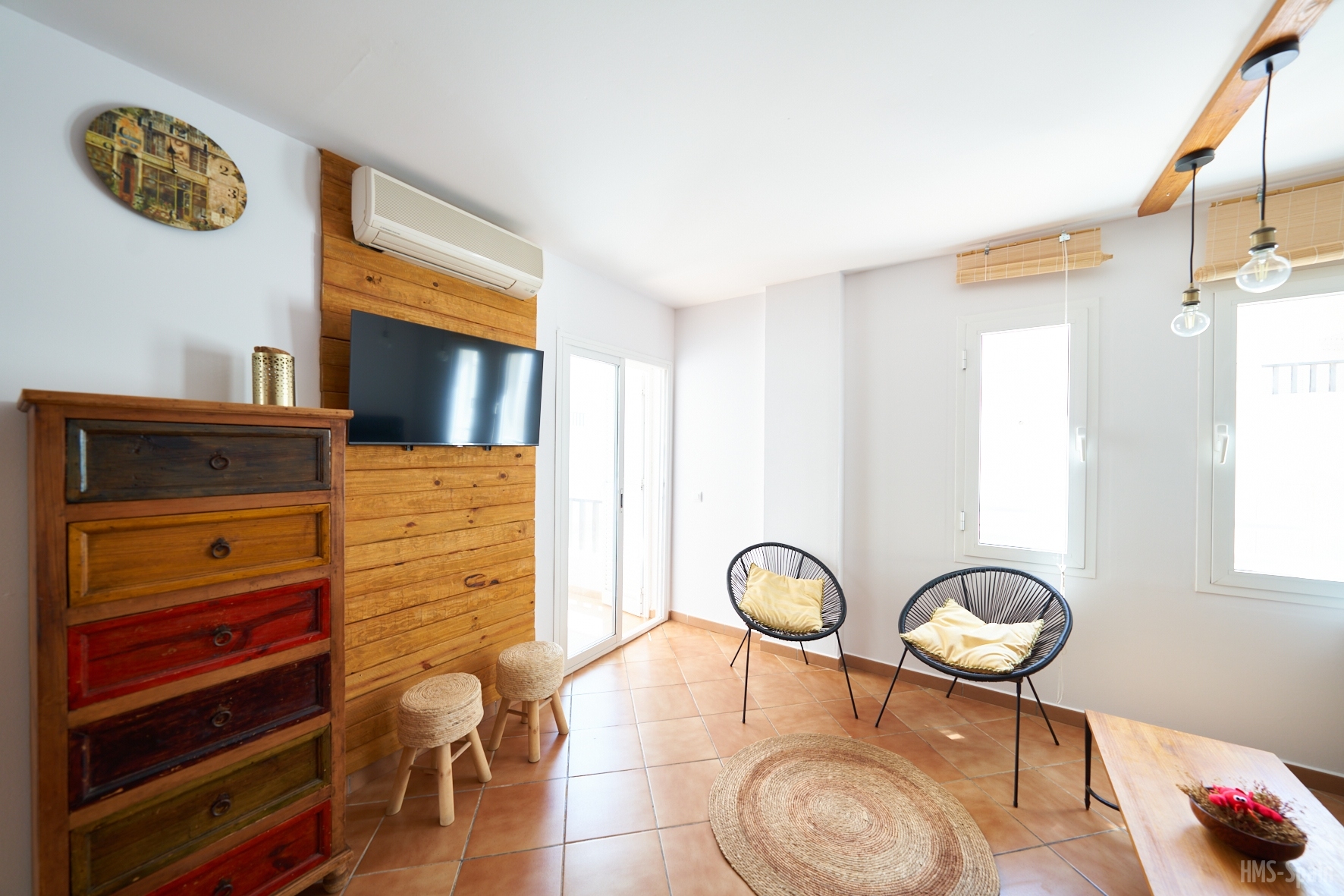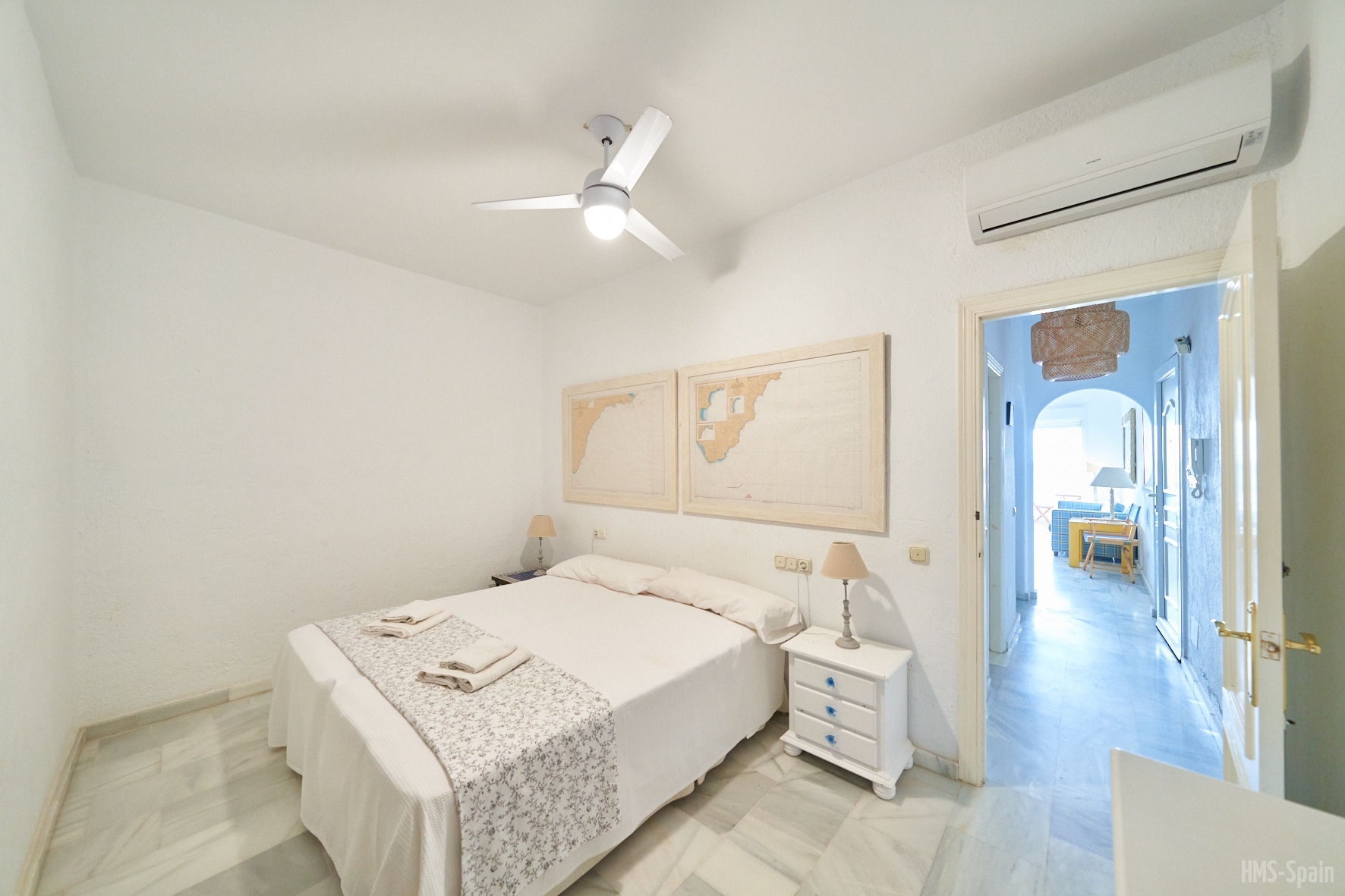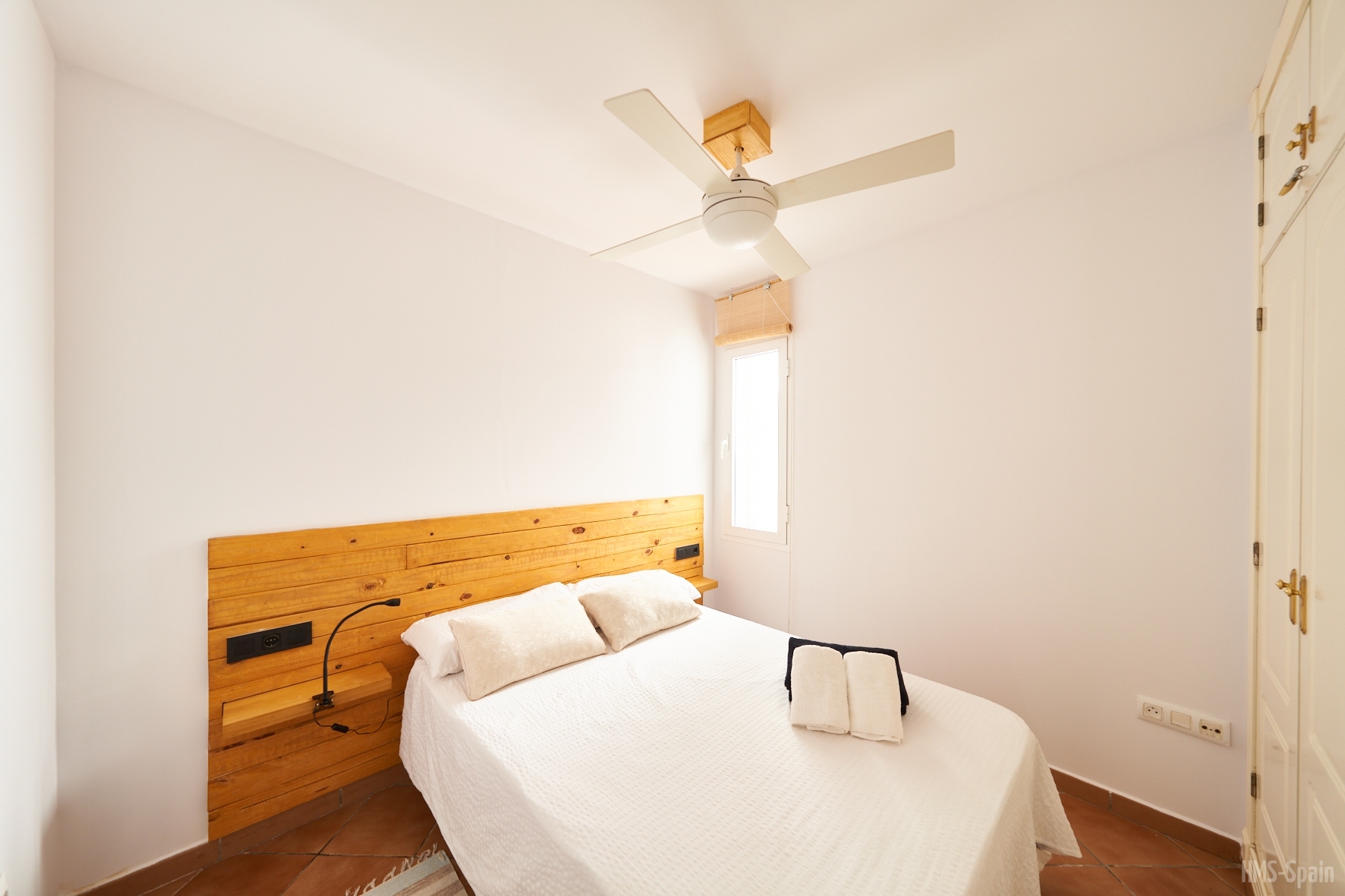 Acogedor apartamento a 2 minutos a pie de la playa y el puerto y 3 minutos al centro de San José. Dispone de dos dormitorios, un baño, cocina totalmente equipada, salón-comedor con A/A, terraza y piscina comunitaria. Plaza de garaje disponible.