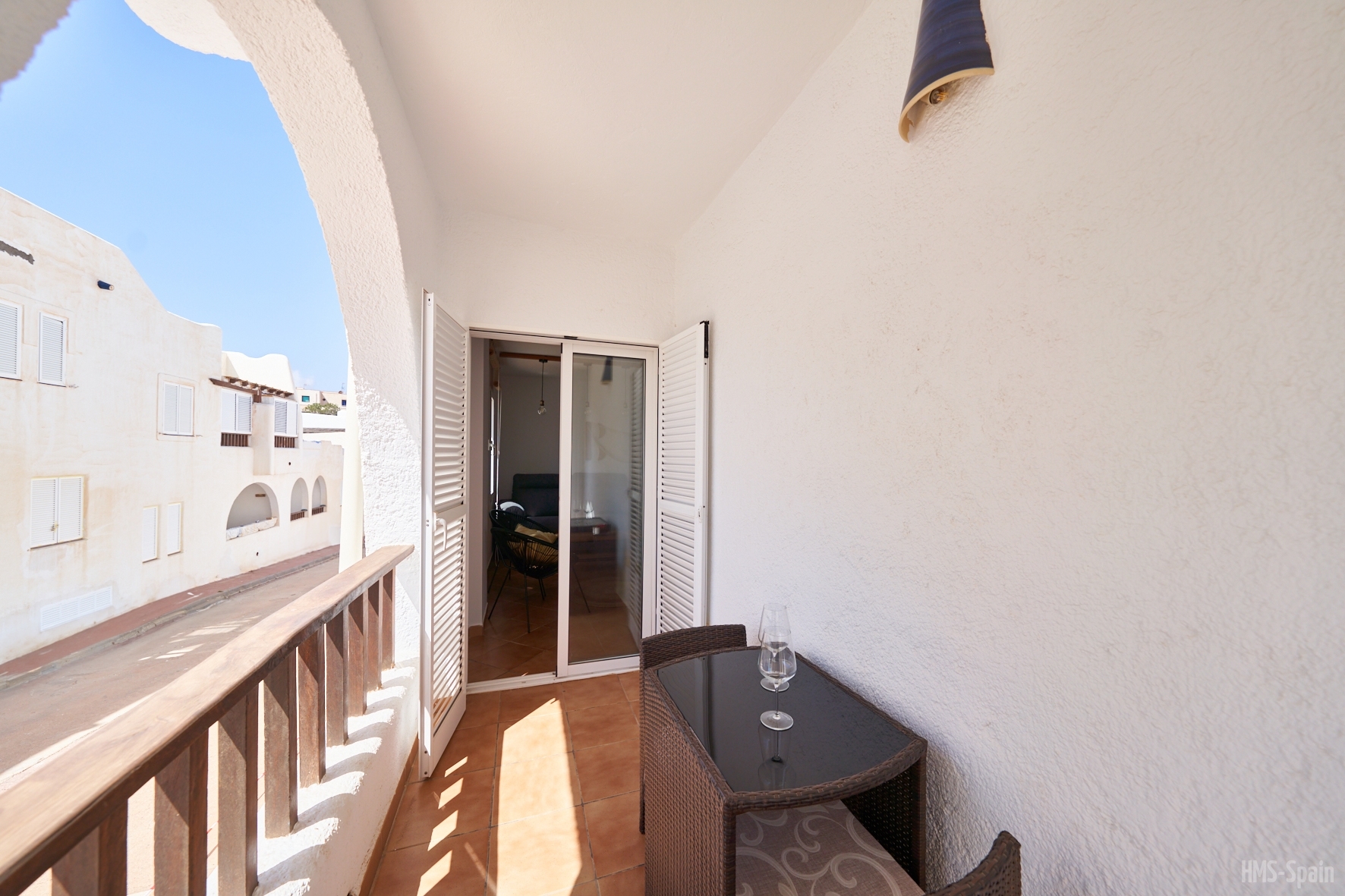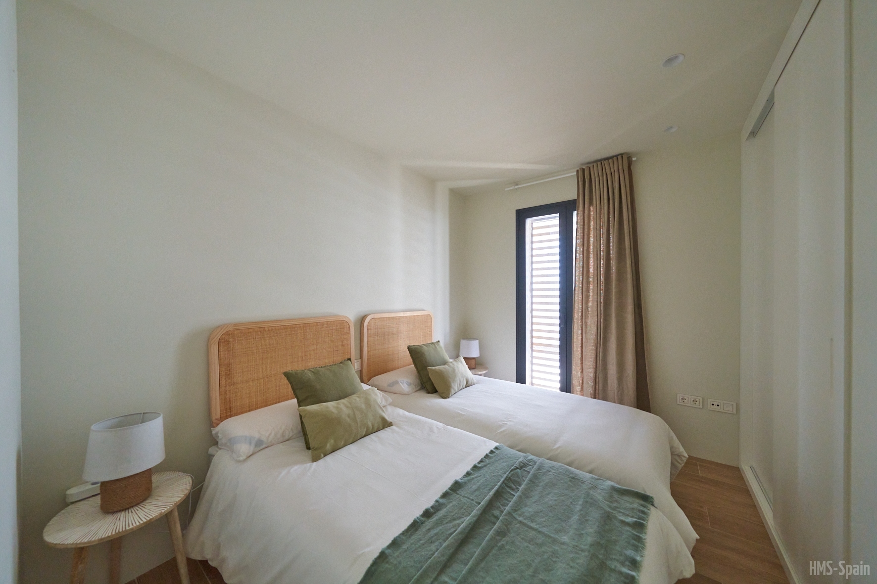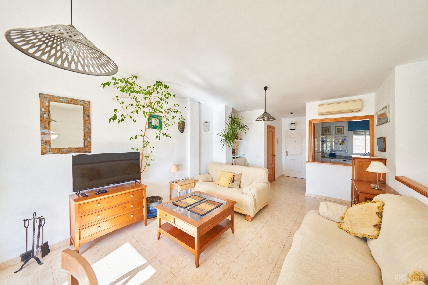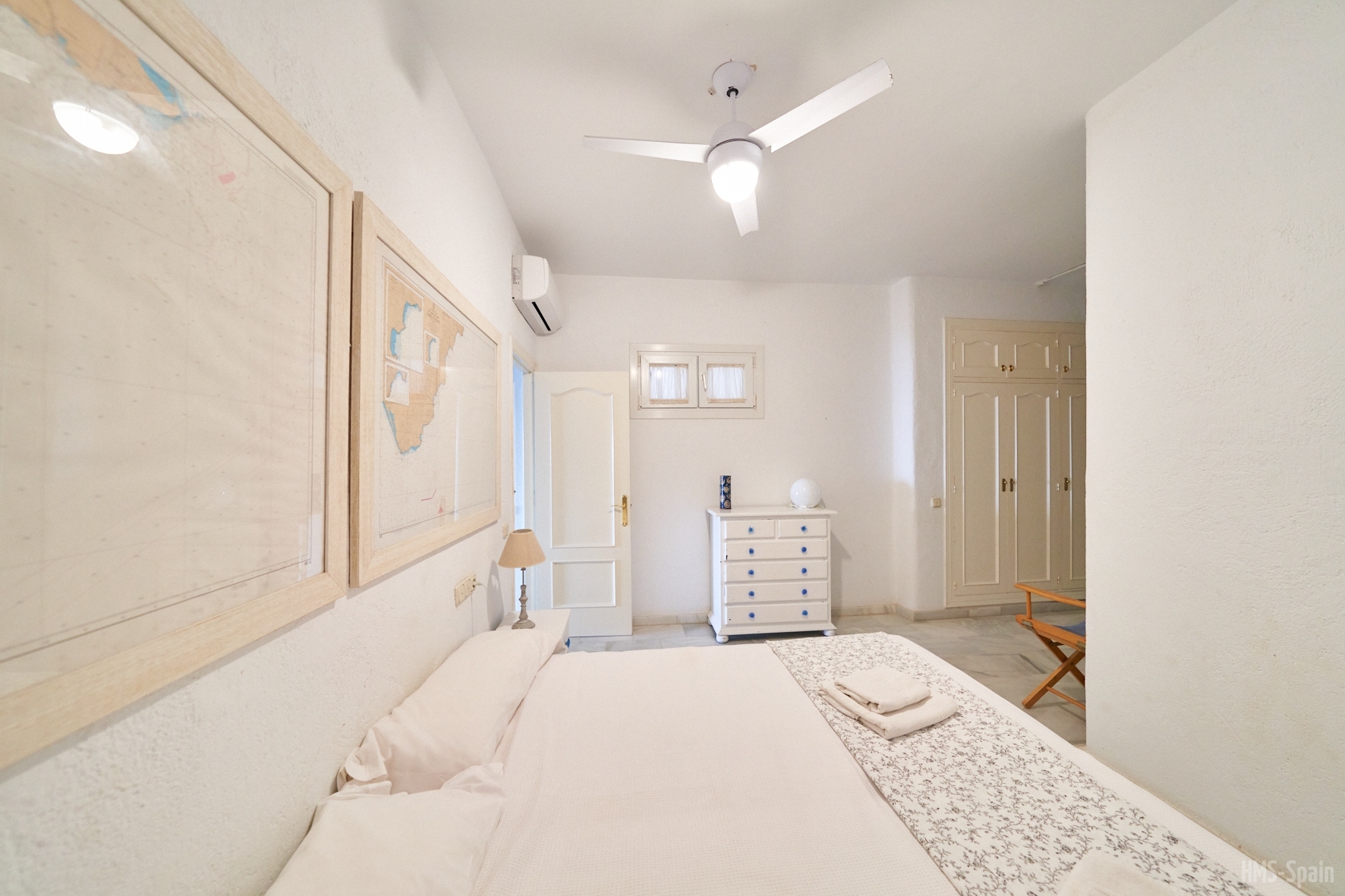 Acogedor apartamento a 2 minutos a pie de la playa y el puerto y 3 minutos al centro de San José. Dispone de dos dormitorios, un baño, cocina totalmente equipada, salón-comedor con A/A, terraza y piscina comunitaria. Plaza de garaje disponible.