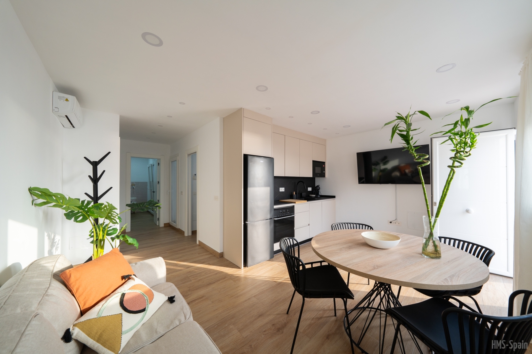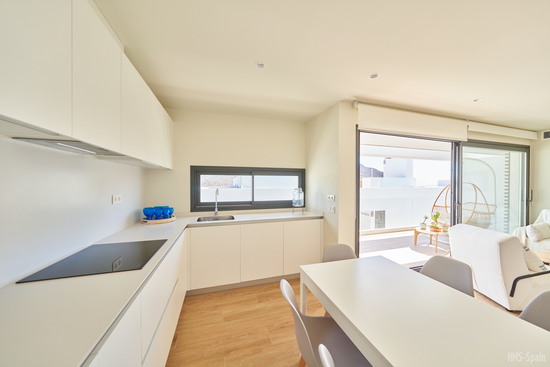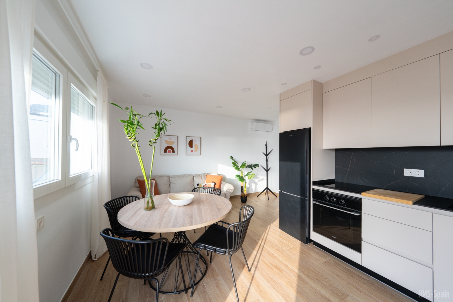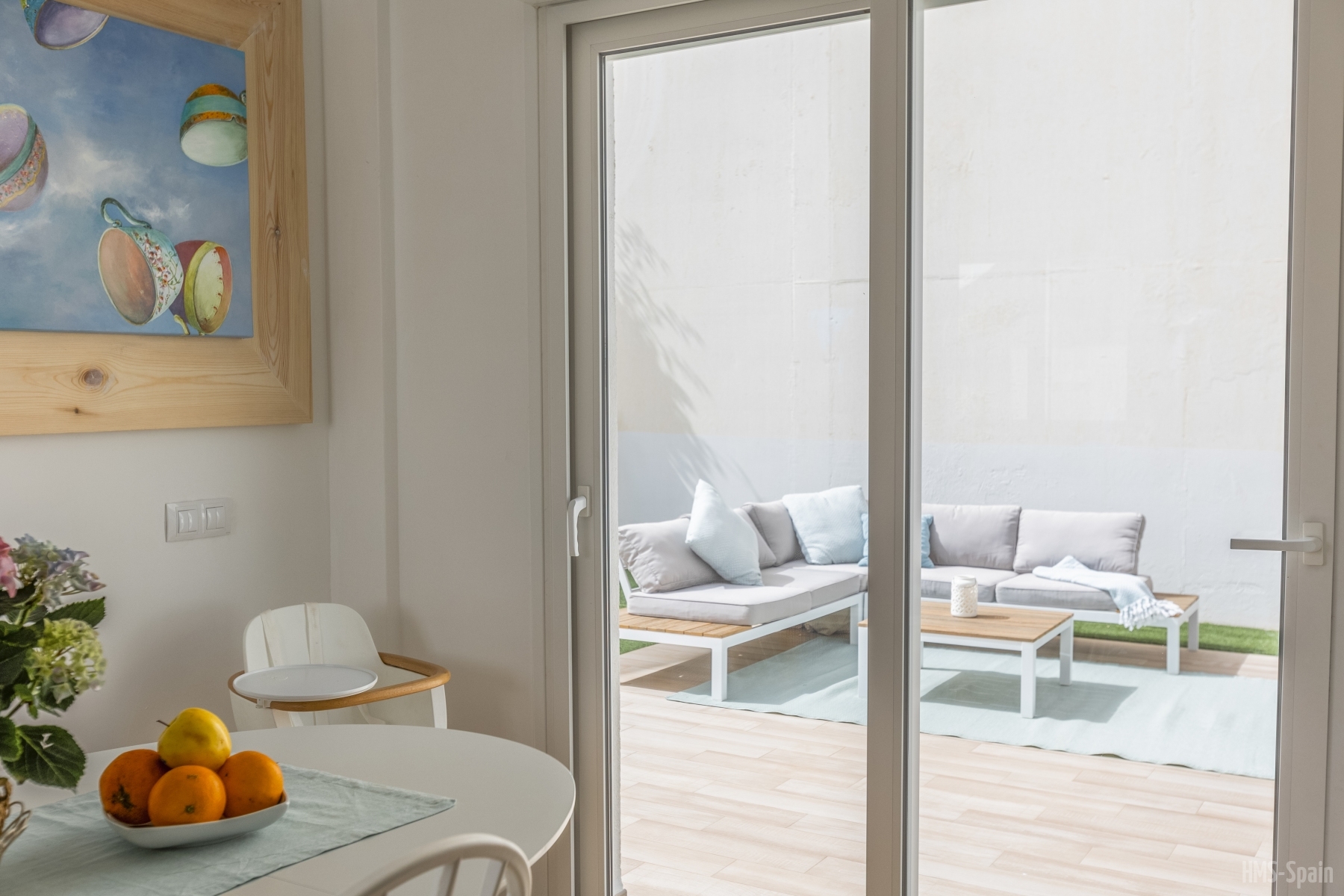 Precioso apartamento recién reformado en San José al lado de la playa. Dispone de 2 dormitorios, salón-cocina, baño y solárium con terraza y barbacoa. Ideal para pasar unas estupendas vacaciones en familia. A 50m a pie de la playa de La Calilla.