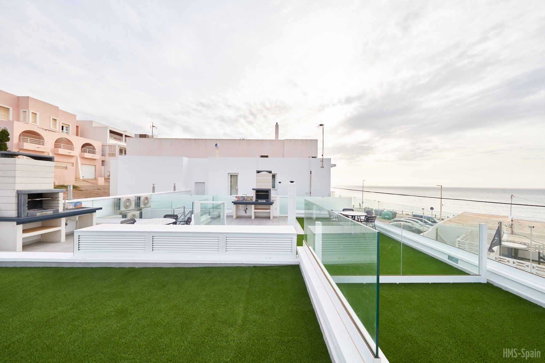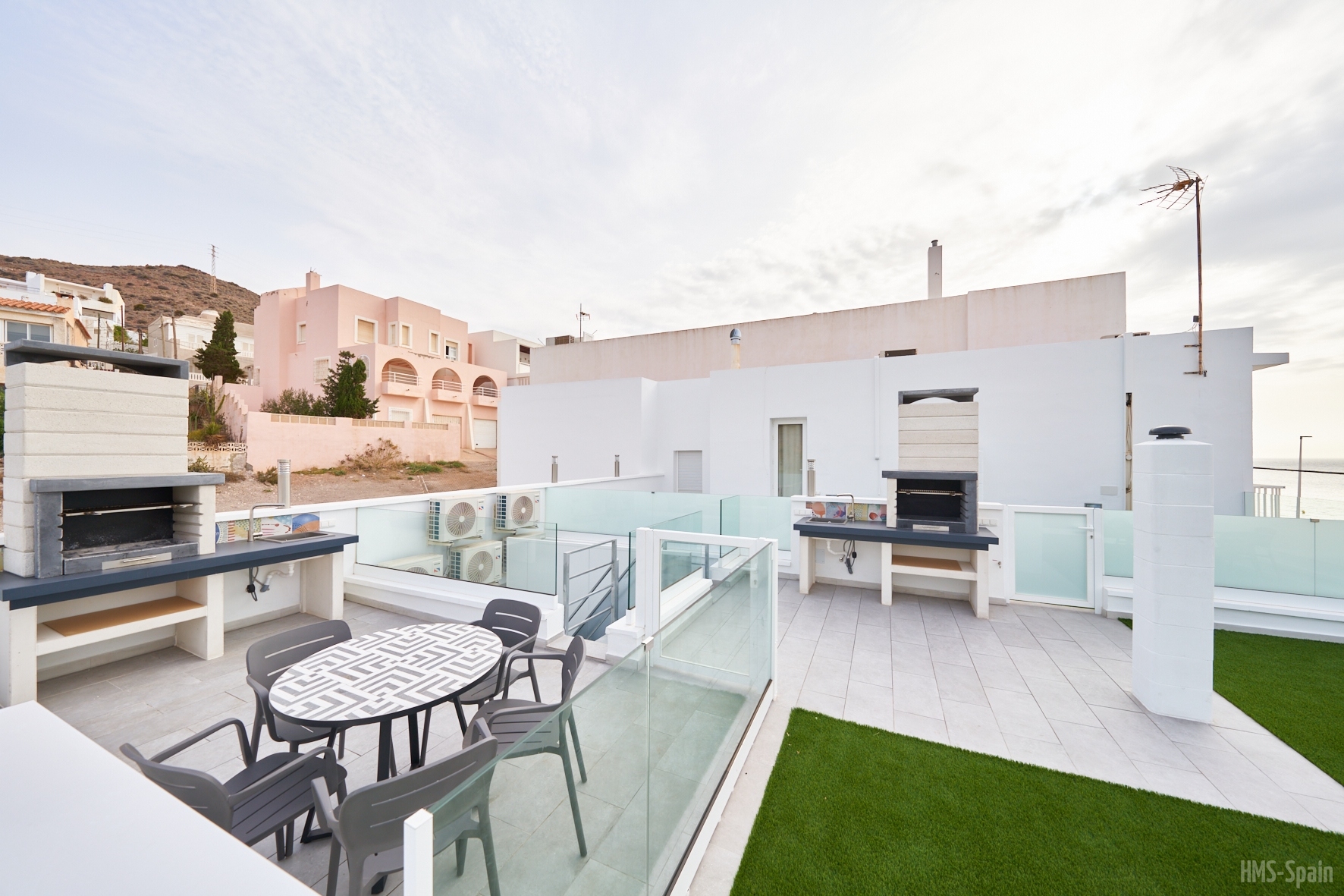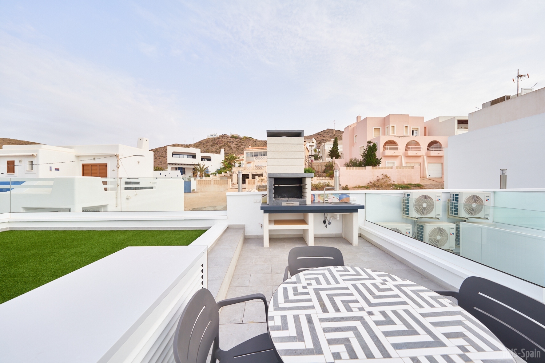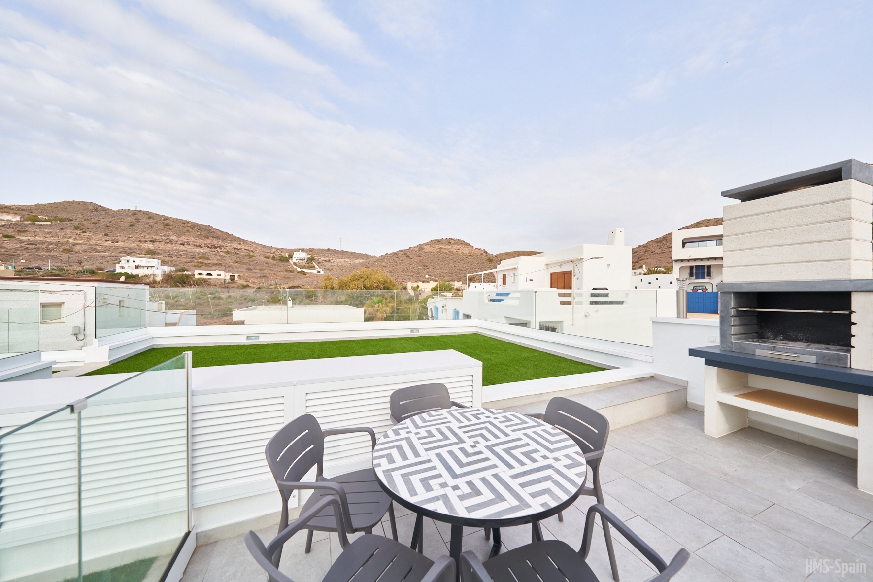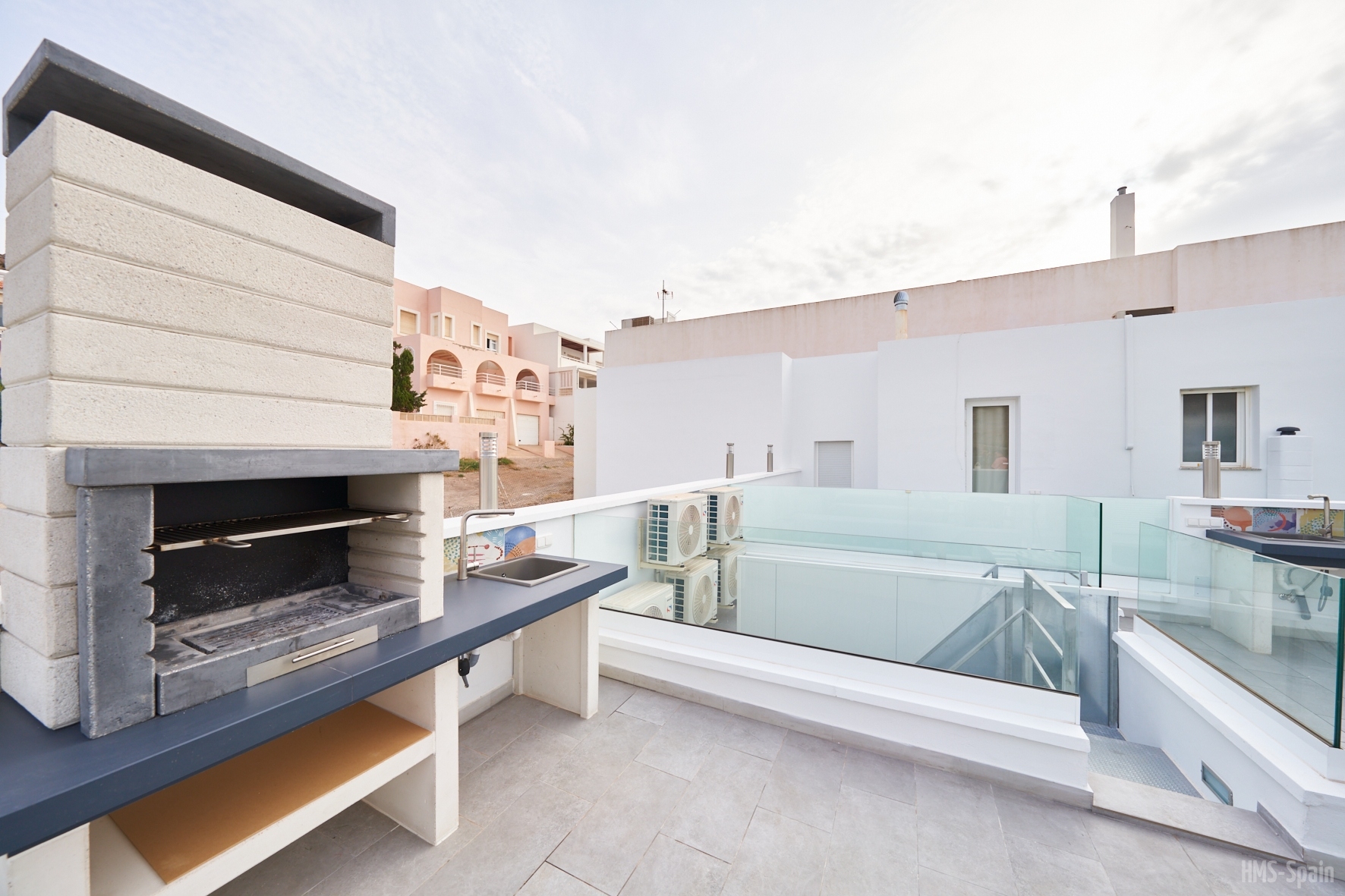 Estupenda vivienda al lado de la playa de San José. Dispone de 4 dormitorios con aire acondicionado en dos dormitorios y ventilador de techo en los otros dos, 2 baños, cocina totalmente equipada, salón-comedor con A/A, barbacoa y gran terraza. WIFI GRATIS. A tan solo 20 metros de la playa. Ideal para pasar unas magnÃficas vacaciones en familia o con amigos.