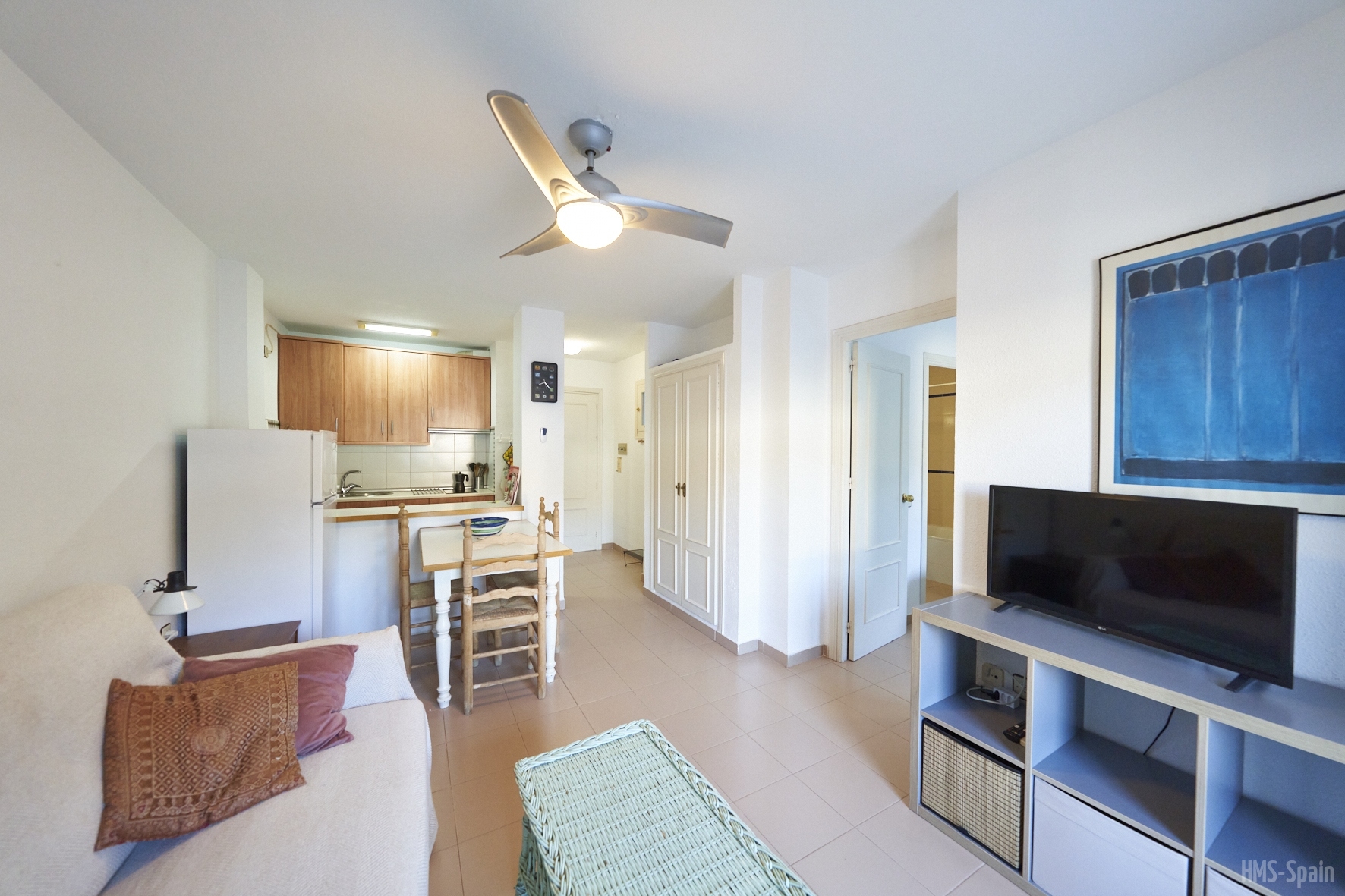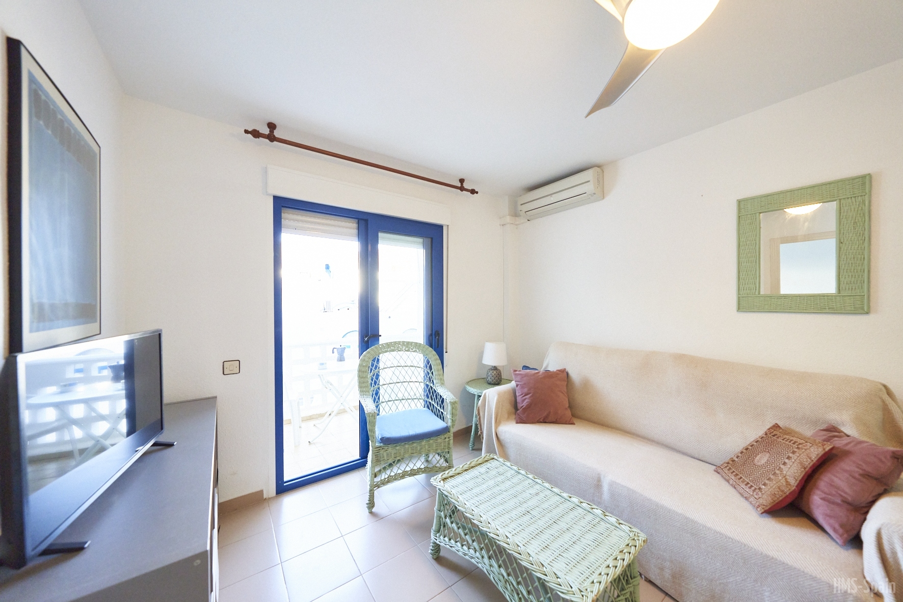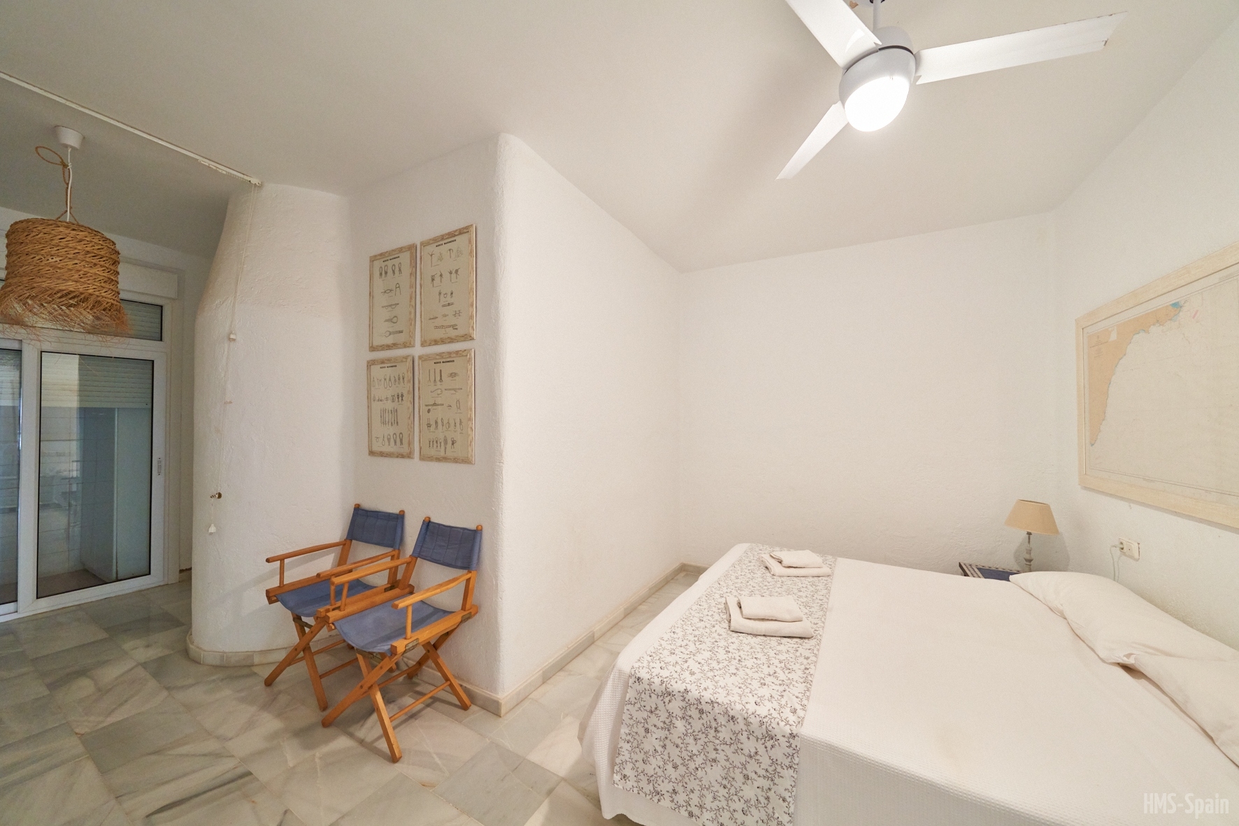 1 dormitorio, 1 baño, terraza con vistas al mar y piscina comunitaria. Máximo 3 adultos o 2 adultos y 2 niños.