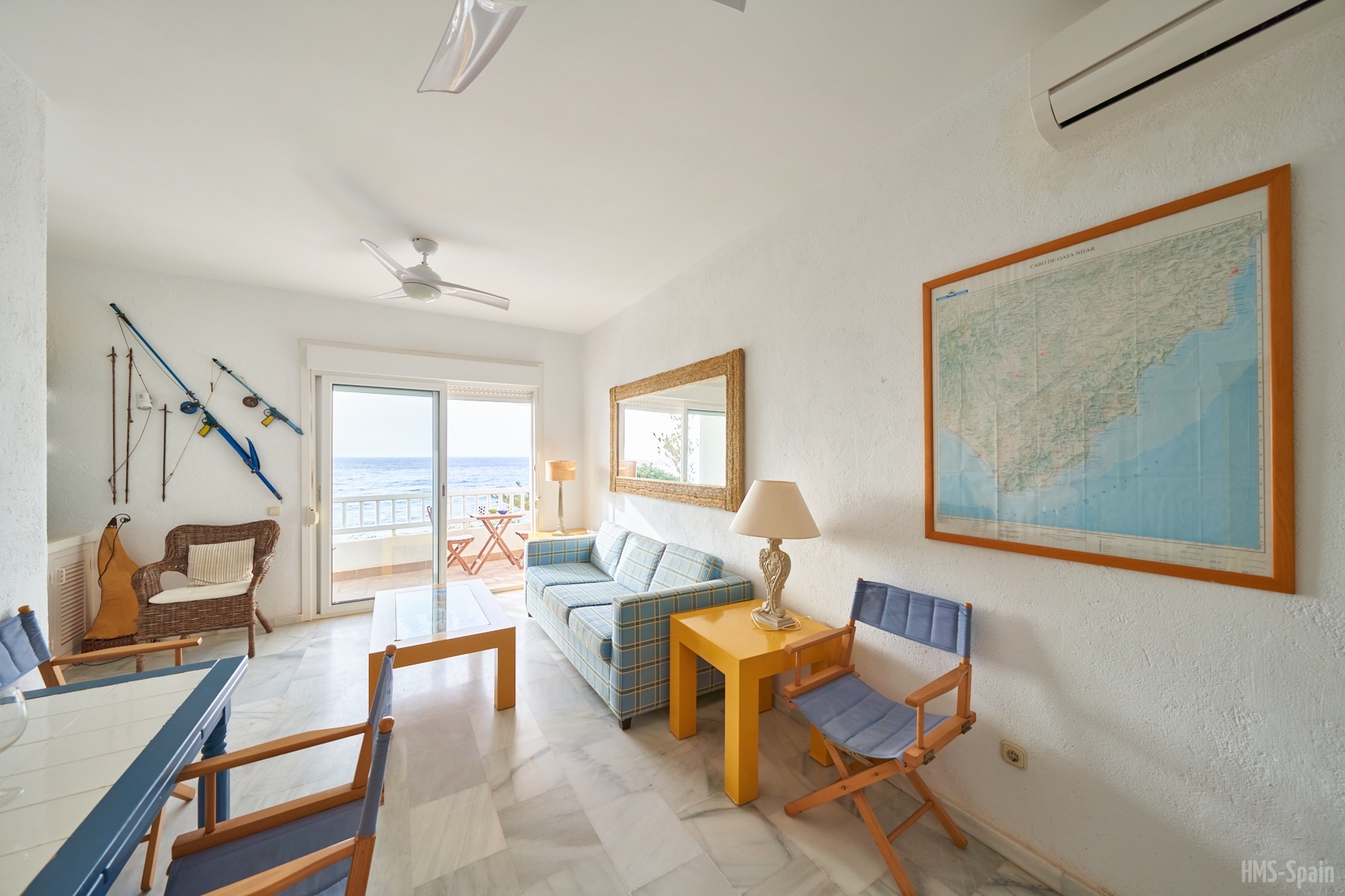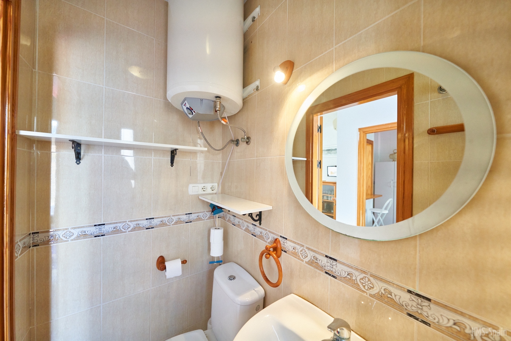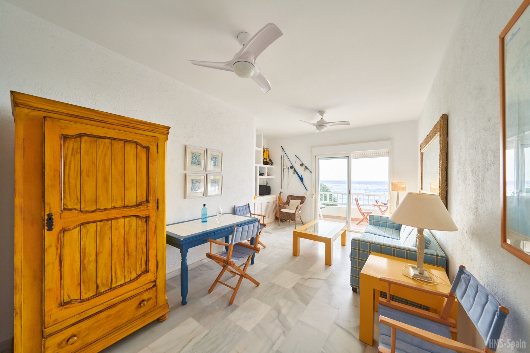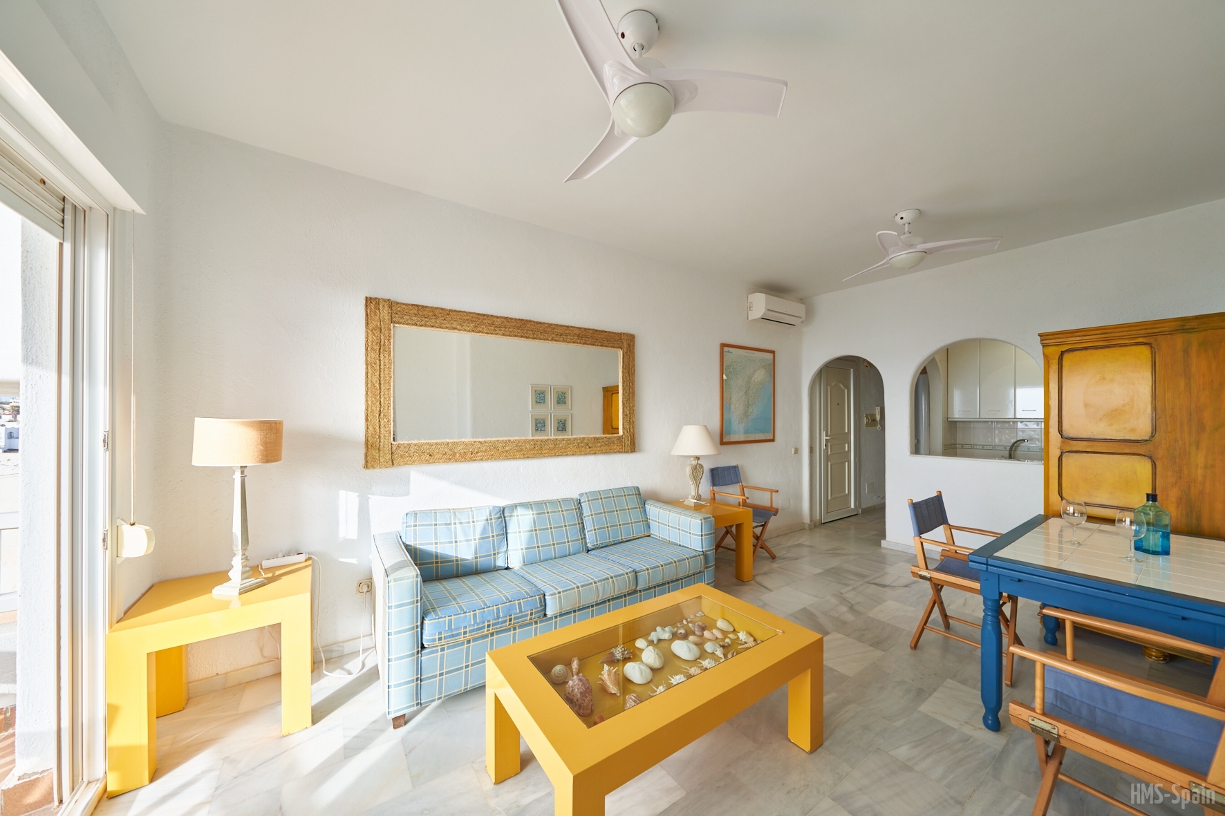 1 dormitorio, 1 baño, terraza con vistas al mar y piscina comunitaria. Máximo 3 adultos o 2 adultos y 2 niños.