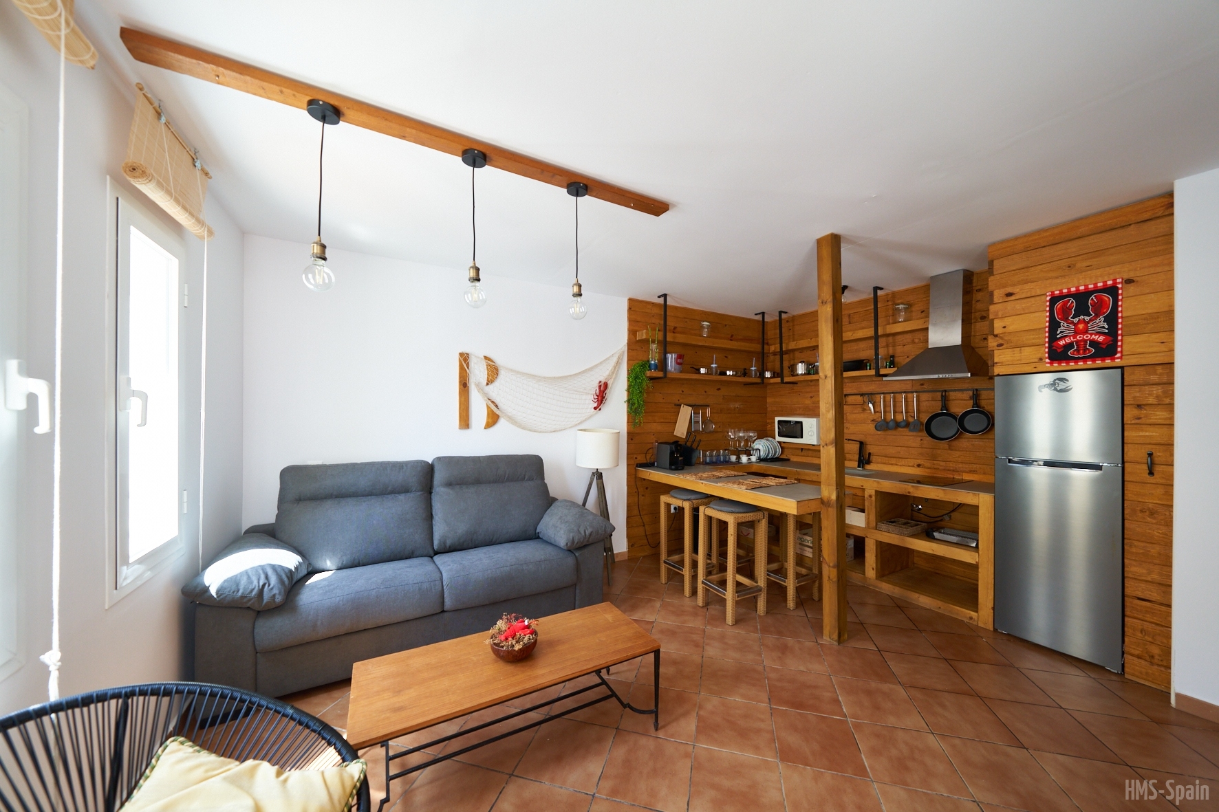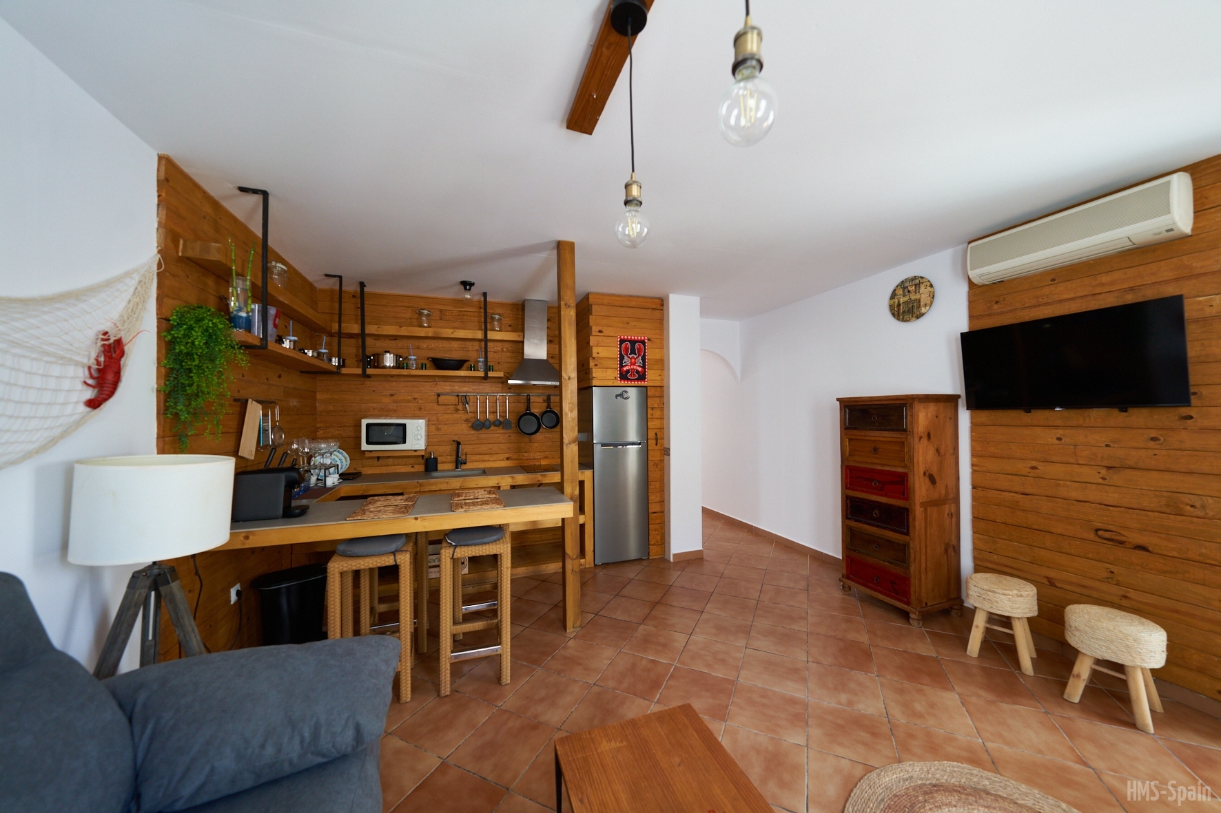 Coqueto apartamento de un dormitorio en La Isleta del Moro. Dispone de cocina totalmente equipada, salón con sofá-cama, un dormitorio, un baño,una terraza y plaza de garaje. Muy cerca de la playa.