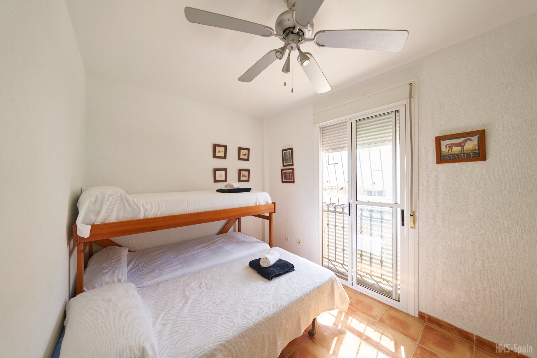 3 dormitorios, 2 baños, 1 aseo y piscina comunitaria. Máximo 6 personas.