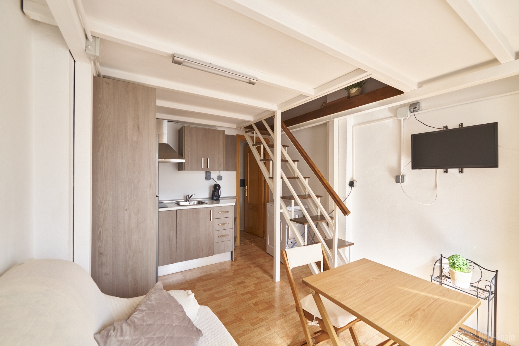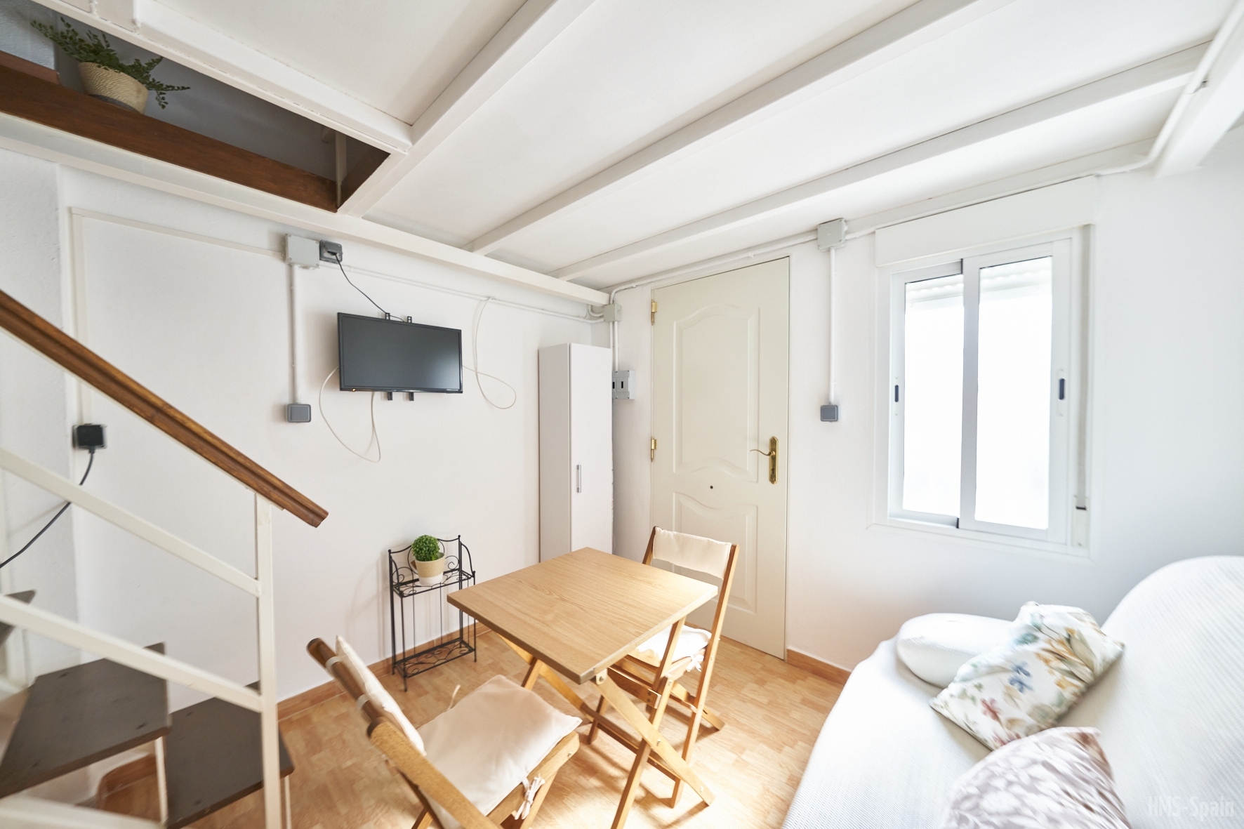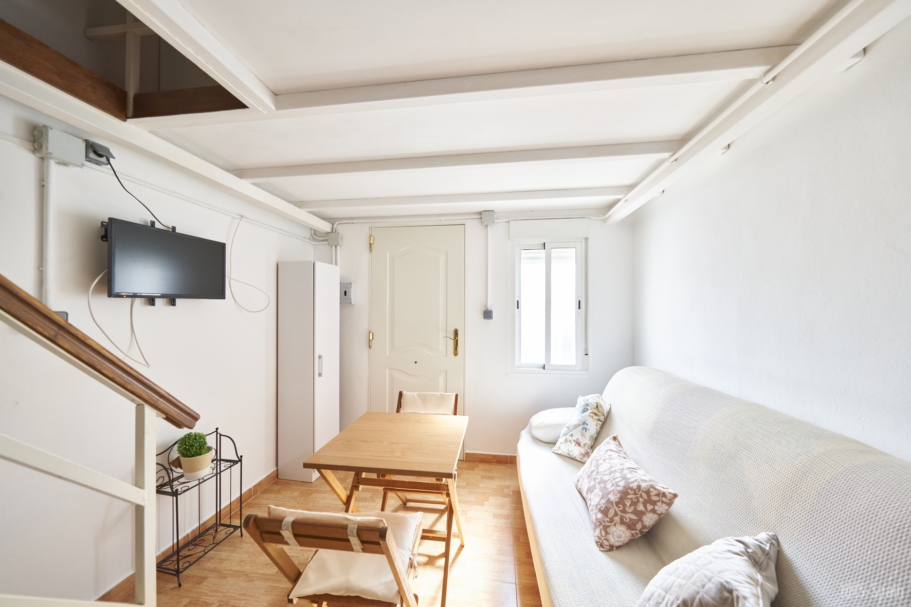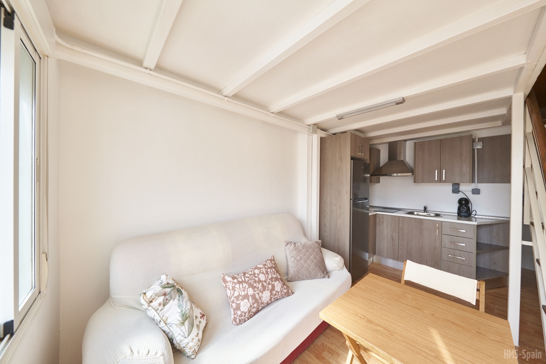 Acogedor estudio abuhardillado muy cerca de la playa en San José. La planta principal dispone de salón-cocina y baño con ducha. Arriba, en la bohardilla, nos encontramos con dos camas. Ideal para pasar unas estupendas vacaciones.