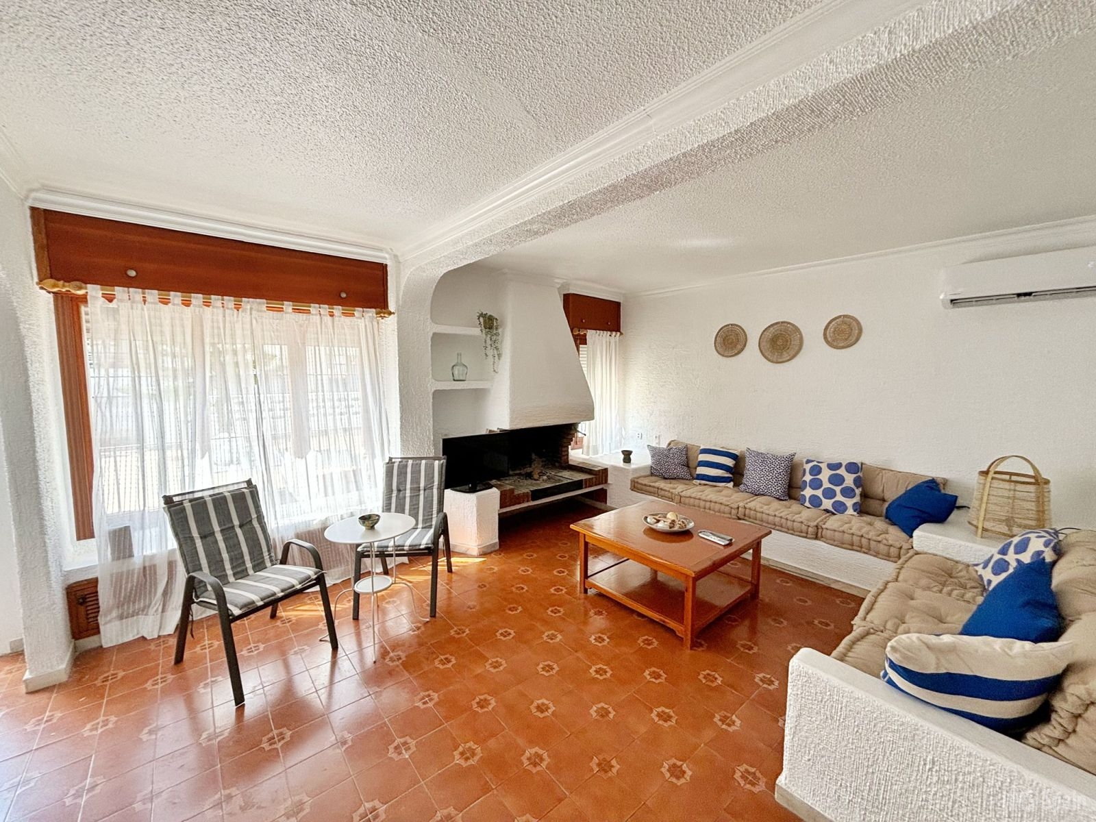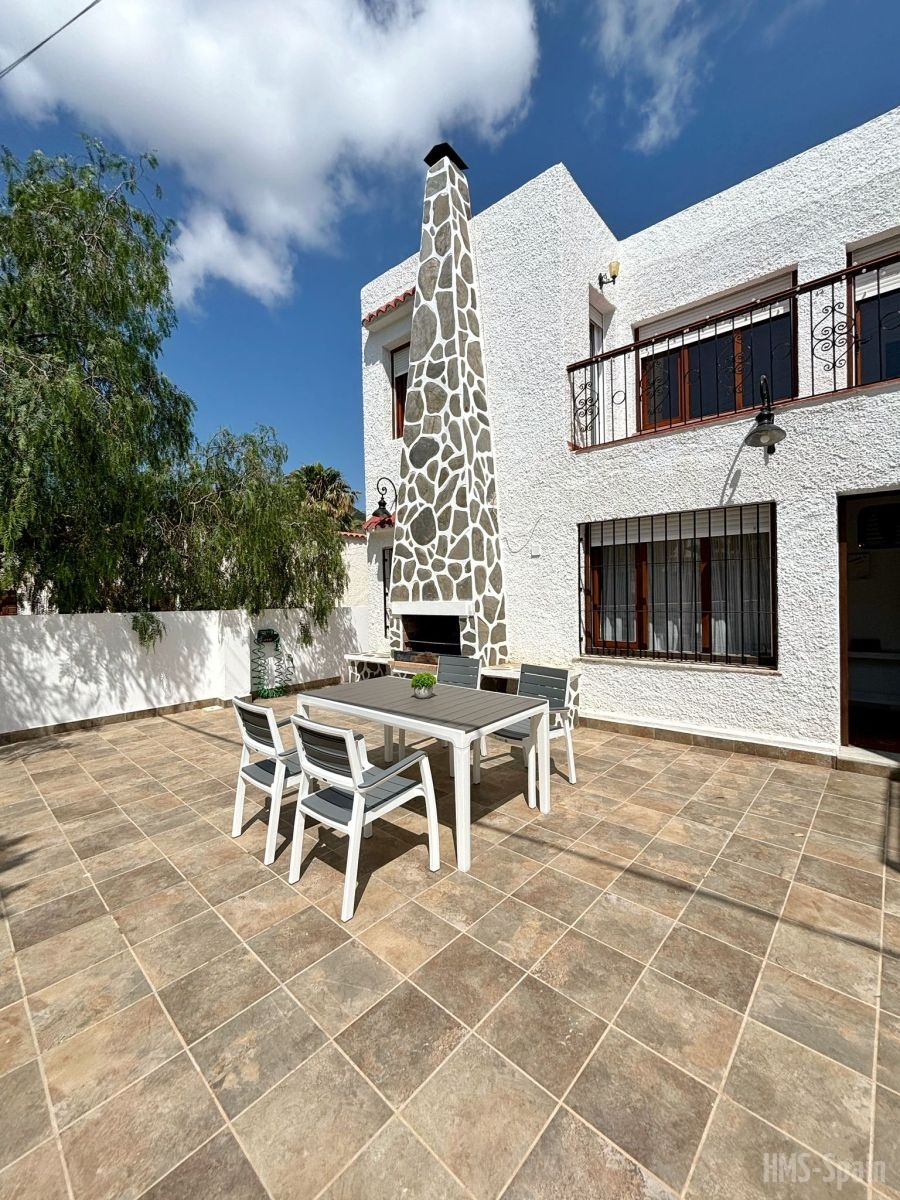 Maravilloso chalet ubicado en una zona tranquila de San José, a 10 minutos de la playa y del centro. Cuenta con tres dormitorios en la planta superior y 3 baños (uno en Suite con bañera). Dispone de cocina totalmente equipada, Aire Acondicionado en todas las estancias y jardÃn con muebles de exterior, tumbonas y hamaca y una piscina desmontable . Ideal para pasar unas estupendas vacaciones en familia.