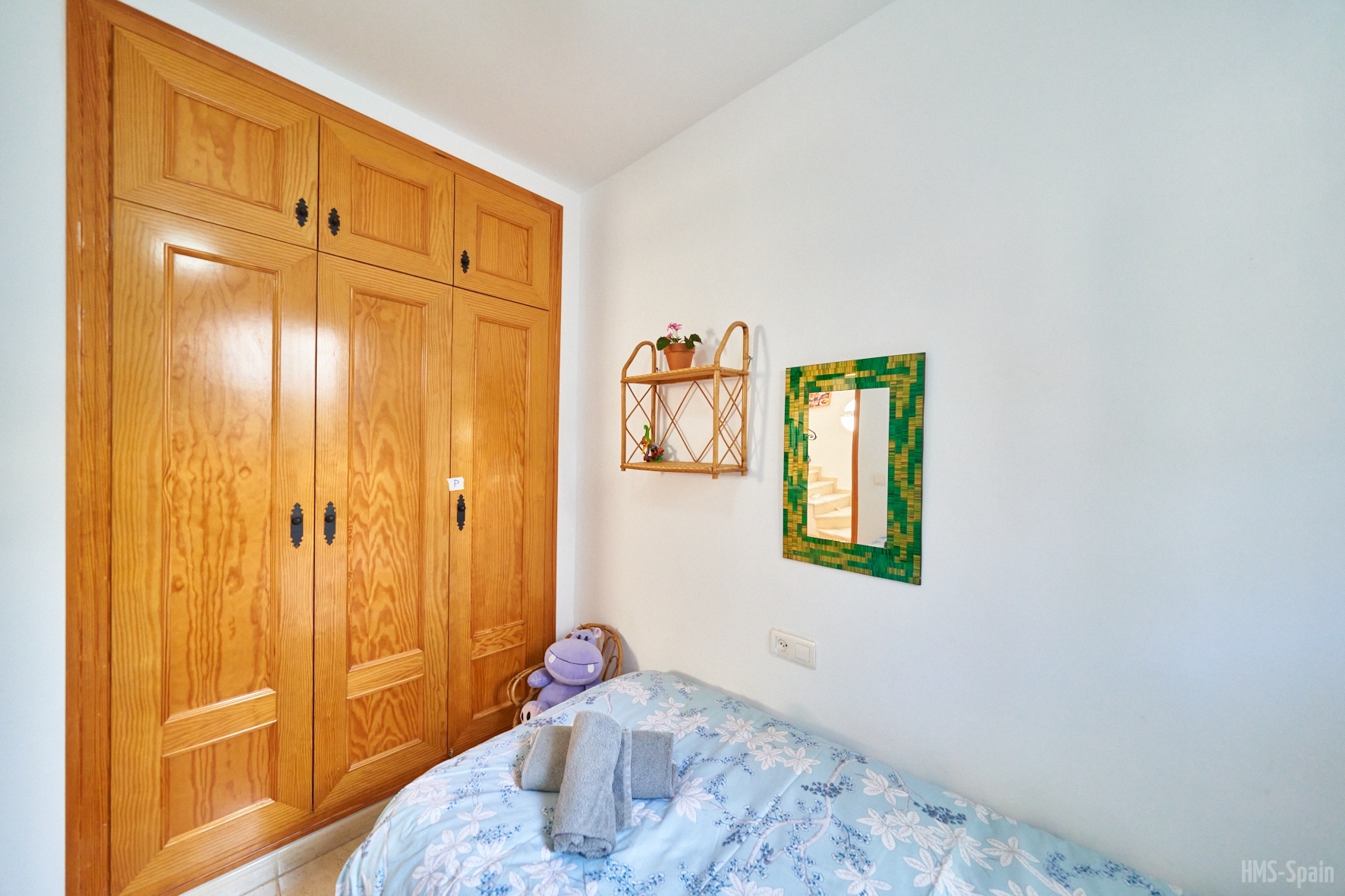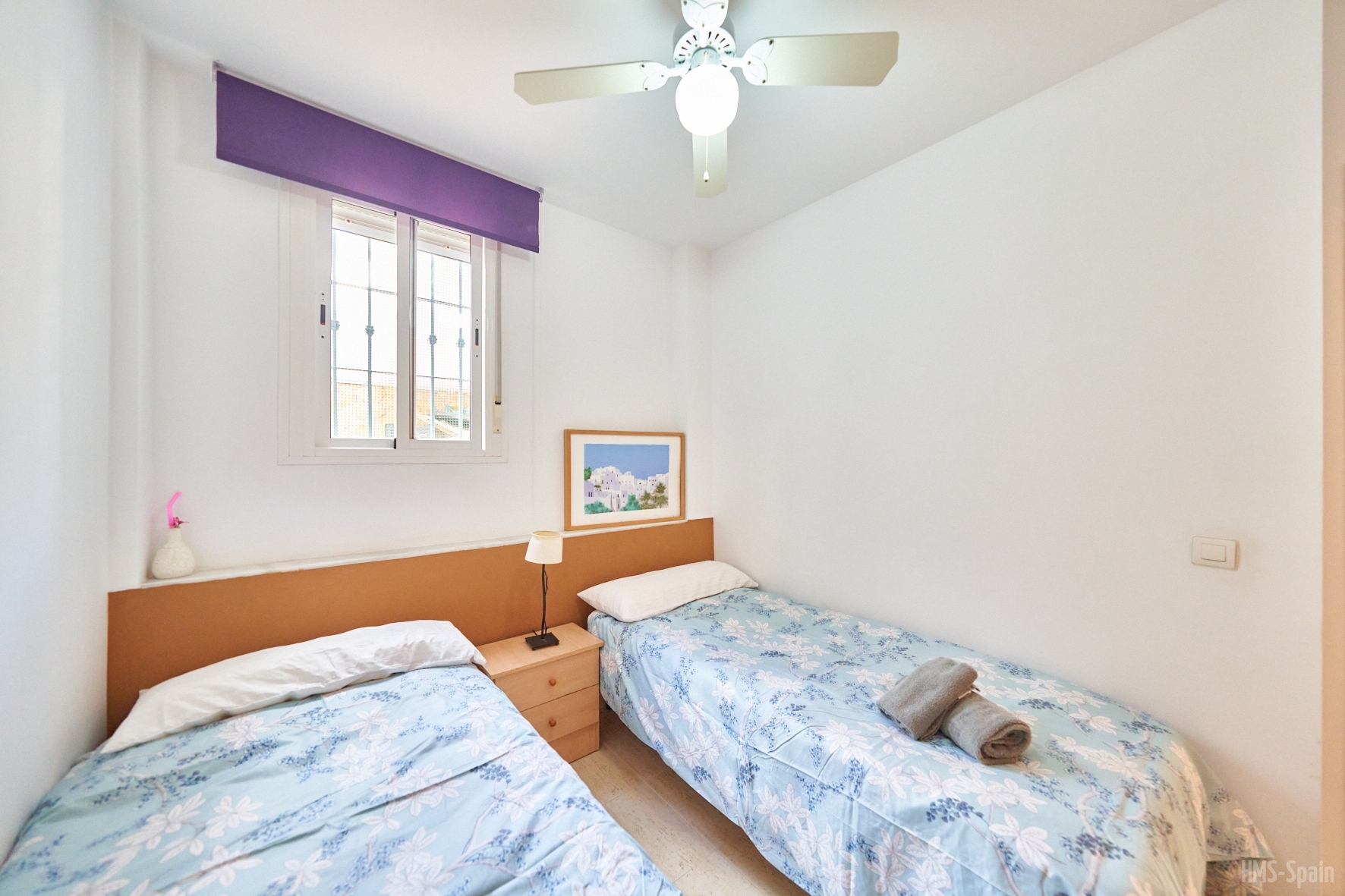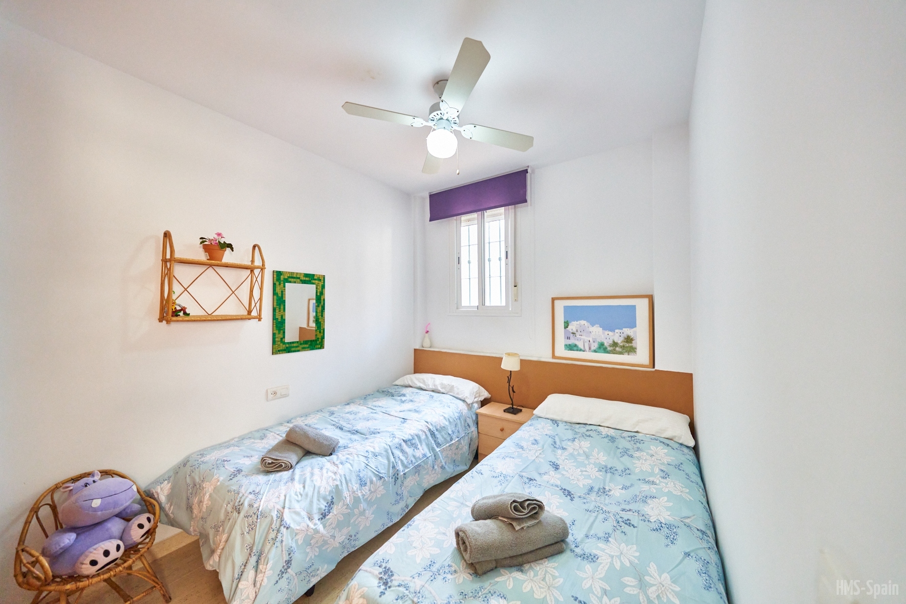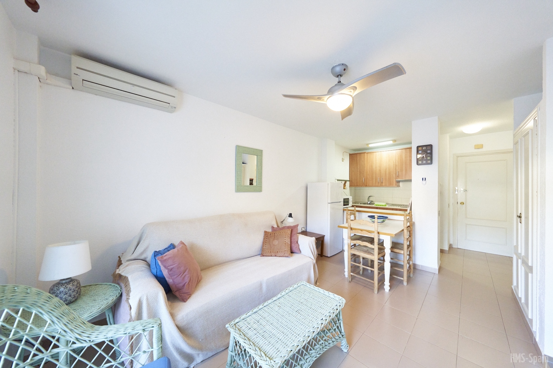 Acogedor apartamento muy cerca del centro y de la playa. Dispone de un dormitorio con dos camas individuales, salón-cocina totalmente equipada, sofá-cama, terraza y piscina comunitaria. Ideal para disfrutar unas estupendas vacaciones.