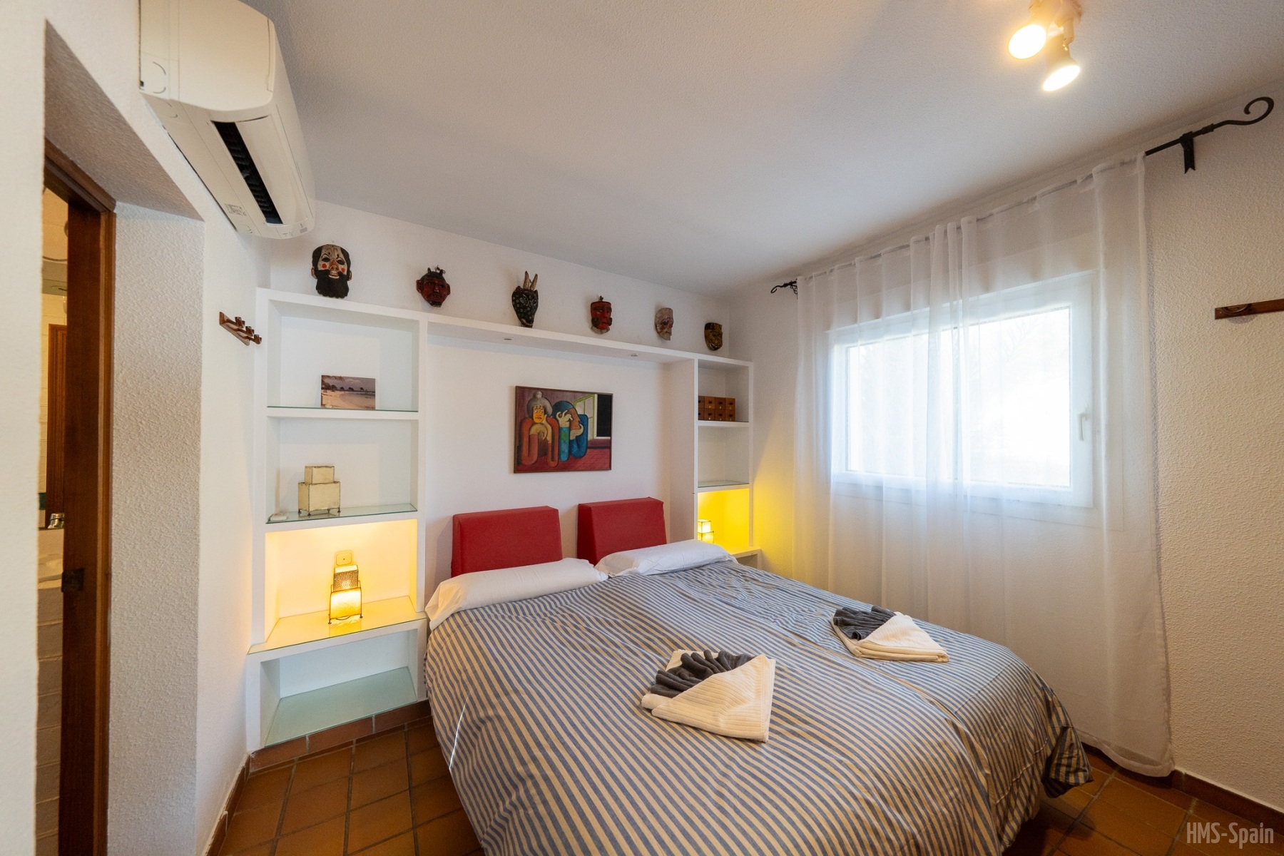 Aire acondicionado, tiene 2 dormitorios, uno de ellos con dos camas individuales y el otro con litera . 1 cuarto de baño completo salón/comedor y cocina abierta estilo americana, Lavadora, frigorÃfico, vitrocerámica, microondas, tostador, cafetera, batidora, ropa de cama y toallas, chimenea. WiFi incluido.