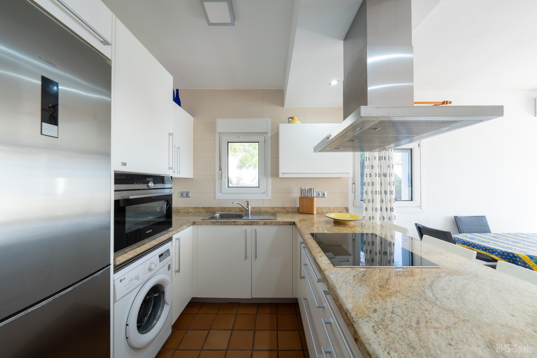 Esta casa de tres dormitorios y tres baños tiene un baño en cada dormitorio ademas de tener aire acondicionado y calefacción. La cocina está completamente equipada con frigorÃfico, horno, microondas, vitrocerámica, lavavajillas, cafetera, lavadora y tostador.Equipada de sábanas y toallas.