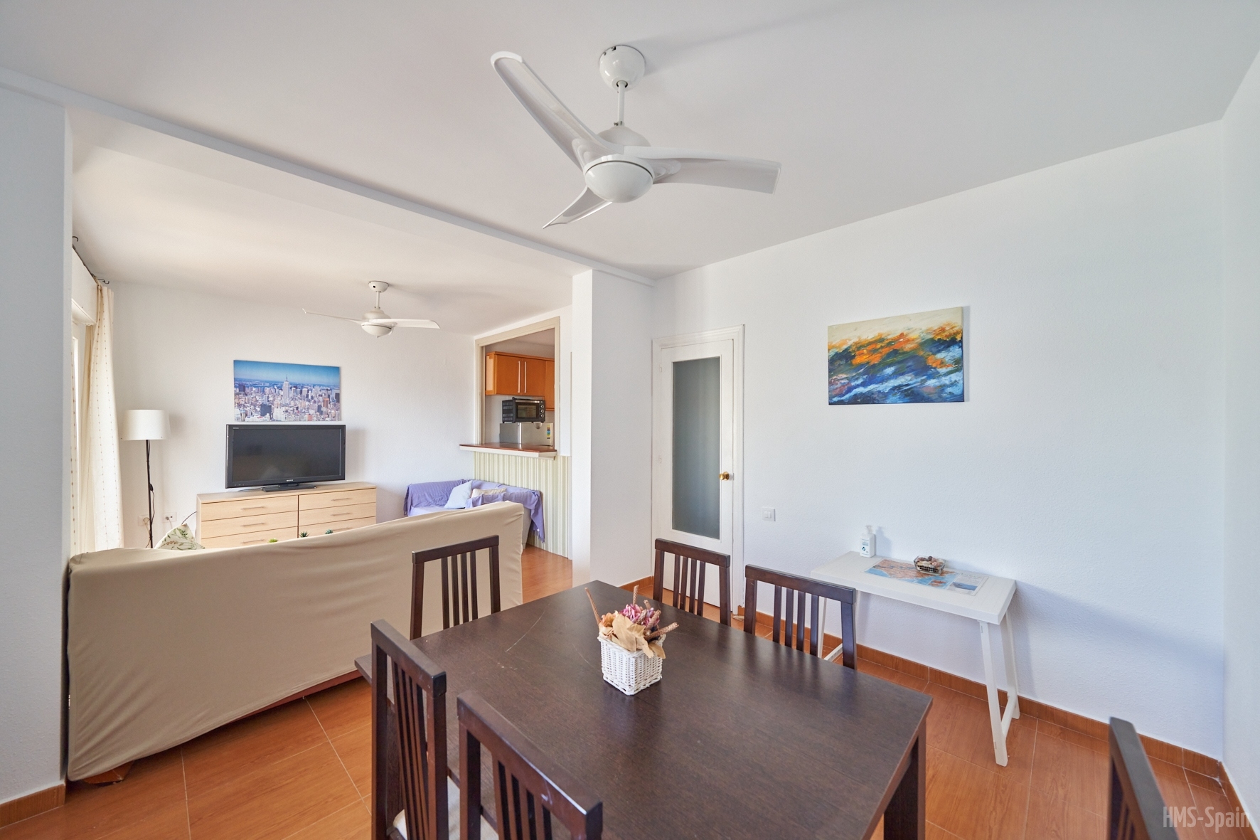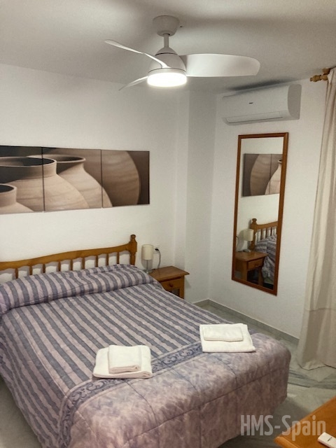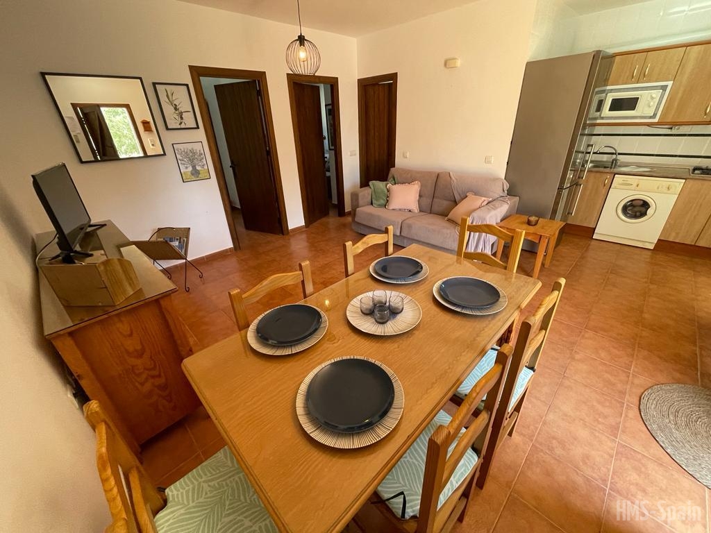 Dispone de dos dormitorios, uno de ellos con cama de matrimonio y un segundo dormitorio con dos camas de 105cm, 1 baño, salón-comedor y cocina. Terraza amueblada para disfrutar de comidas al aire libre. Dispone de piscina comunitaria.