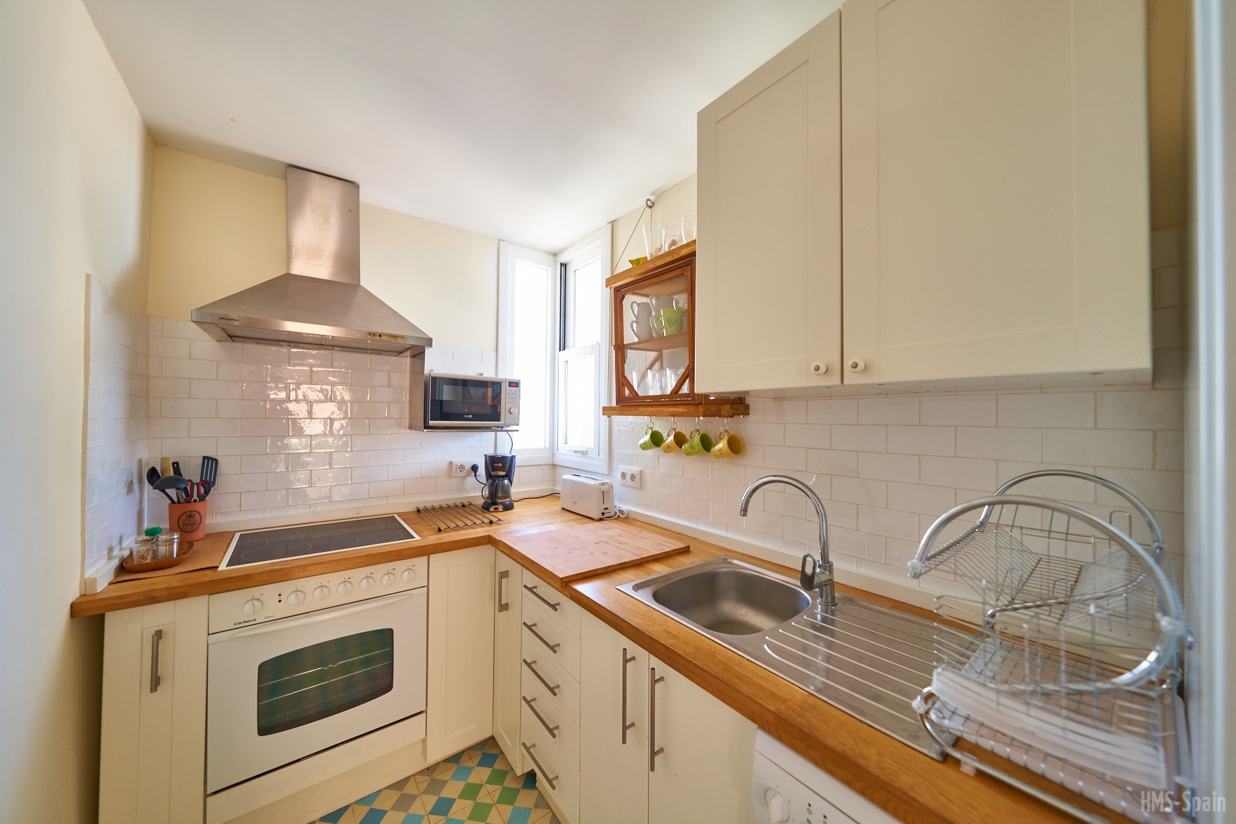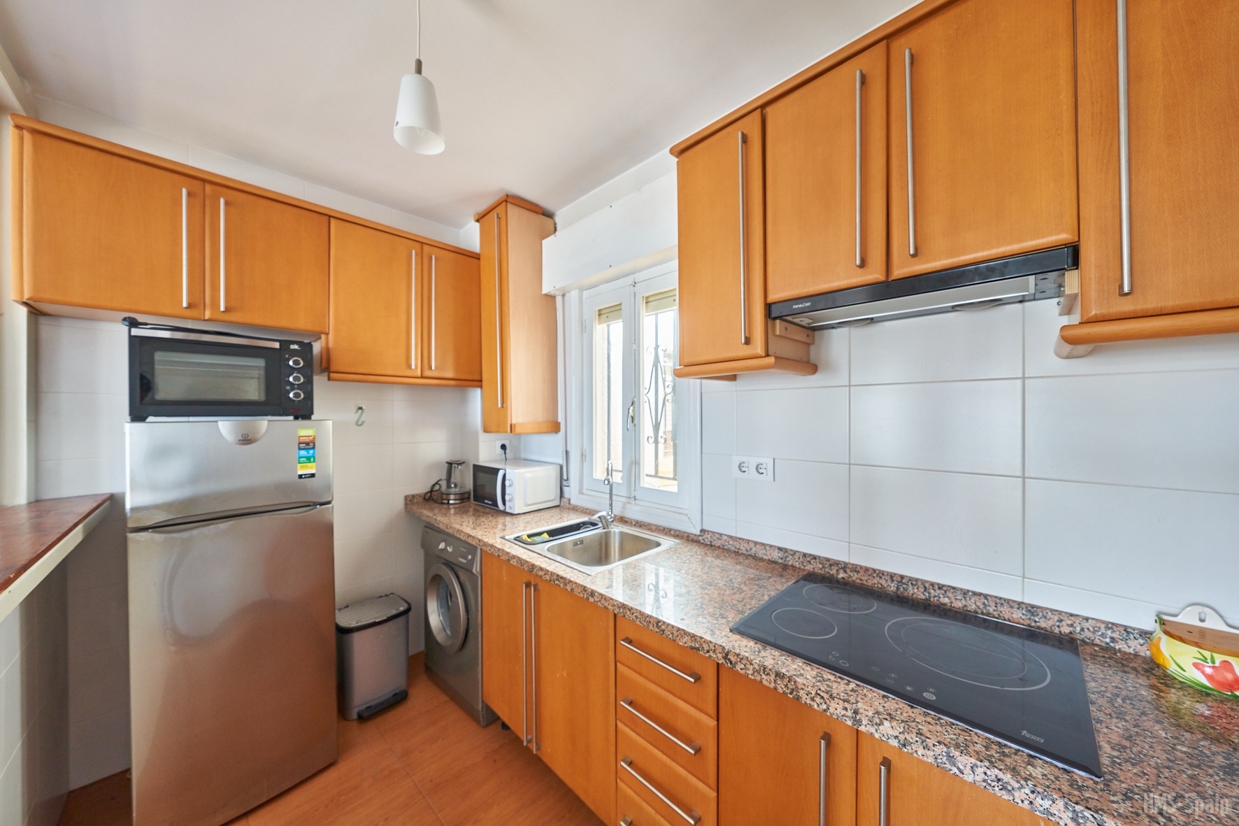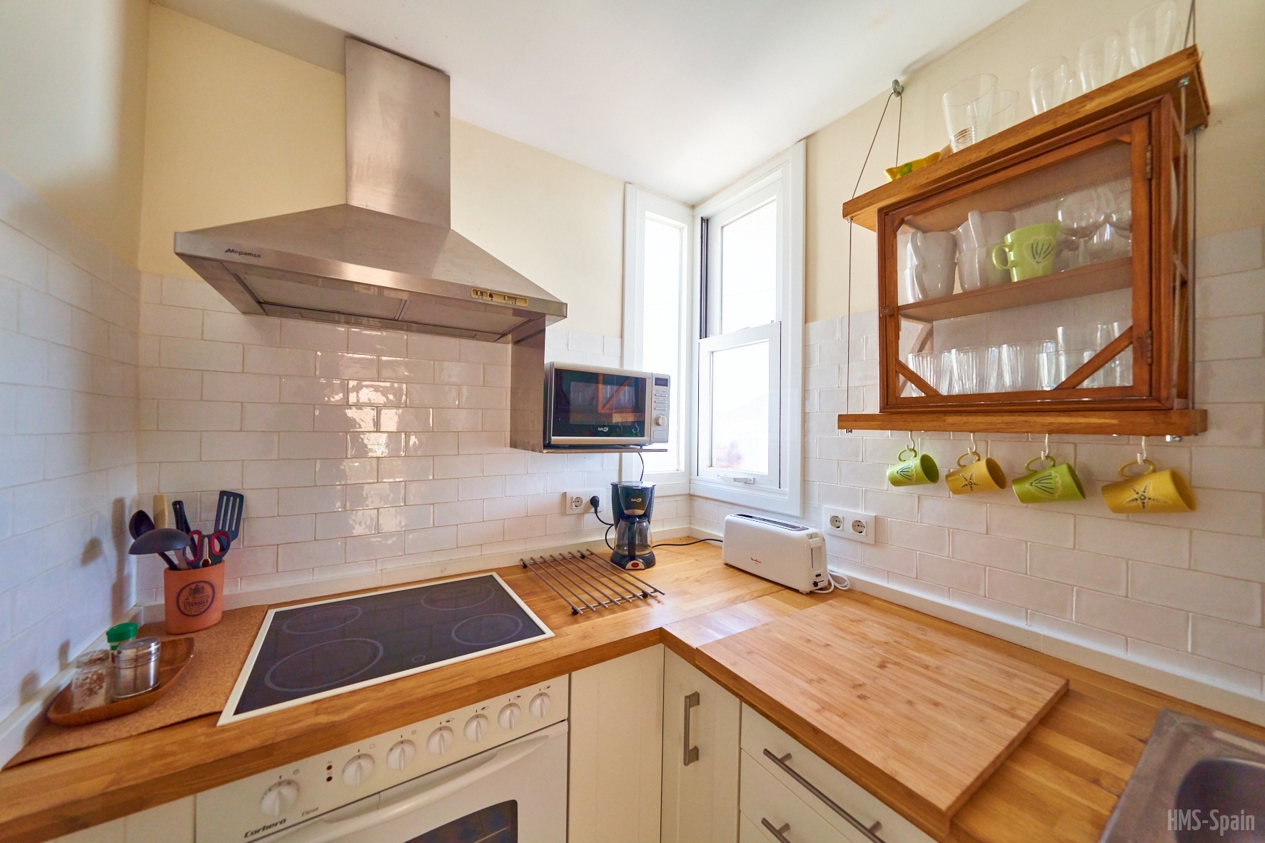 Cuenta con aire acondicionado en el salón y cocina equipada con frigorífico, inducción de 2 fuegos, horno, tostador y microondas.