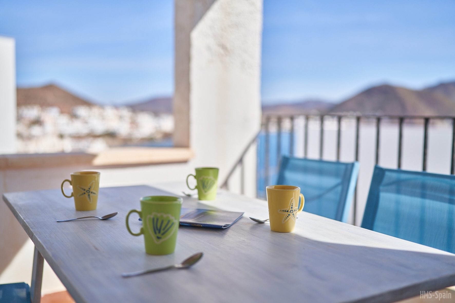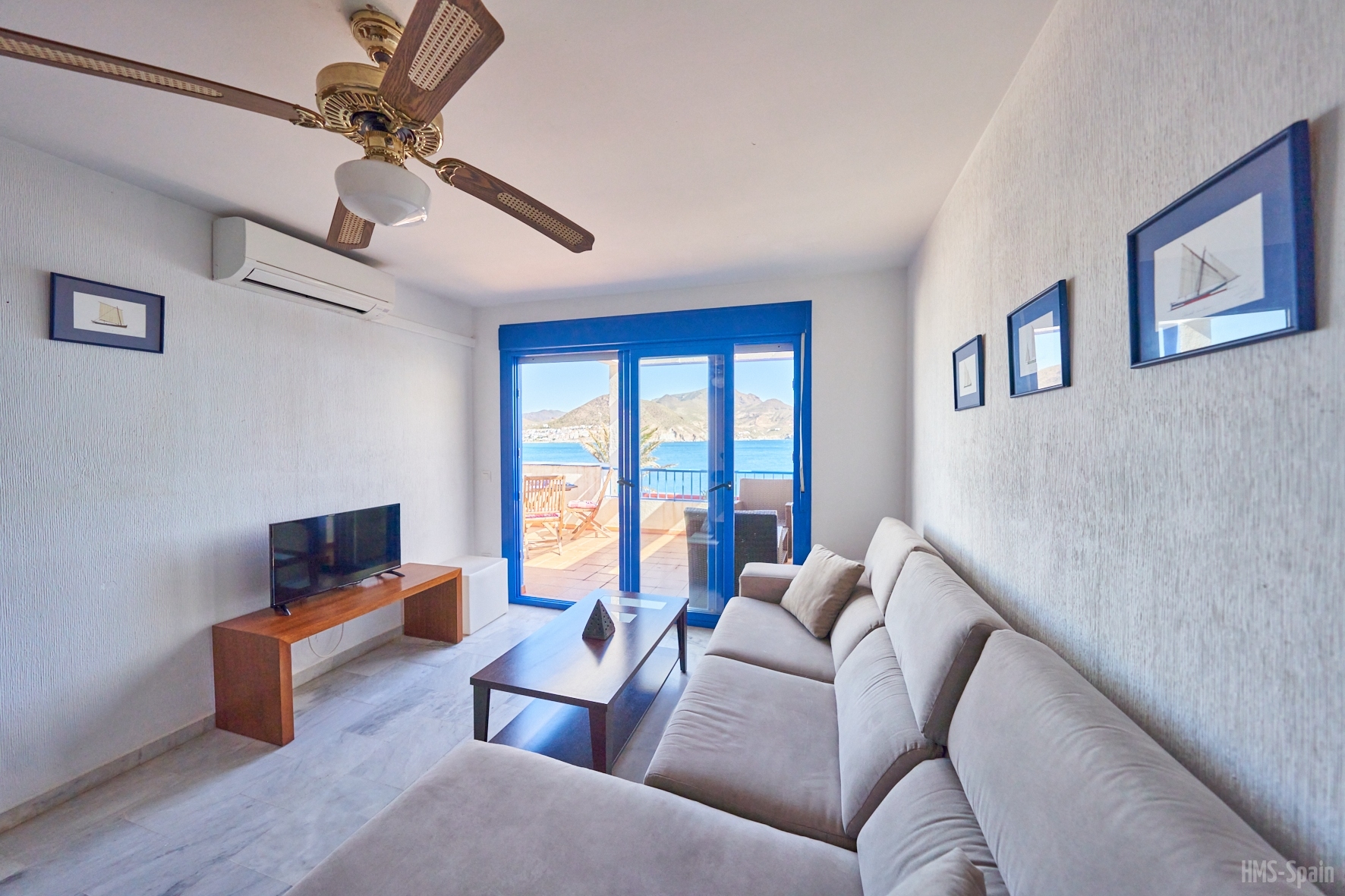 Coqueto apartamento con fabulosas vistas a la bahía de San José. A menos de un minuto del paseo marítimo y el puerto.Ideal para pasar unos días de descanso.