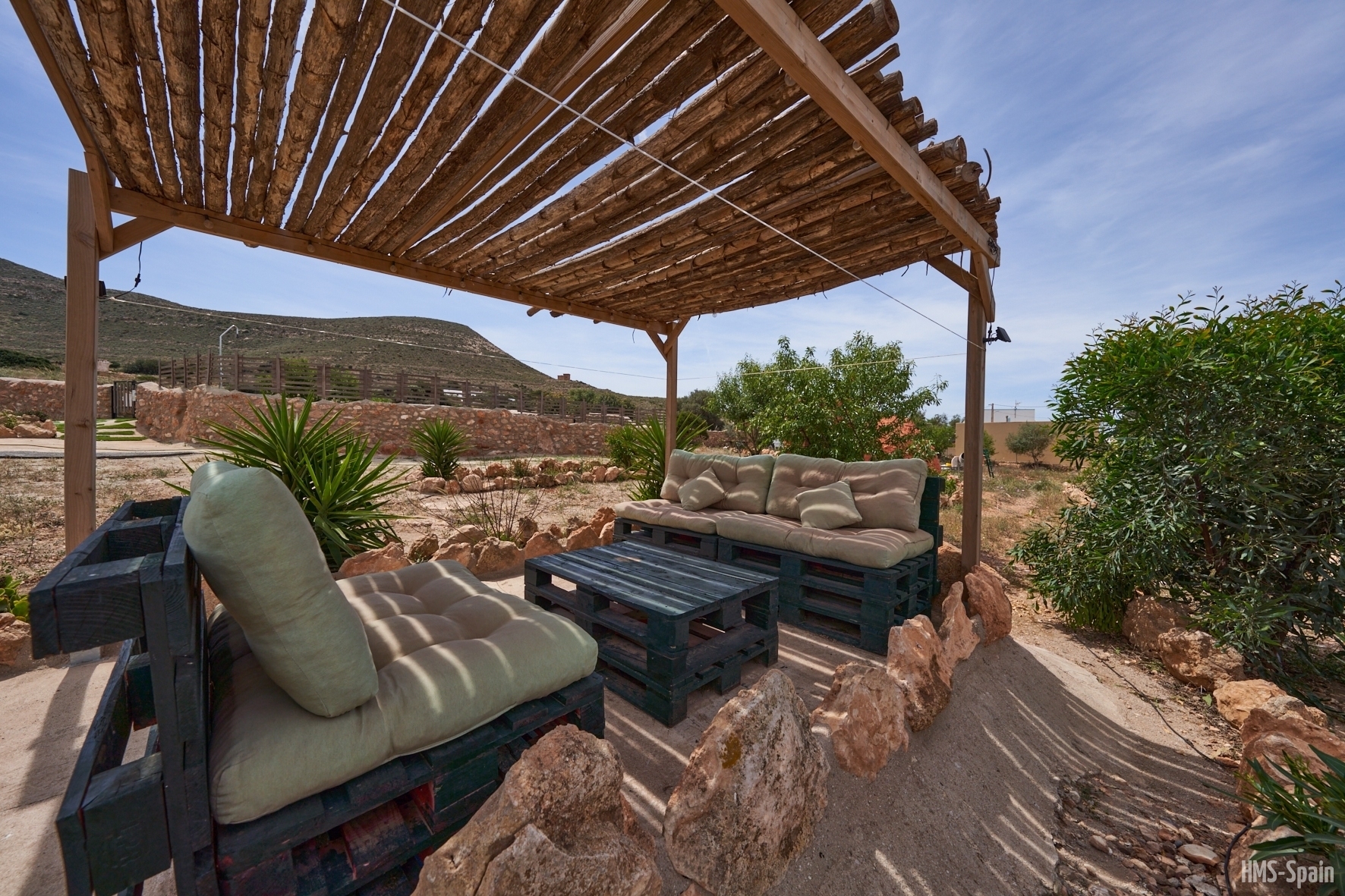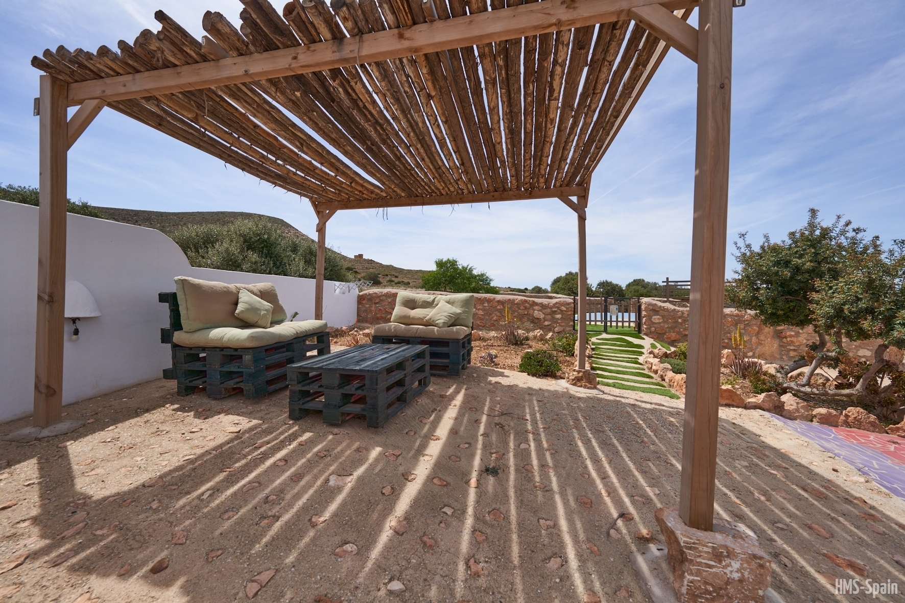 Casita tranquila de un dormitorio y sofá cama en el salón, ideal para una familia con 2 niños o 4 adultos. Ubicada en zona rural, escenario de varios rodajes de spaguetti western, donde pasará unos días de relax en un entorno muy tranquilo. Dispone de Aire Acondicionado en el salón.