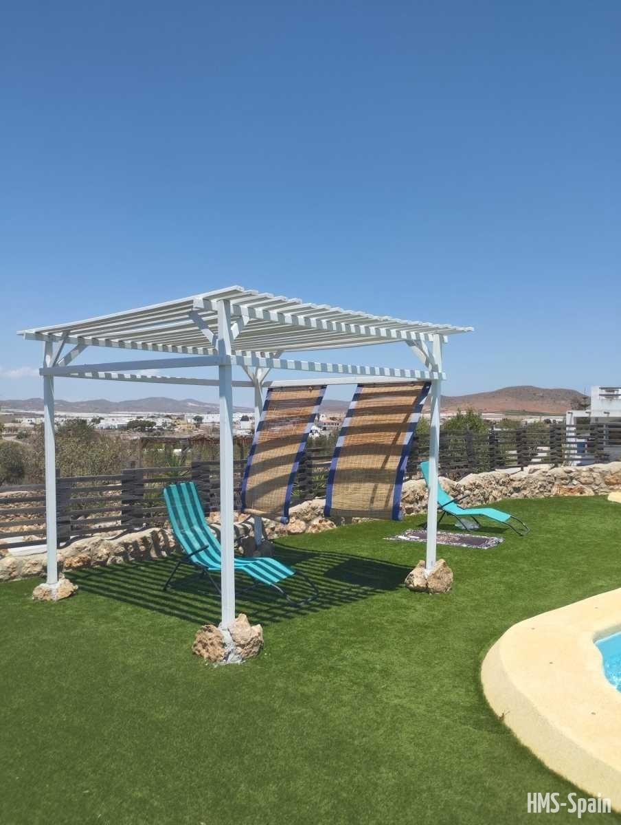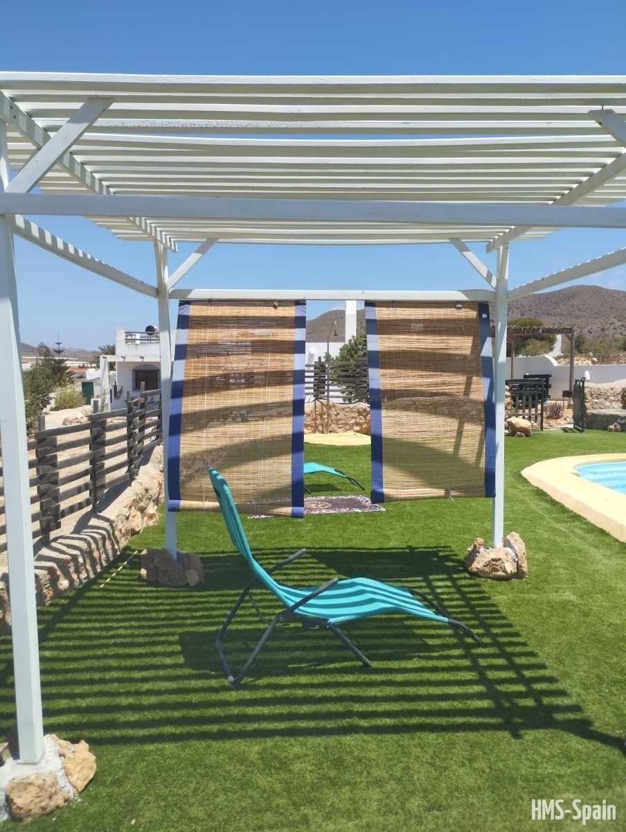 Dispone de 3 dormitorios y 2 baños. Ideal para familias que quieran conocer el Parque Natural Marítimo- Terrestre de Cabo de Gata- Níjar.Dispone de una zona con jardín, todo con sombra, mobiliario, ducha exterior y barbacoa además de una ducha exterior ideal para los días calurosos de verano. Tiene Aire acondicionado