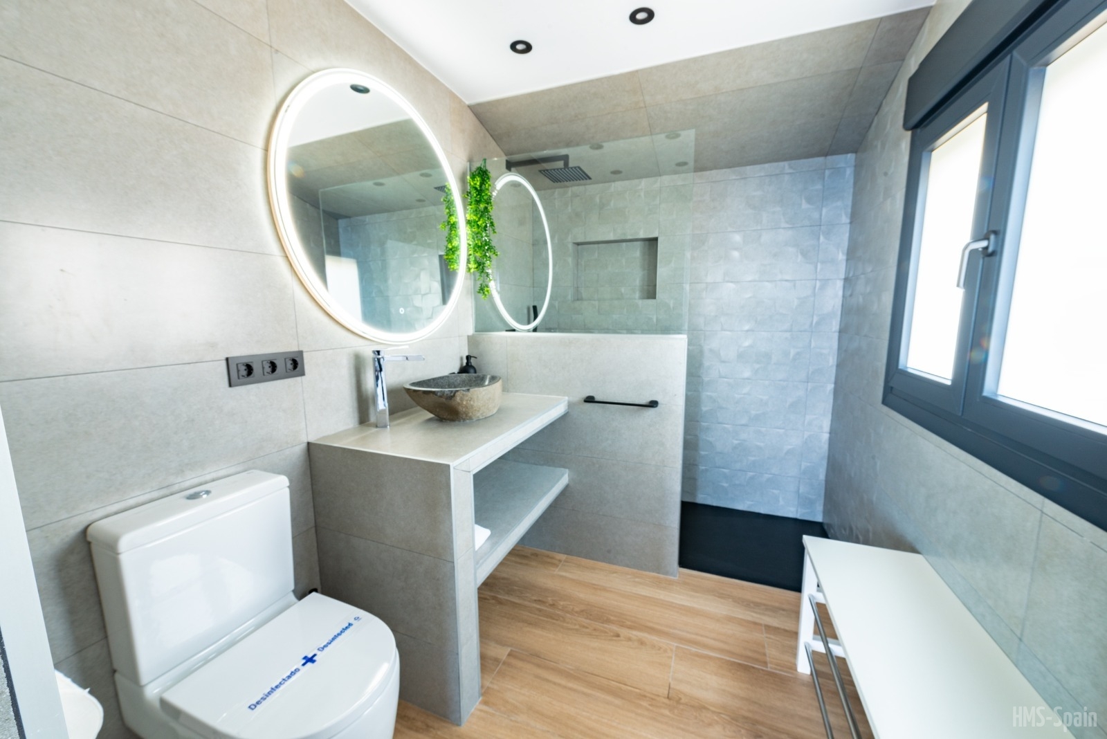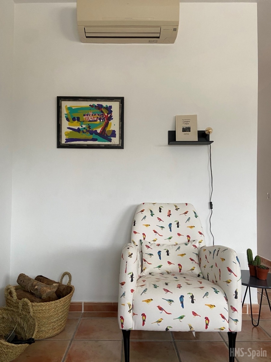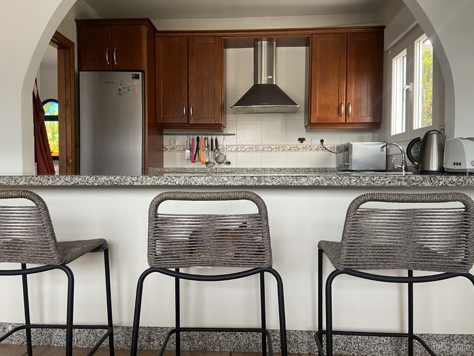 Cuenta con un amplio salón con su Smart TV, ventiladores de techo en todas las habitaciones incluida la cocina y aire acondicionado en las habitaciones. Conexión WiFi, y piscina privada.