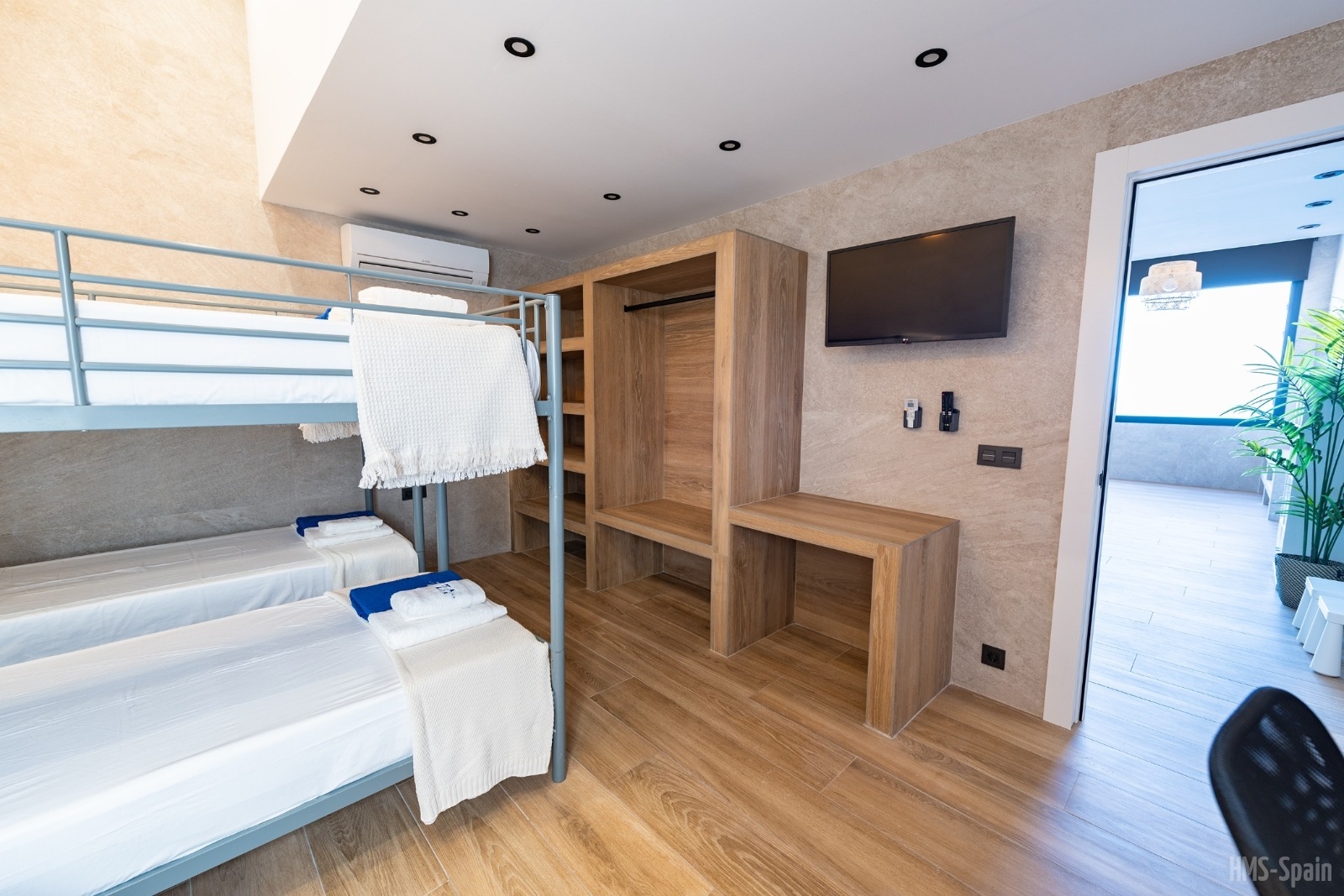 2 dormitorios,con 1 cama de matrimonio en cada uno y 1 sofá cama en cada salón. 2 baños. Máximo 8 personas.